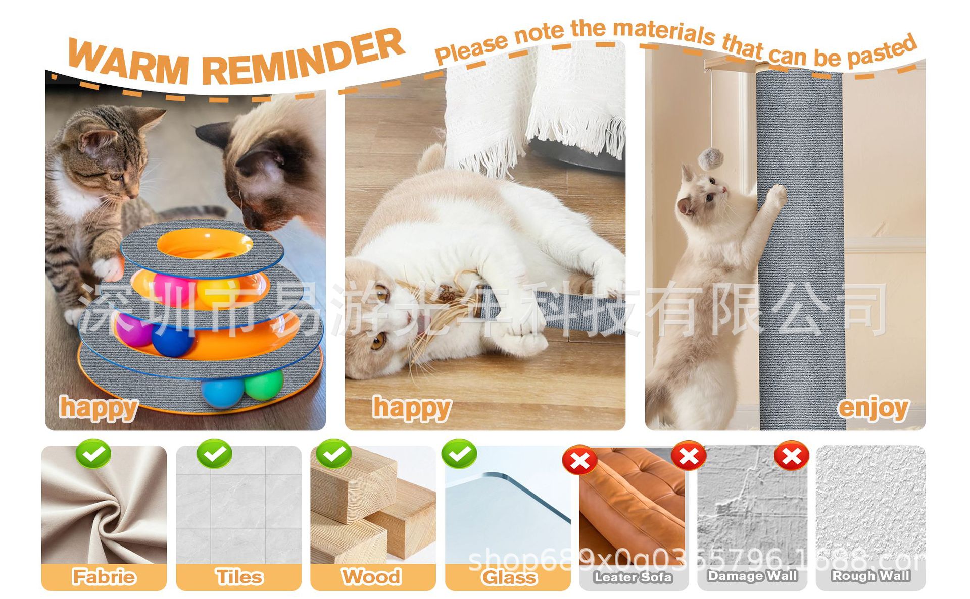 猫咪攀爬墙贴立式自粘猫抓板可裁剪DIY抓垫磨爪猫抓沙发保护跨境