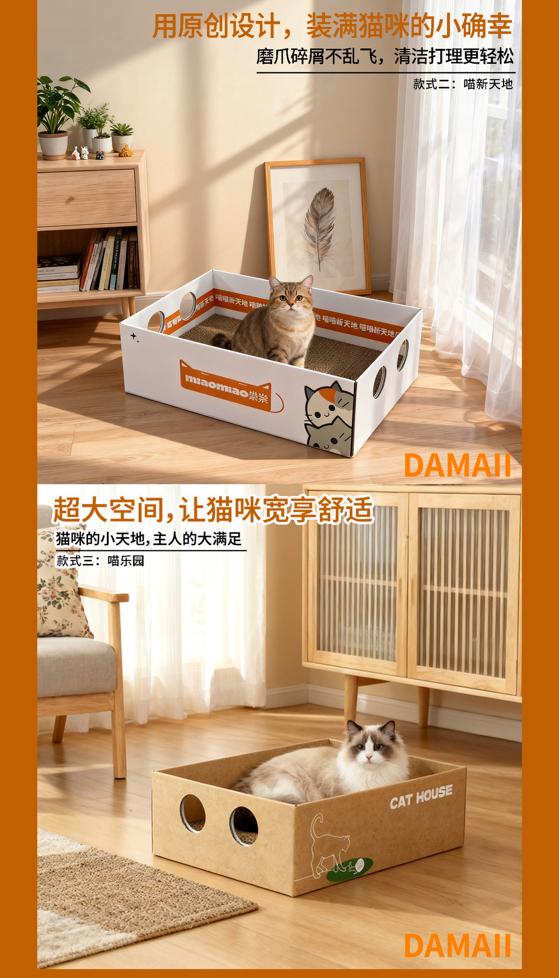 猫抓板猫抓箱可替换芯大号猫窝不易掉屑耐磨瓦楞纸防抓耐磨猫抓板