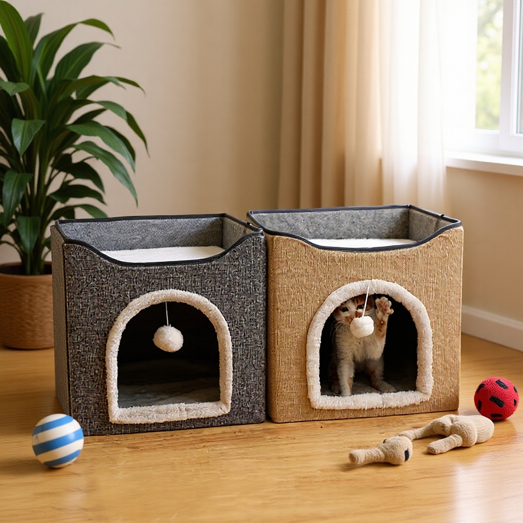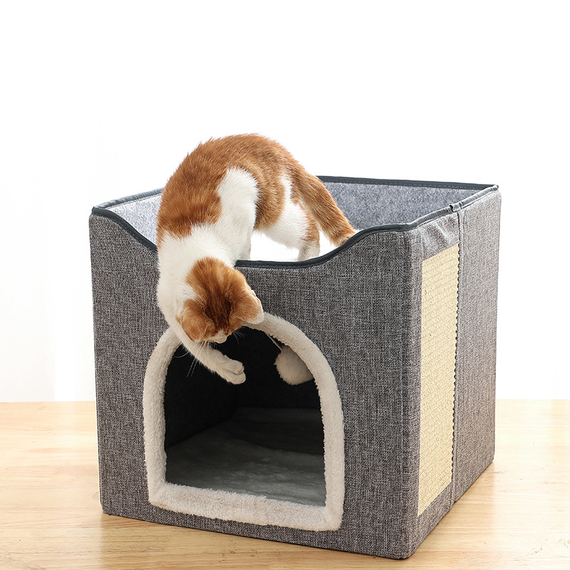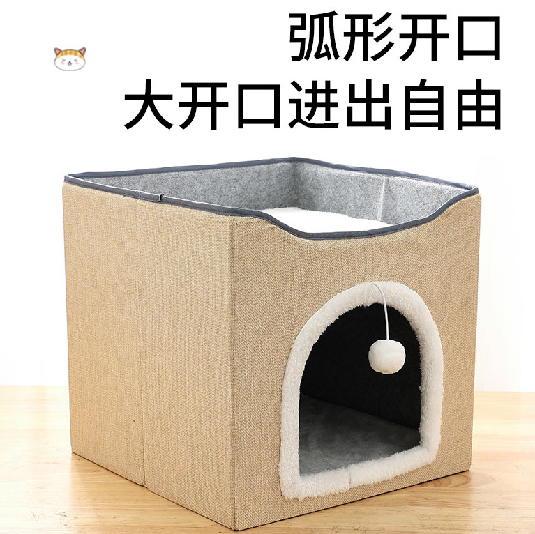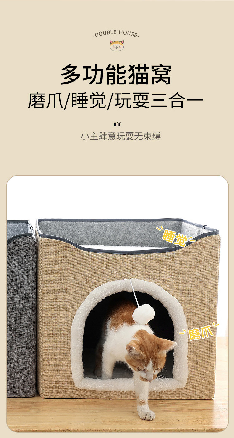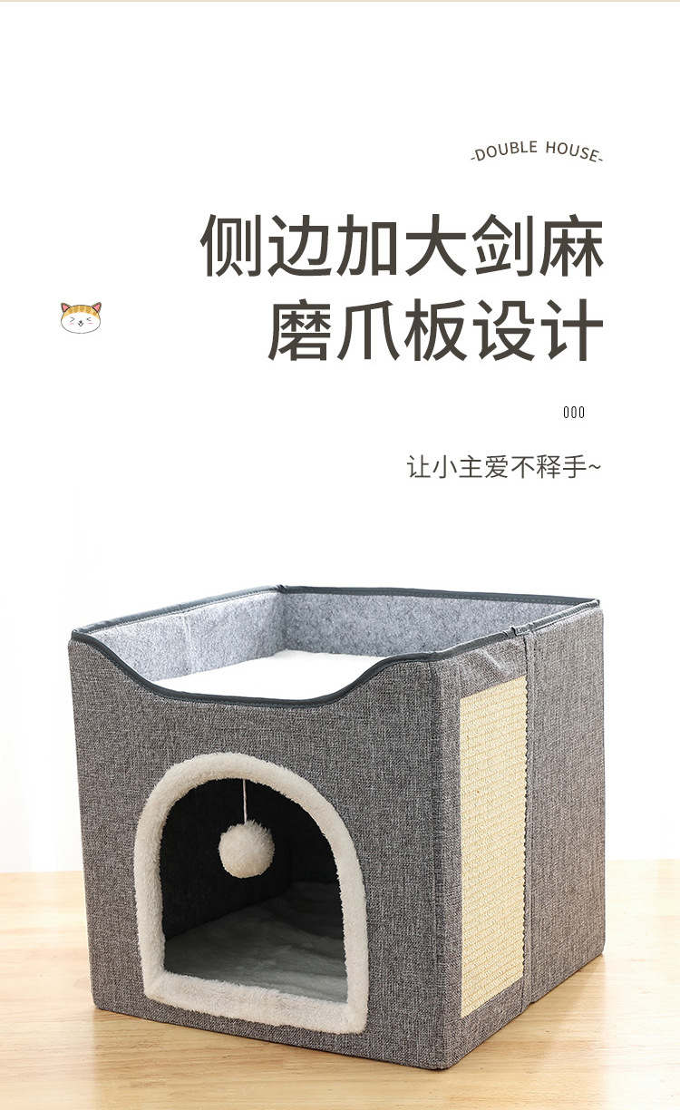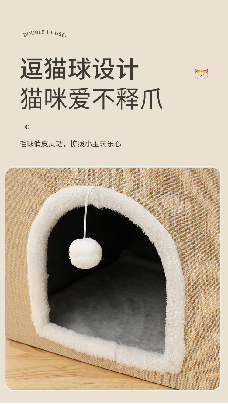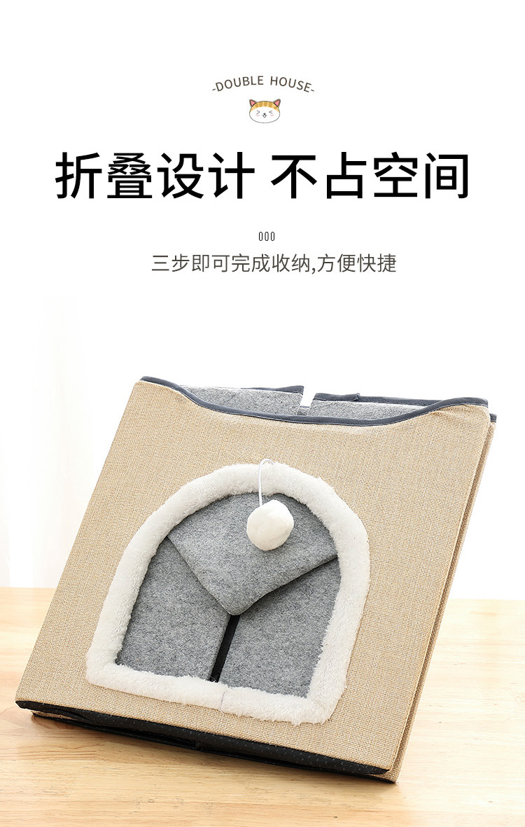 秋冬宠物沙发带猫抓板剑麻封闭式猫窝猫屋毛球双层猫别墅四季通用