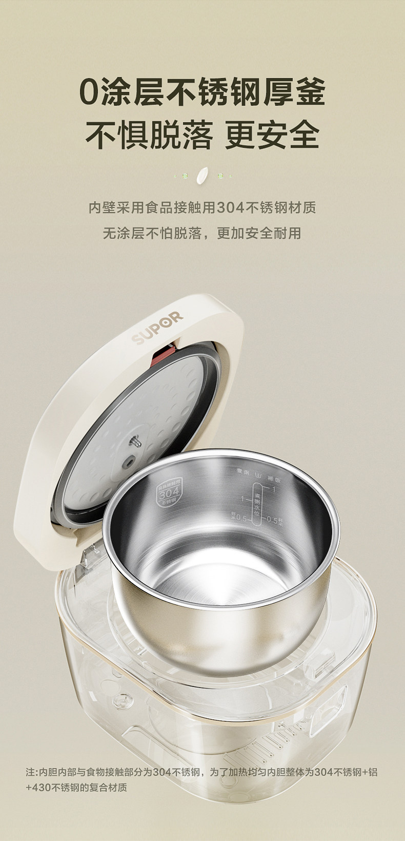 苏泊尔电饭煲0涂层电饭锅实用大容量不锈钢家用智能多功能定时