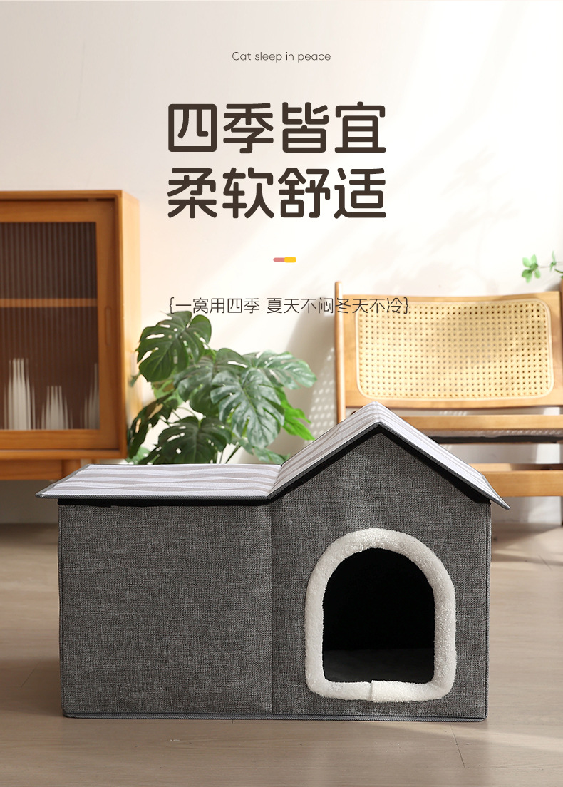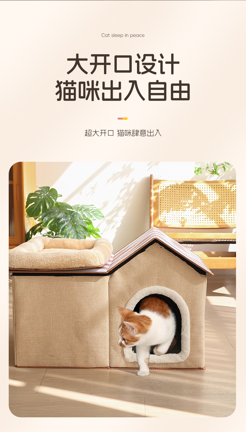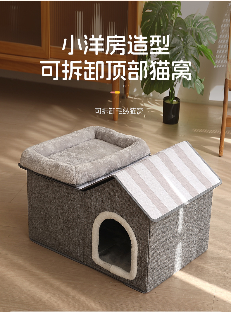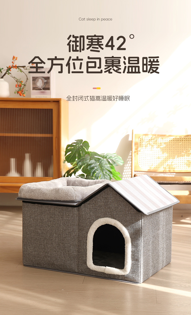 双层猫窝冬季保暖封闭式猫咪屋可折叠宠物窝猫抓板可拆卸猫咪别墅