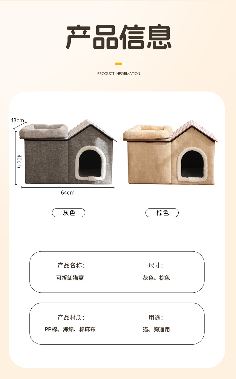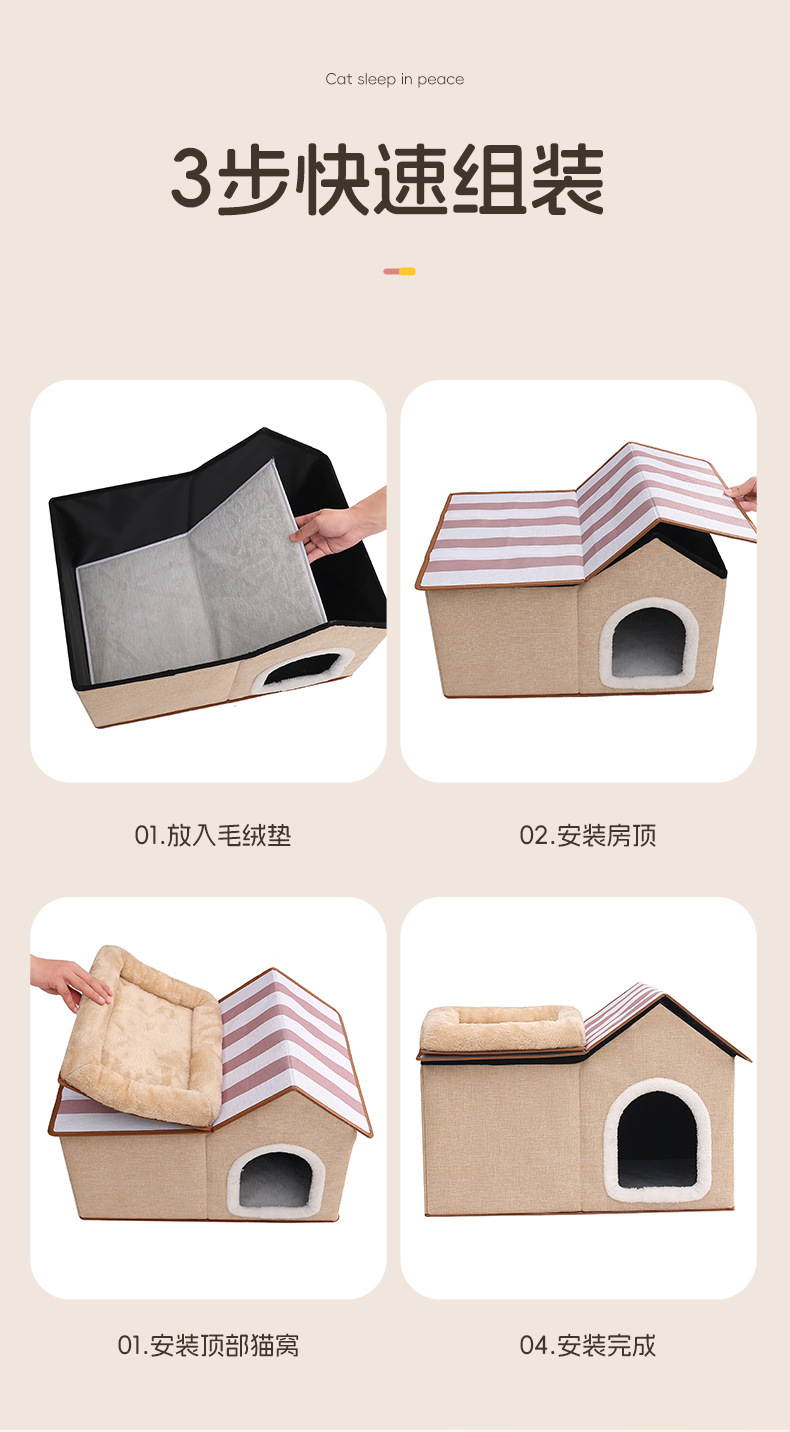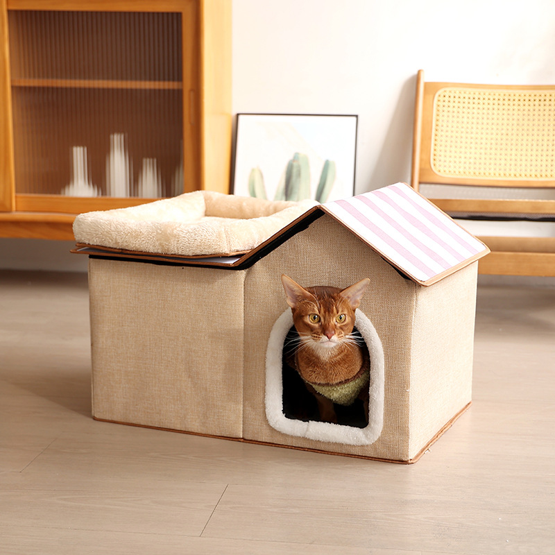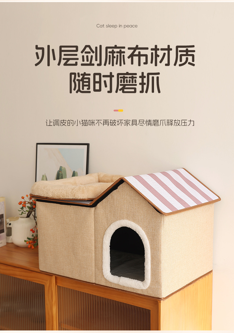 双层猫窝冬季保暖封闭式猫咪屋可折叠宠物窝猫抓板可拆卸猫咪别墅
