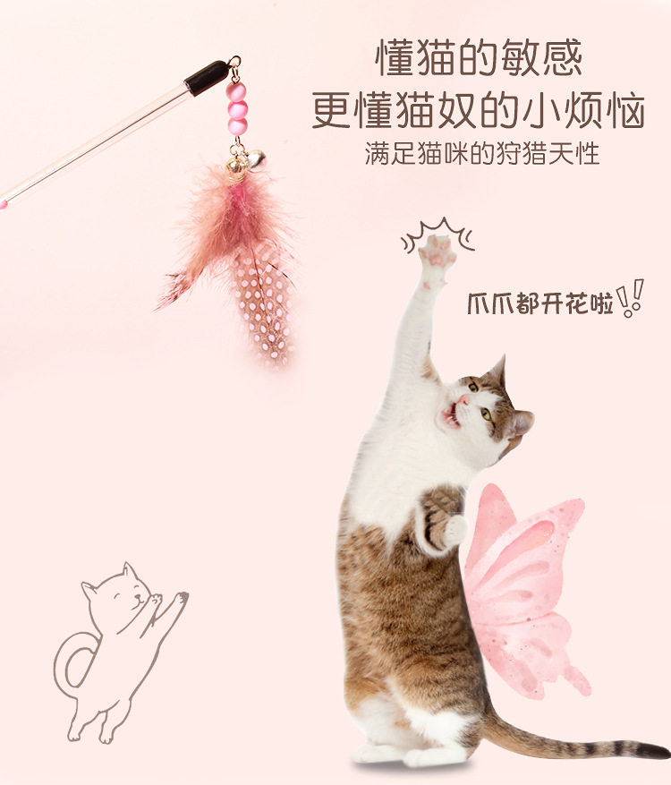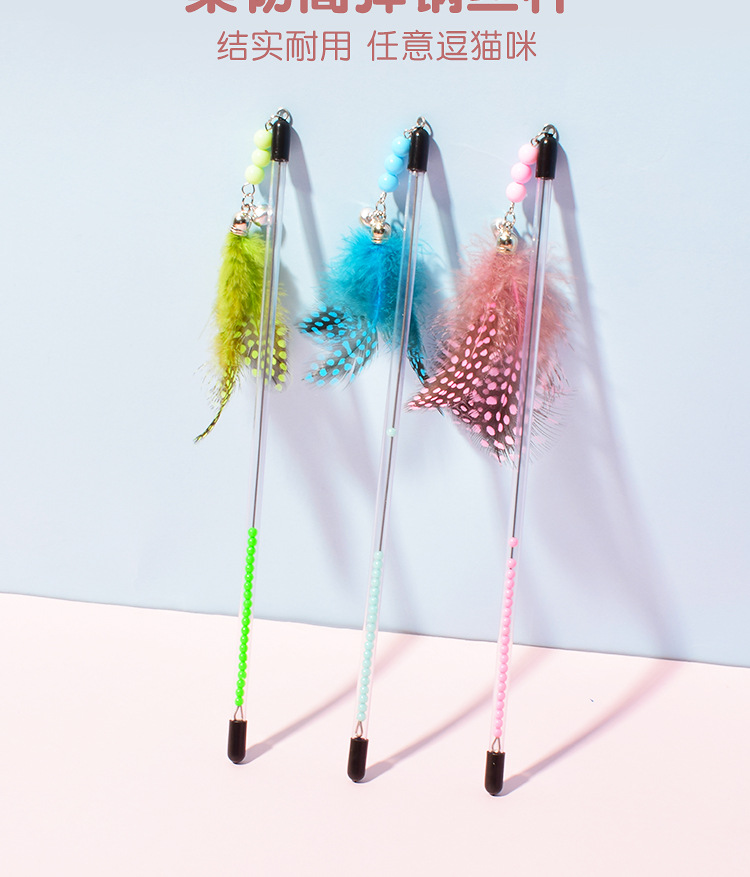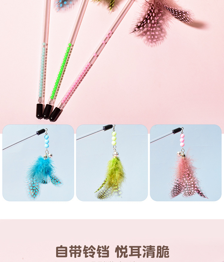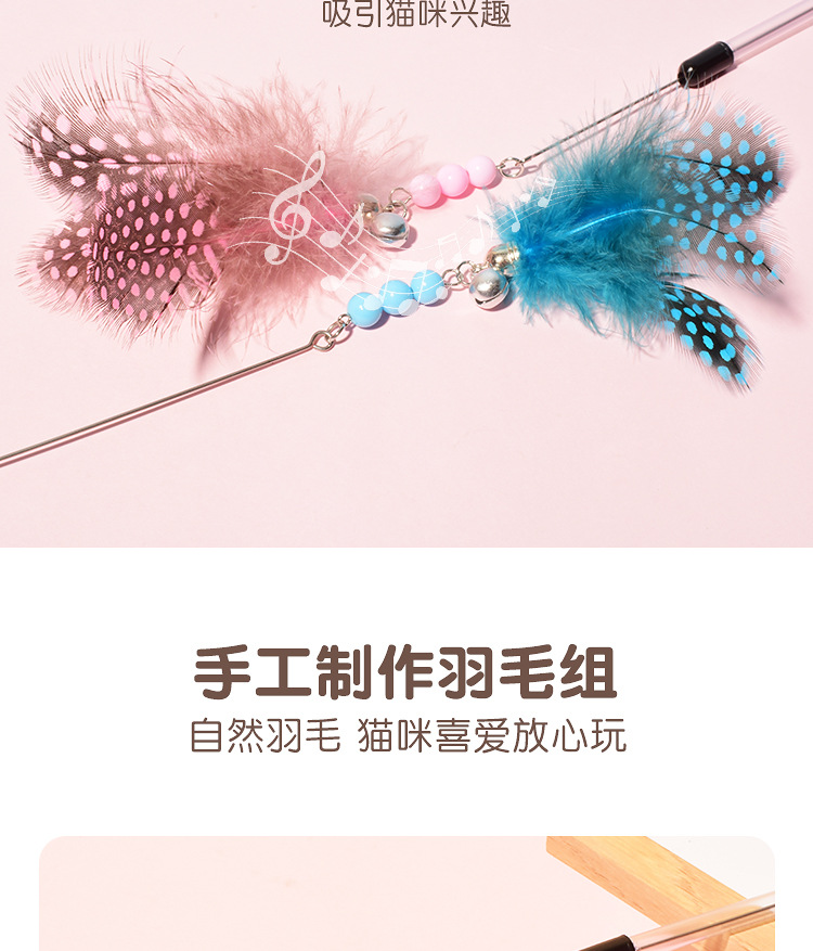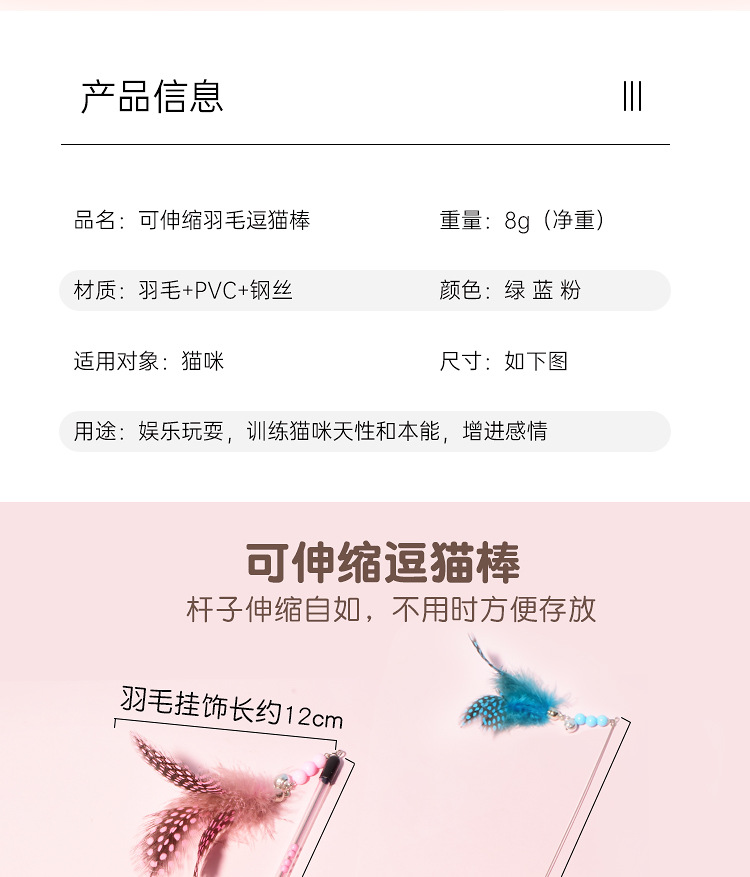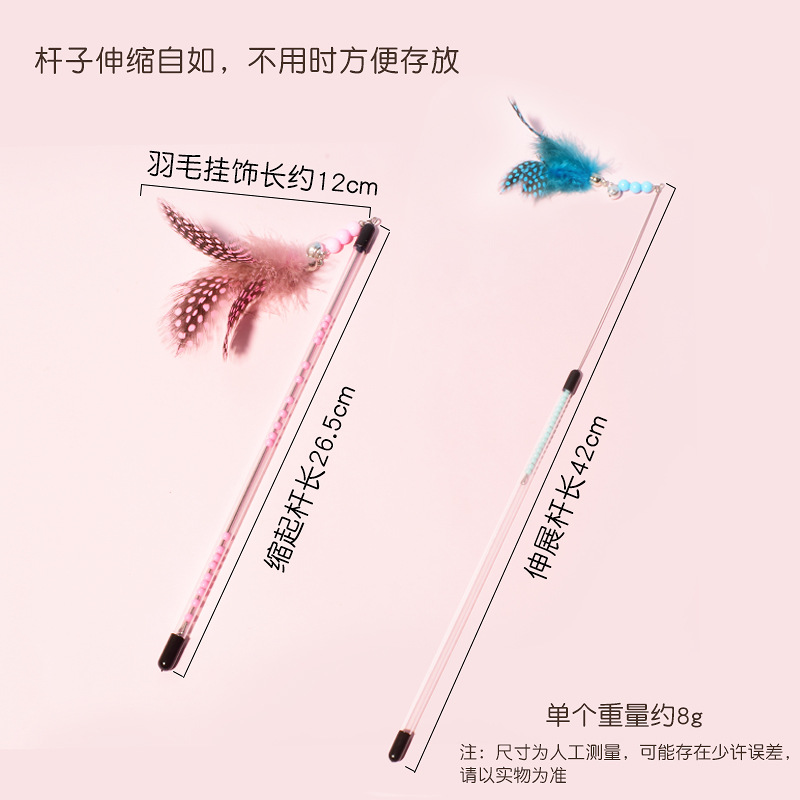 跨境爆款宠物猫玩具斑点羽毛伸缩逗猫棒猫抓解闷伸缩钢丝逗猫玩具