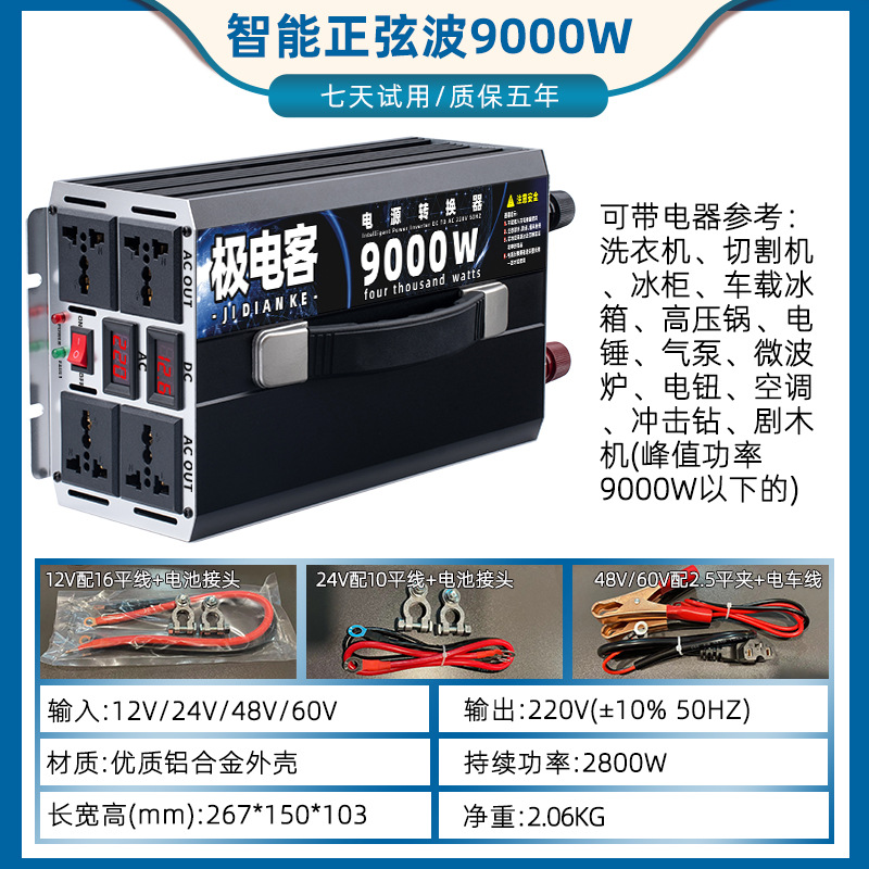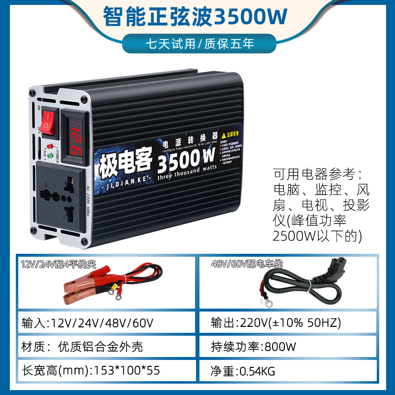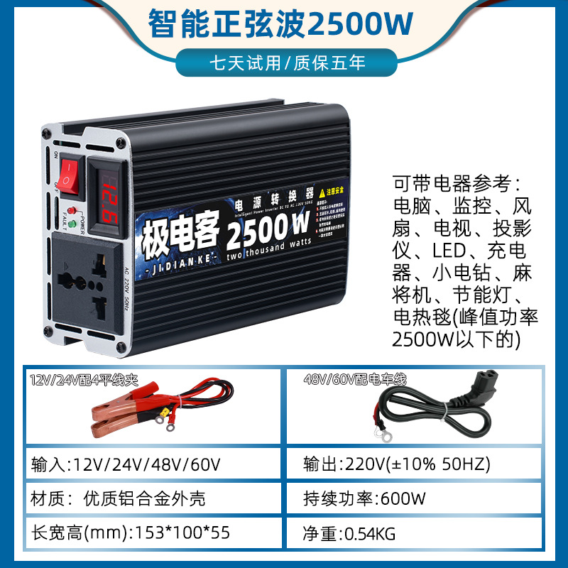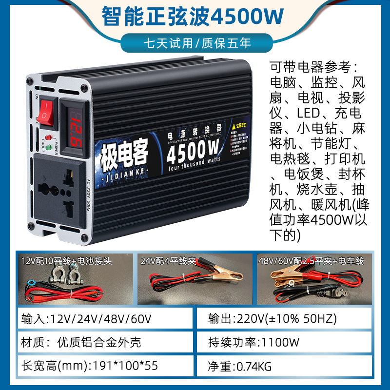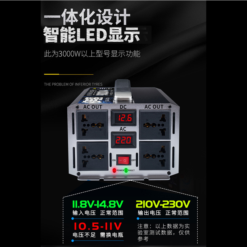 大功率转换器汽车货车电动车12V24V48V60V转220V修正波车载逆变器