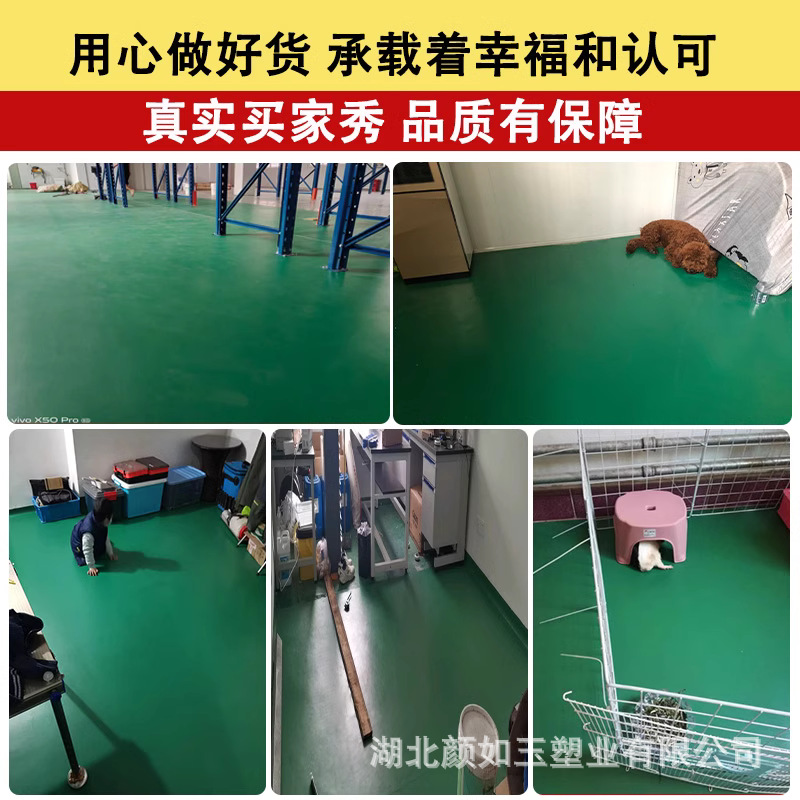 纯绿色PVC塑胶地板革商用水泥地垫防水防滑工厂车间加厚耐磨地胶