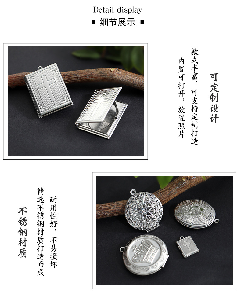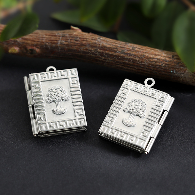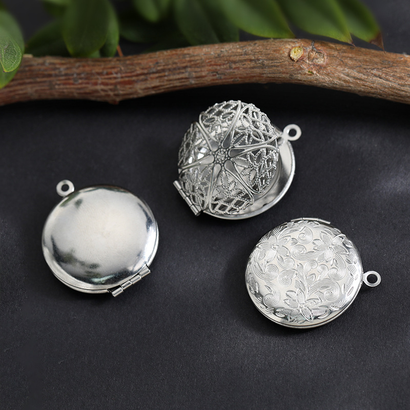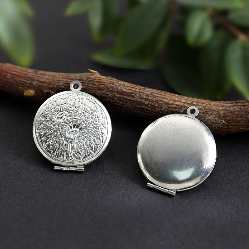 年代复古梅花吊坠纪念品菊花相盒可打开放照片相盒吊坠锁骨链情侣