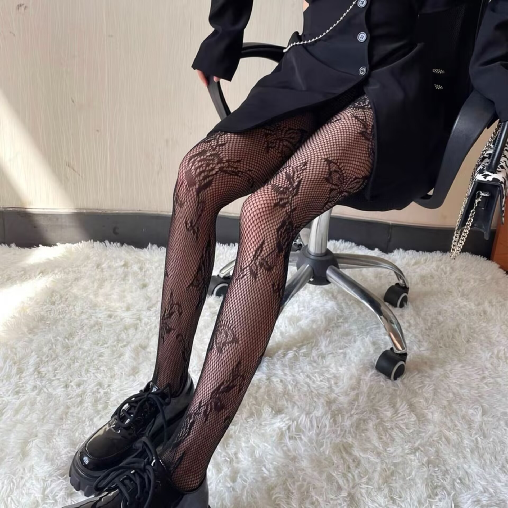 新款法式浪漫纯欲情趣渔网袜提花镂空蝴蝶花朵透视打底连裤袜