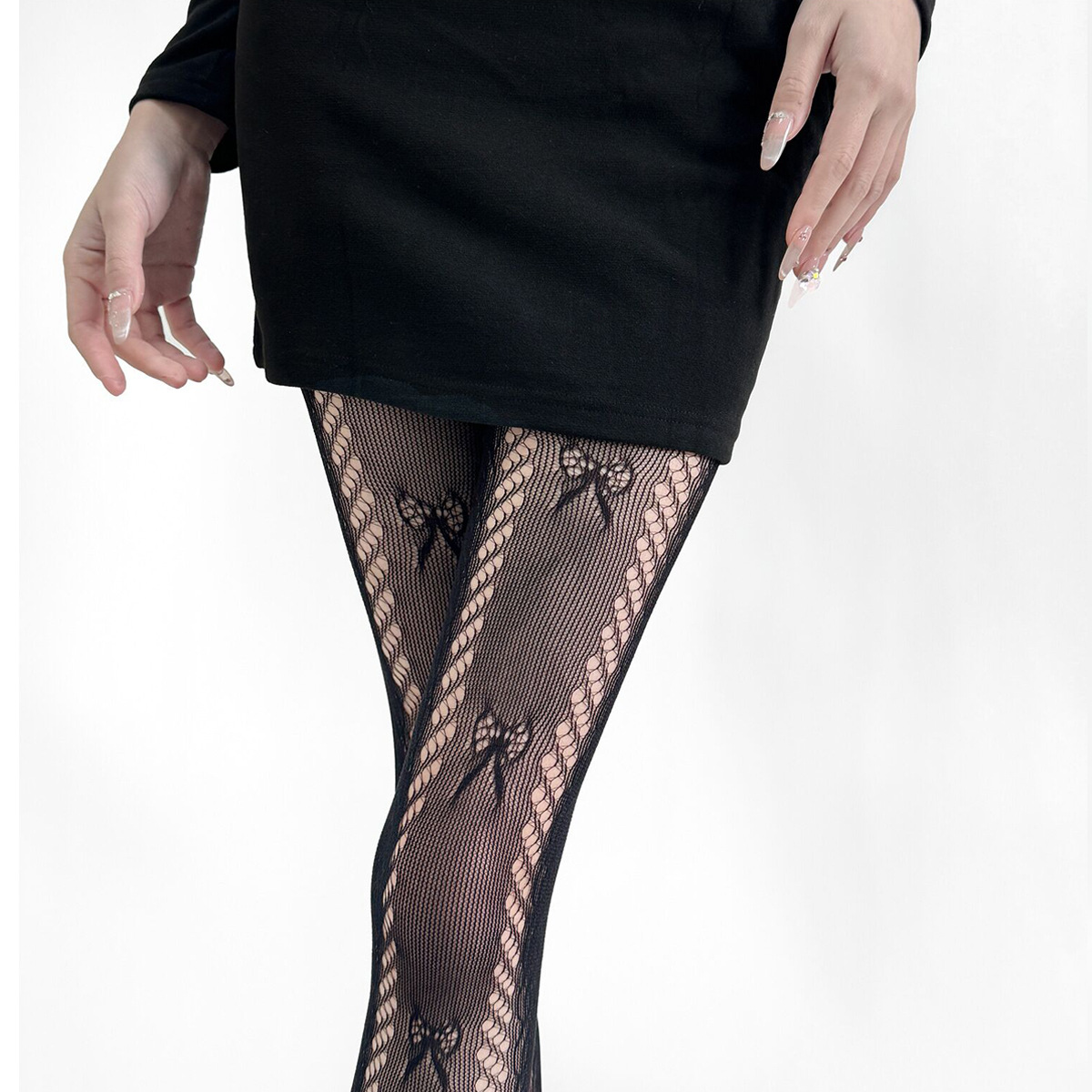 新款日系JK洛丽塔连裤袜女春夏薄款蝴蝶结蕾丝网眼裆打底袜