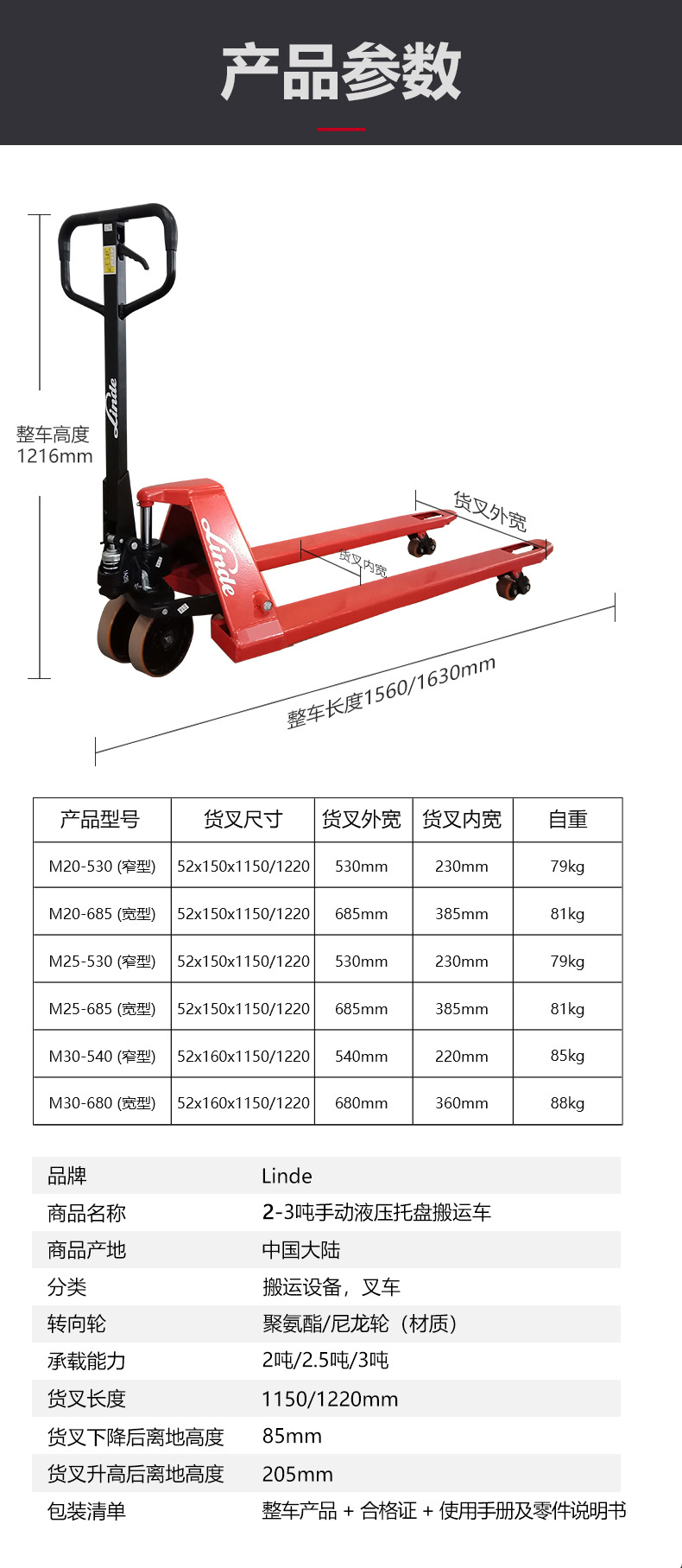 林德2吨2.5吨3吨手动叉车手推地牛手动液压搬运车手动叉车M20-30