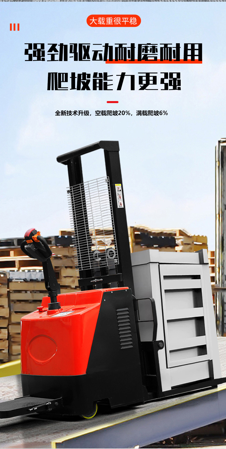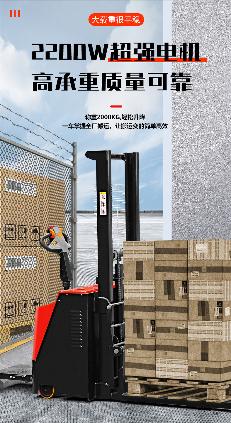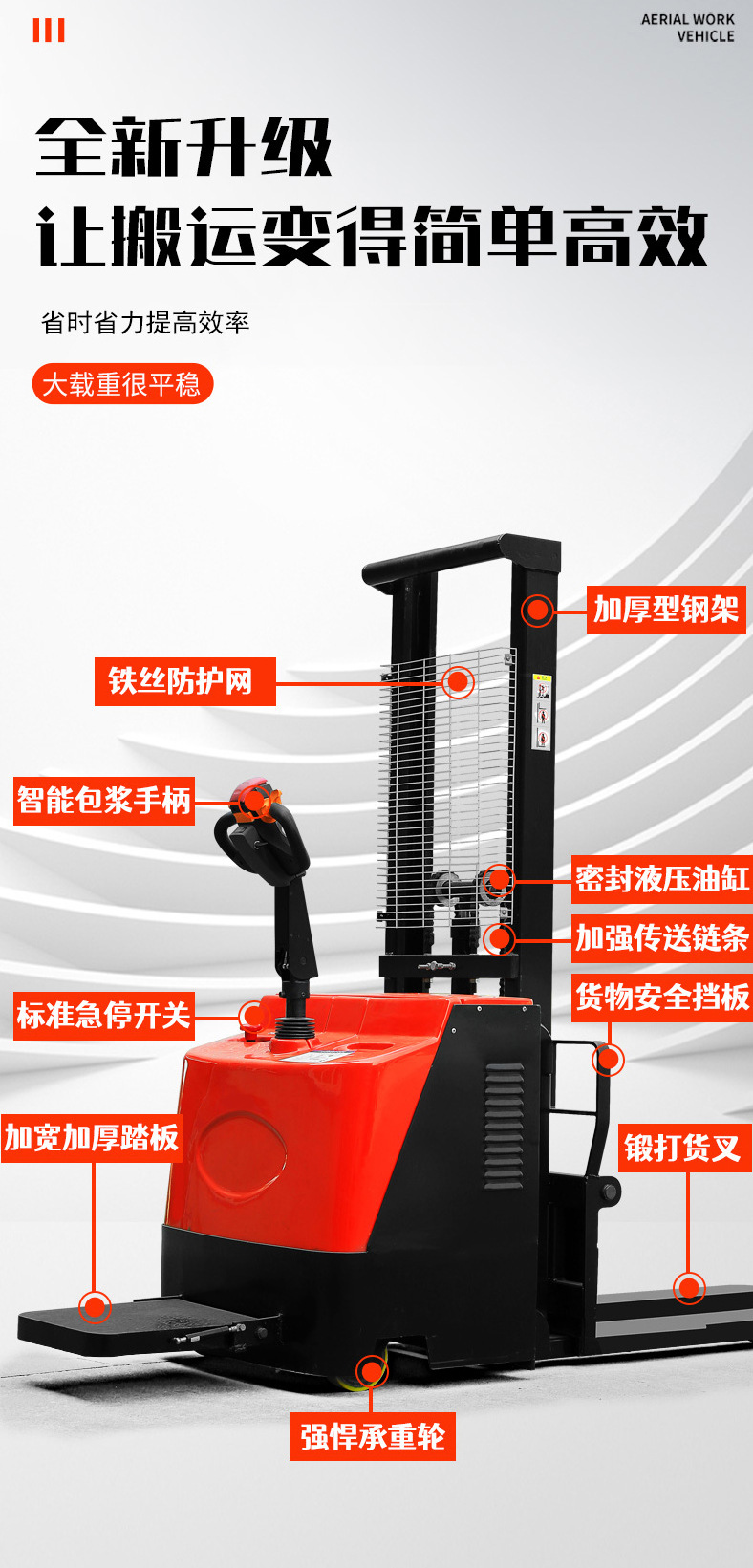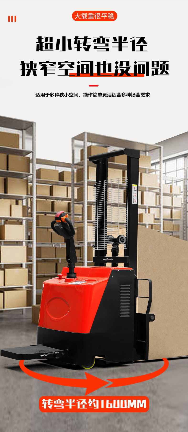 堆高车全电动1.5吨站驾式液压升降装卸车电动堆高叉车货物搬运车