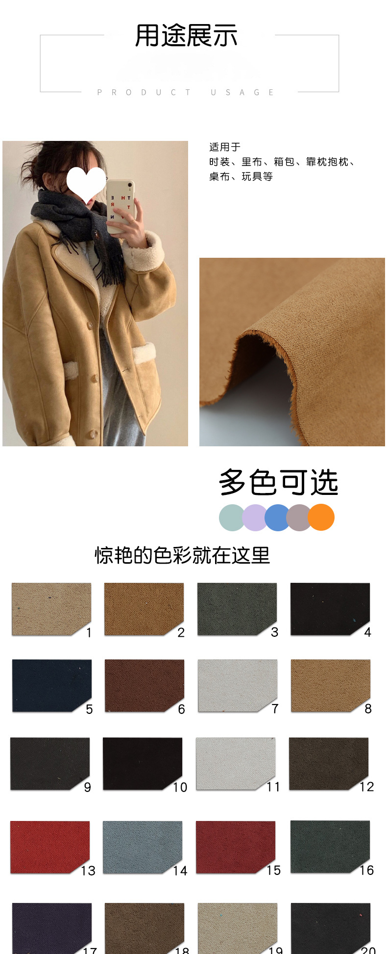 现货无弹麂皮绒面料 110克布料反面五枚缎色丁鹿皮梭织绒布仿皮绒