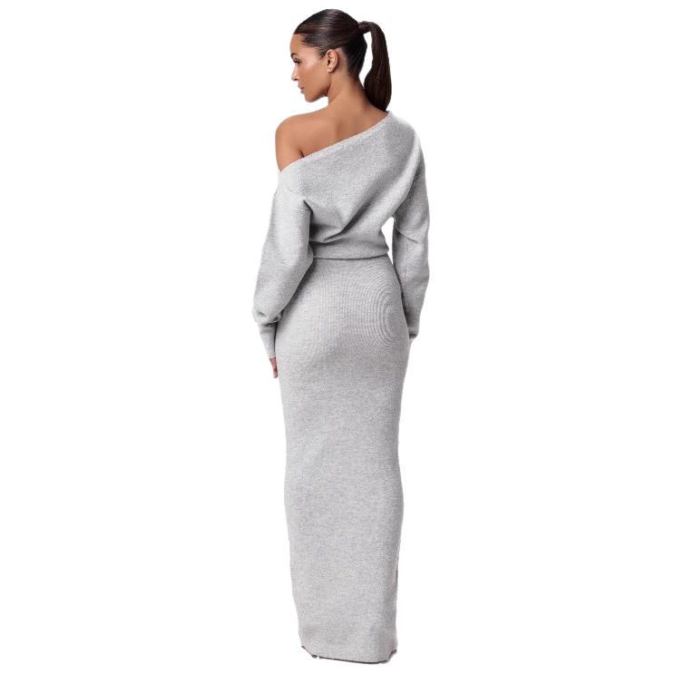 欧美性感女装跨境亚马逊新款露肩长袖修身优雅华丽连衣裙