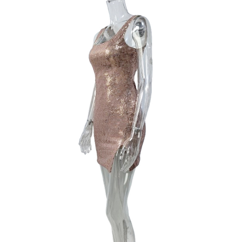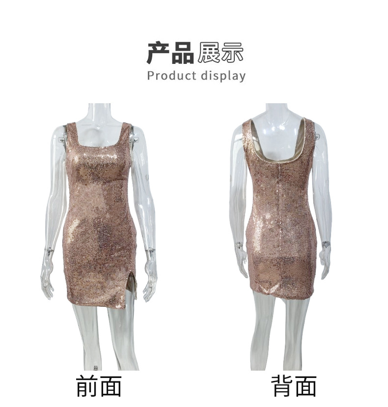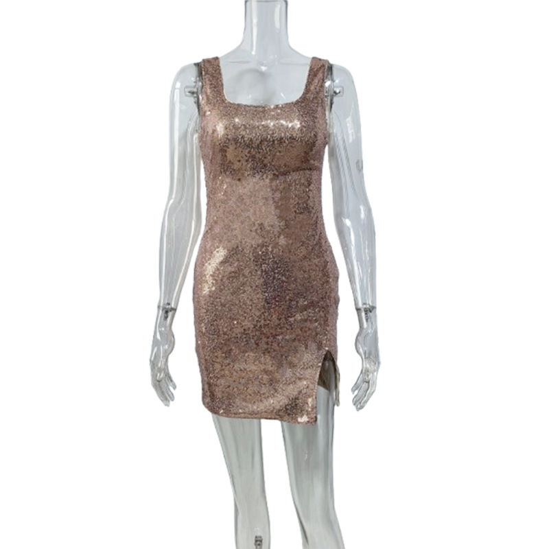 2025欧美春夏时尚新款跨境彩色菱形格亮片开叉包臀性感连衣裙批发