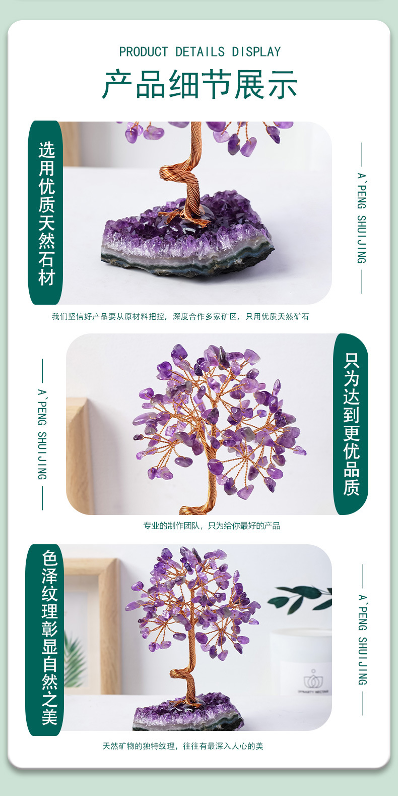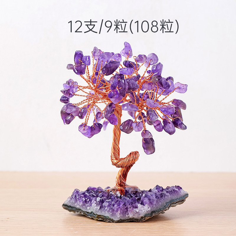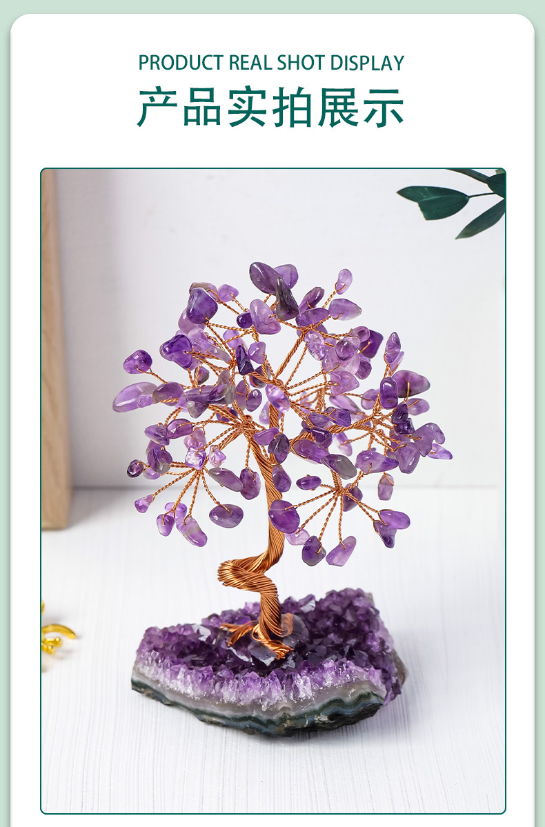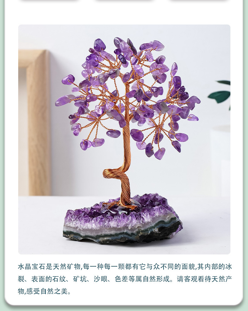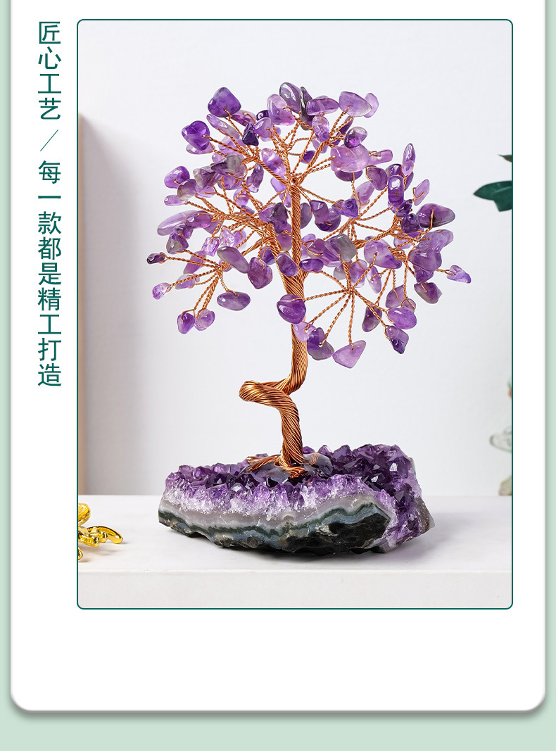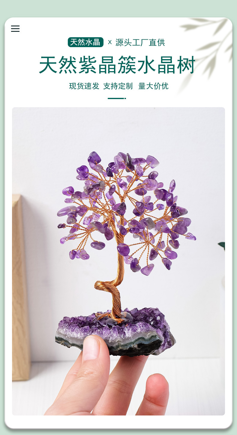 天然紫水晶簇发财树摆件紫水晶碎石水晶原石树家居装饰工艺品摆件