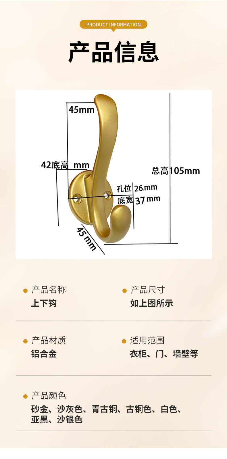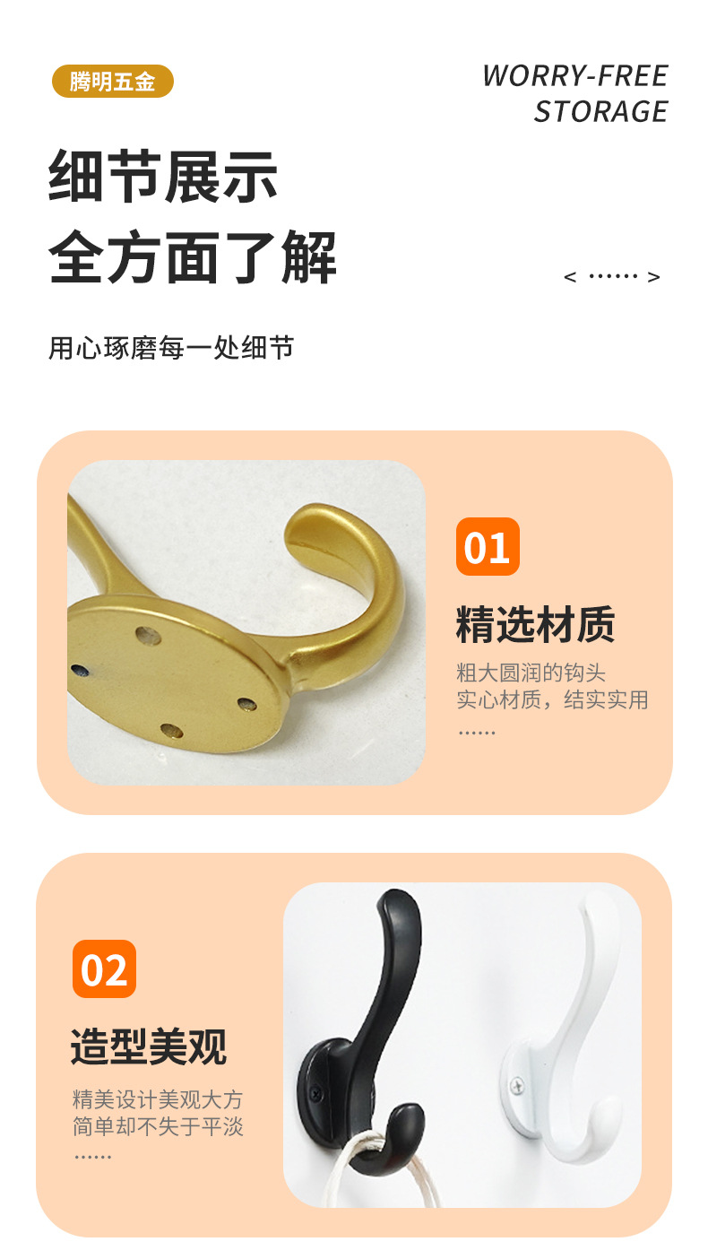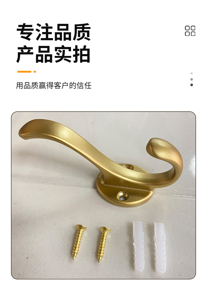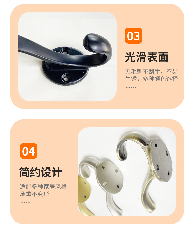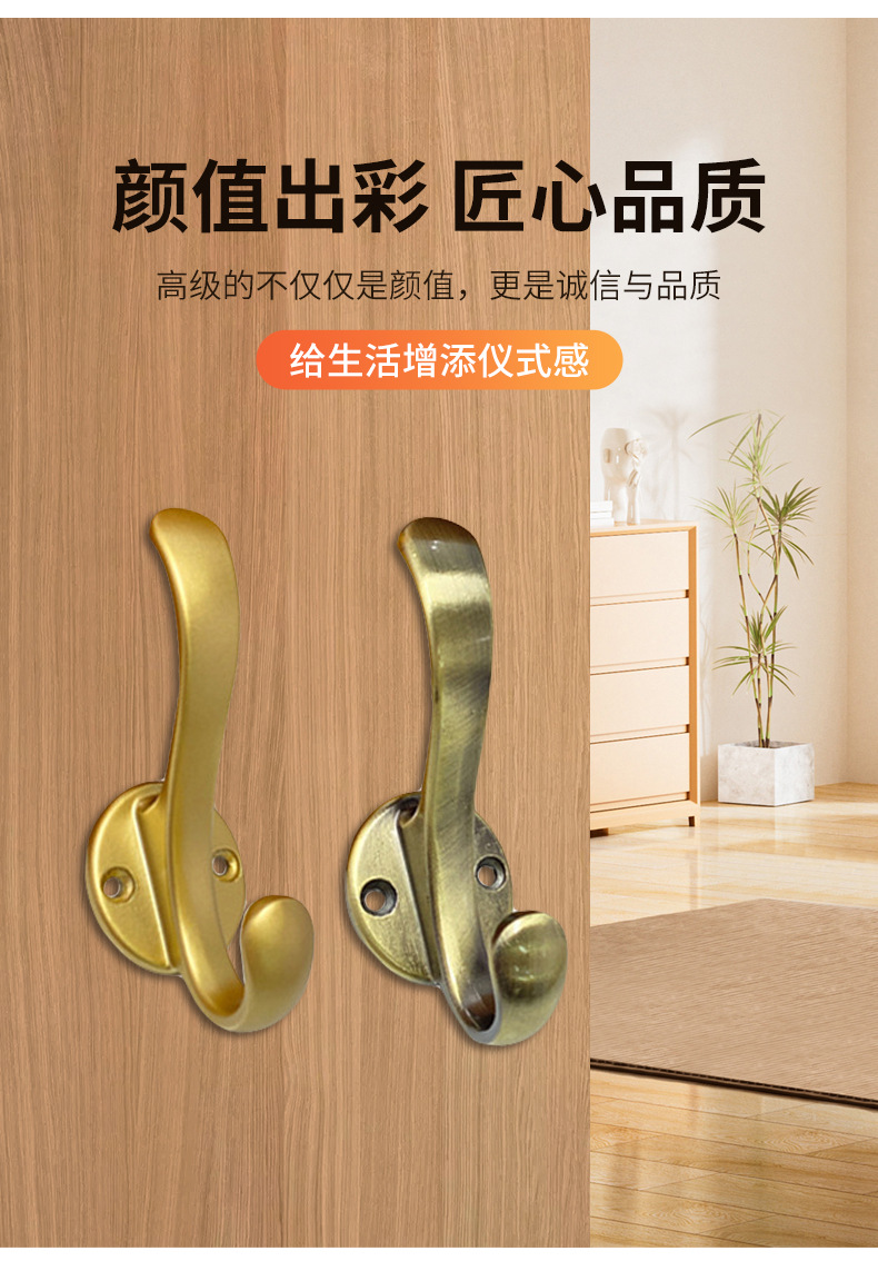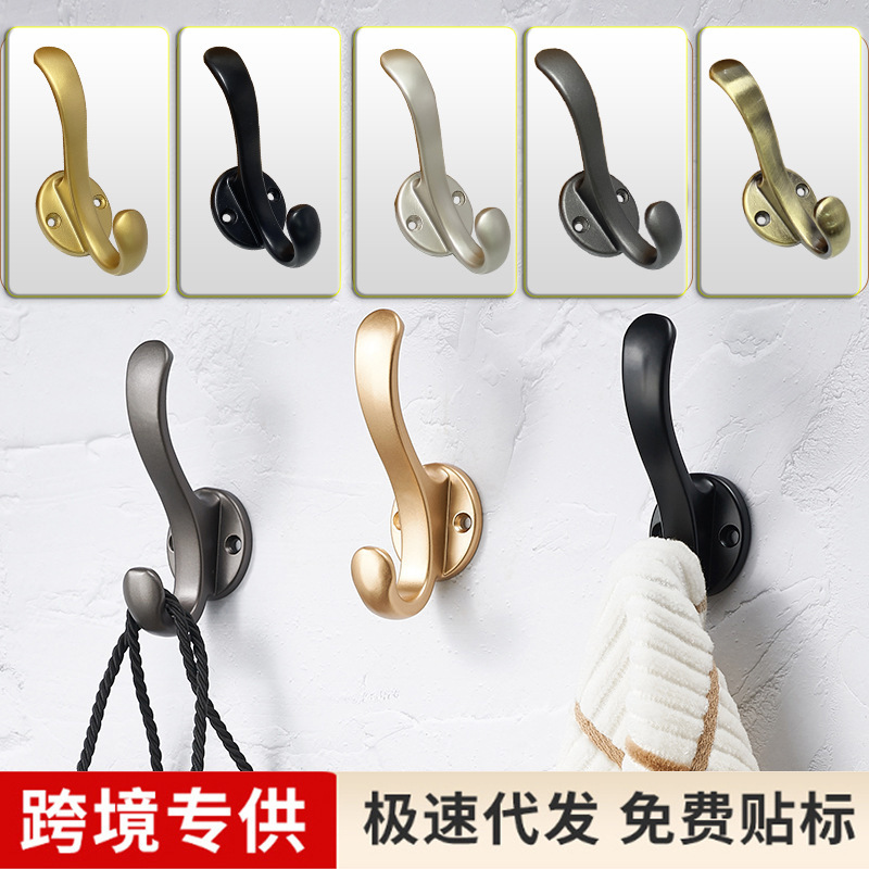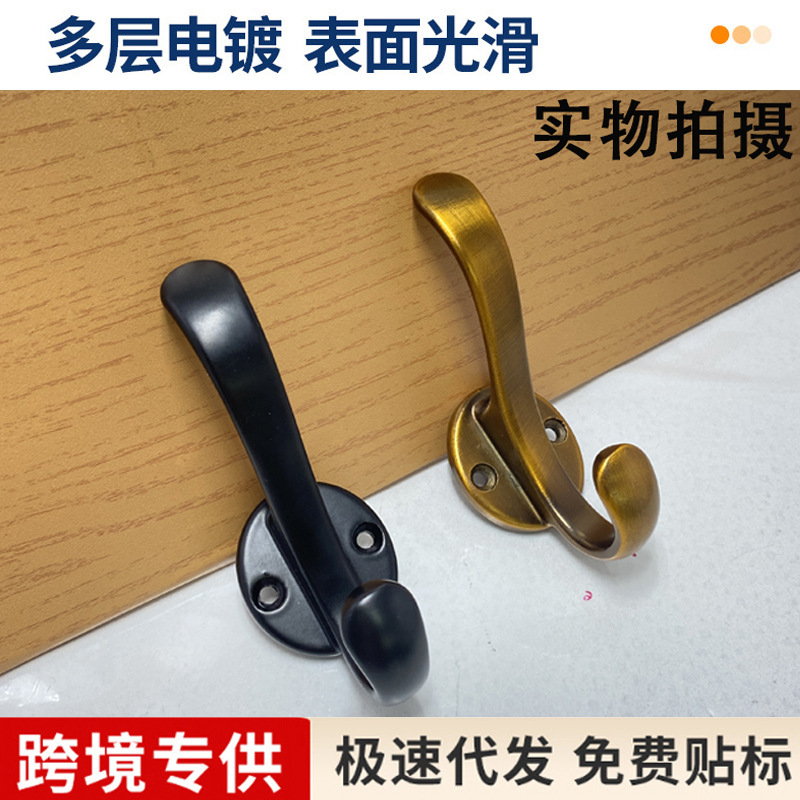 跨境专供锌合金衣帽钩卧室橱柜门后金属挂衣钩单钩五金配件批发