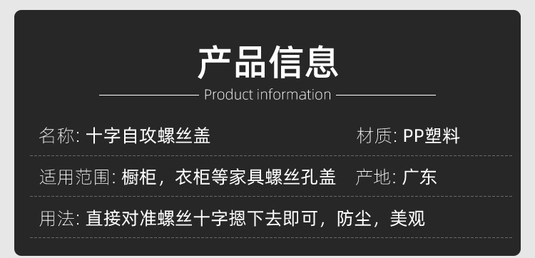 源斯威 批发10厘十字自攻螺丝盖沉头螺丝隐藏盖家具螺丝装饰圆盖