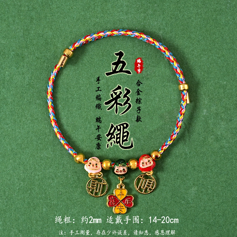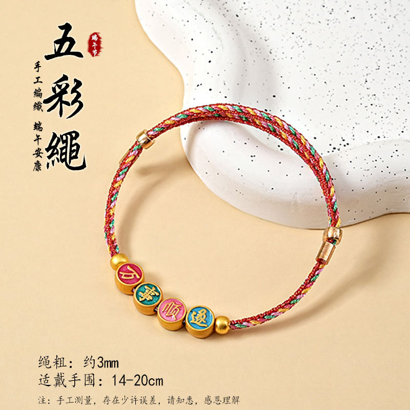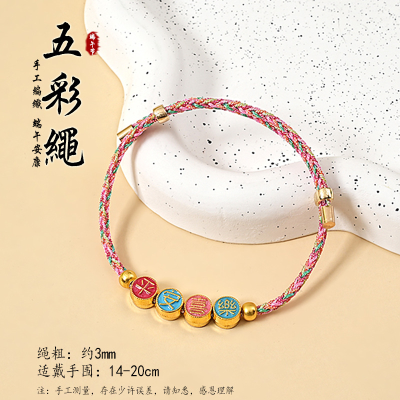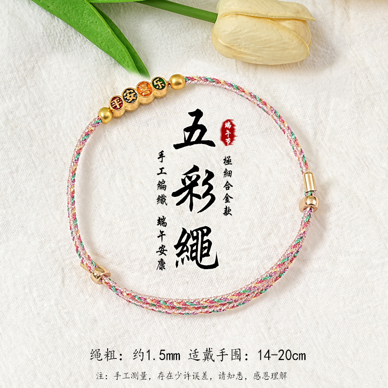 端午节五彩绳手绳平安喜乐红绳情侣手链手工编织本命年手绳民族风