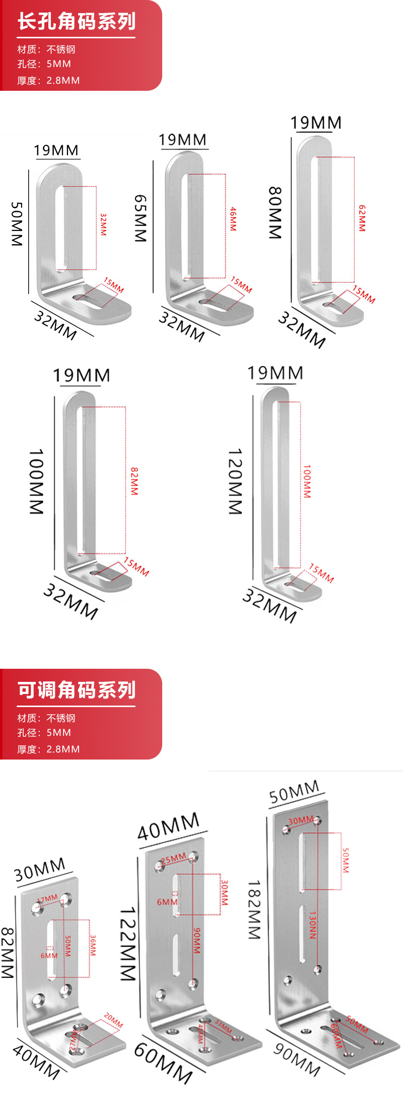 不锈钢角码90度直角固定器可调节长孔支架层板托tl型连接件片角码