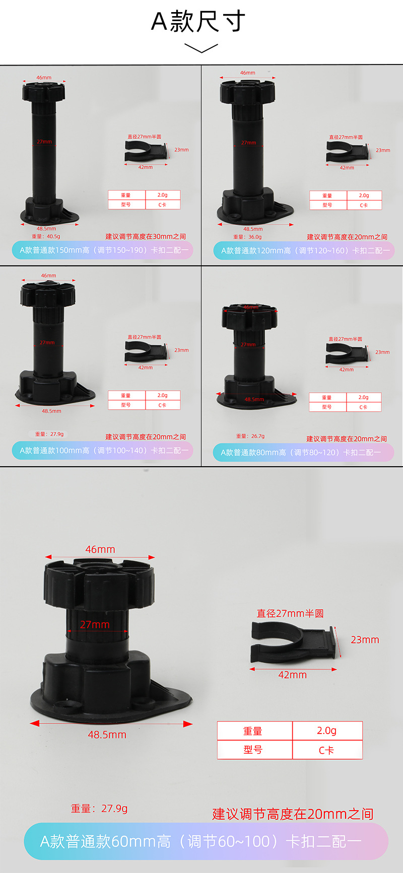 可调节橱柜脚厨柜地脚家具沙发脚橱柜挡板ABS塑料加厚支撑脚批发