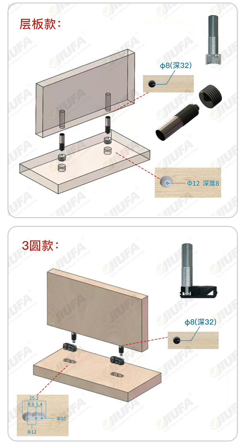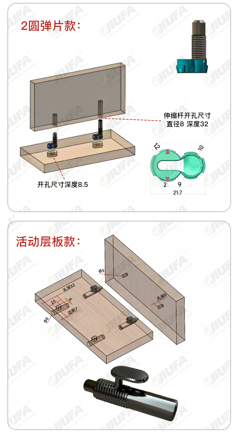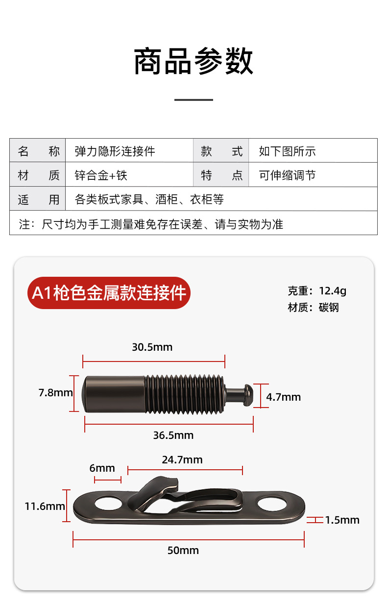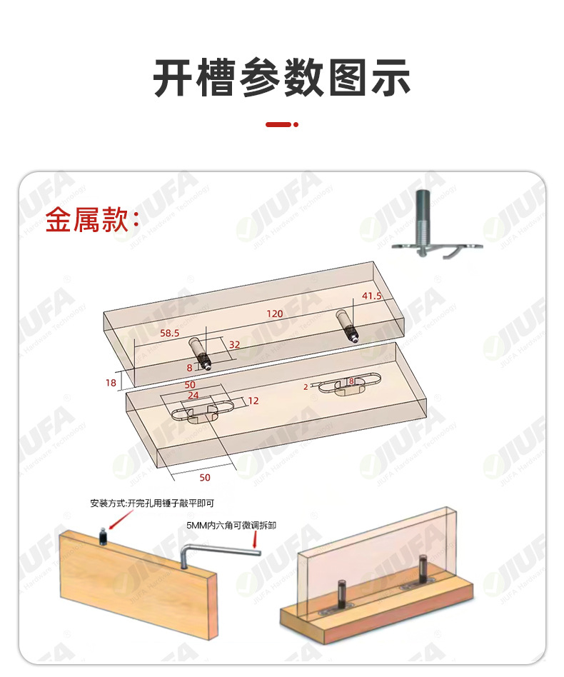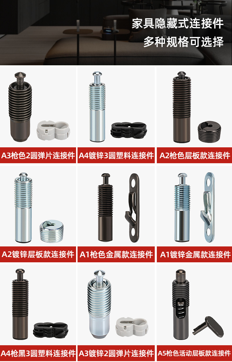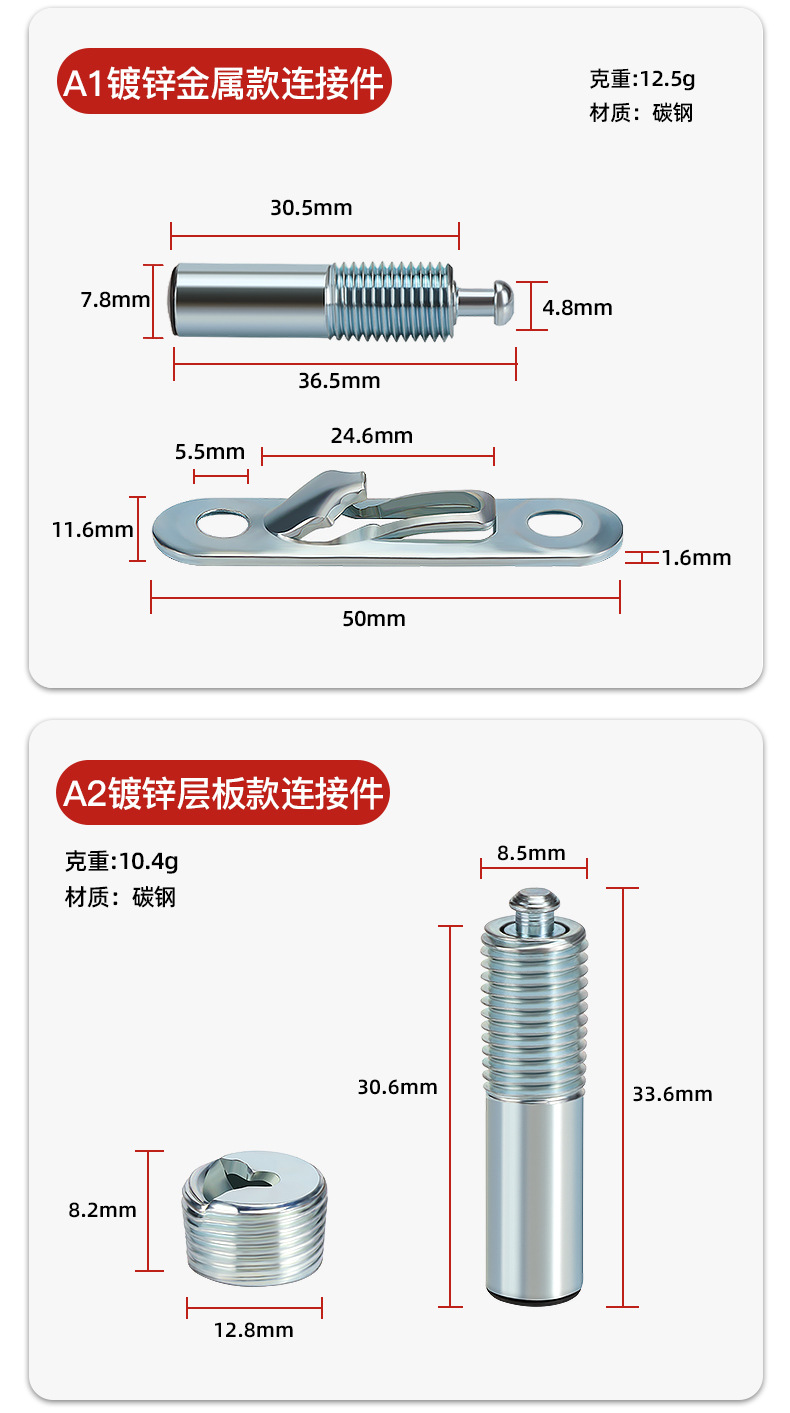 隐形滑扣无孔二合一层板连接件家具扣件木工橱柜衣柜家具五金配件