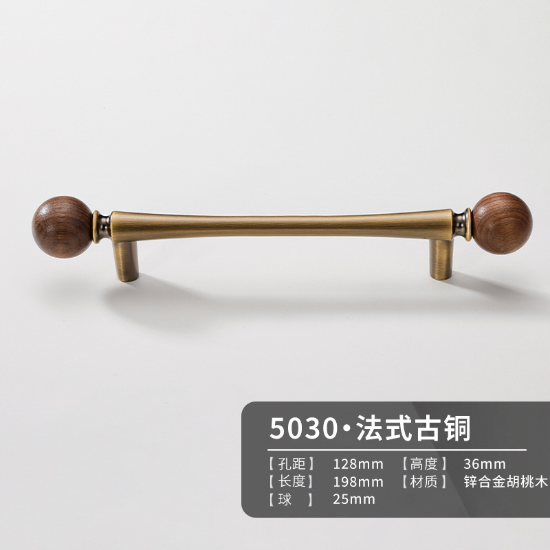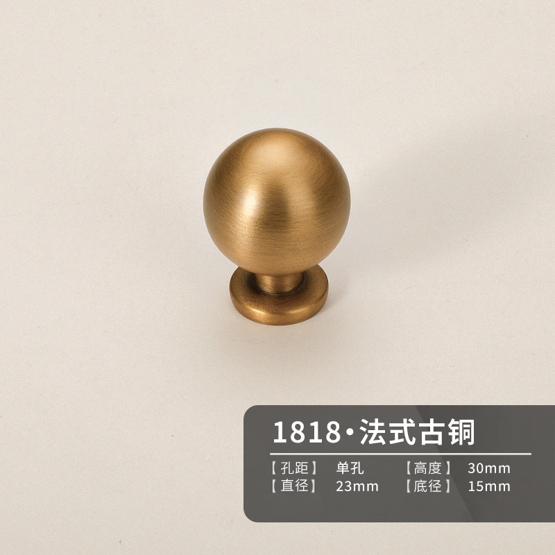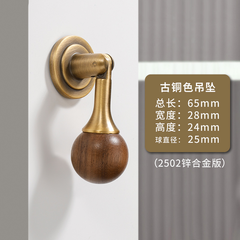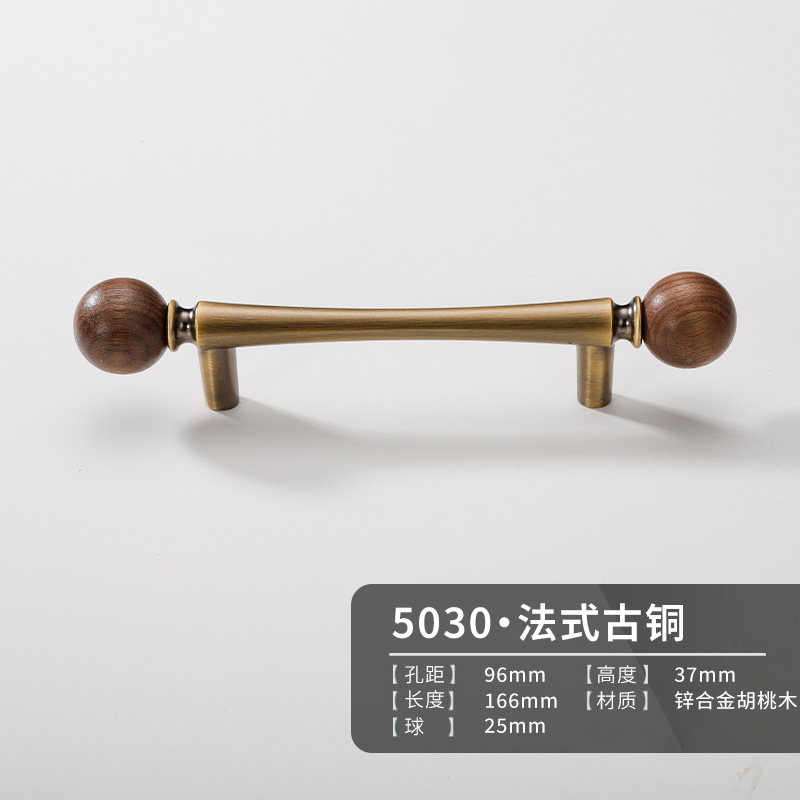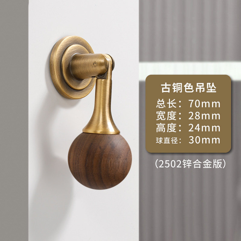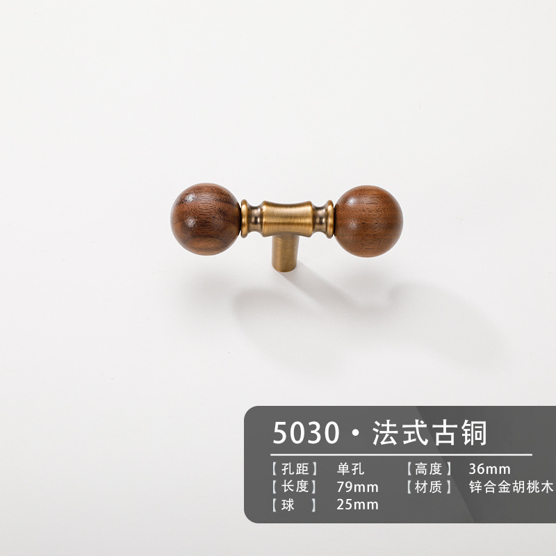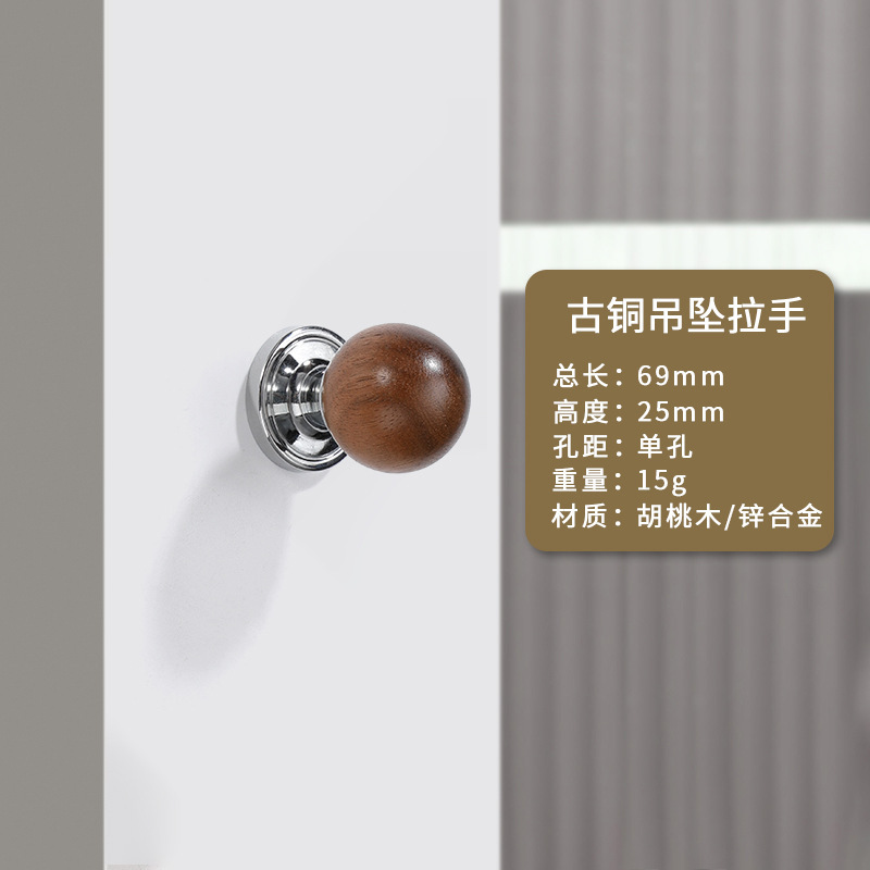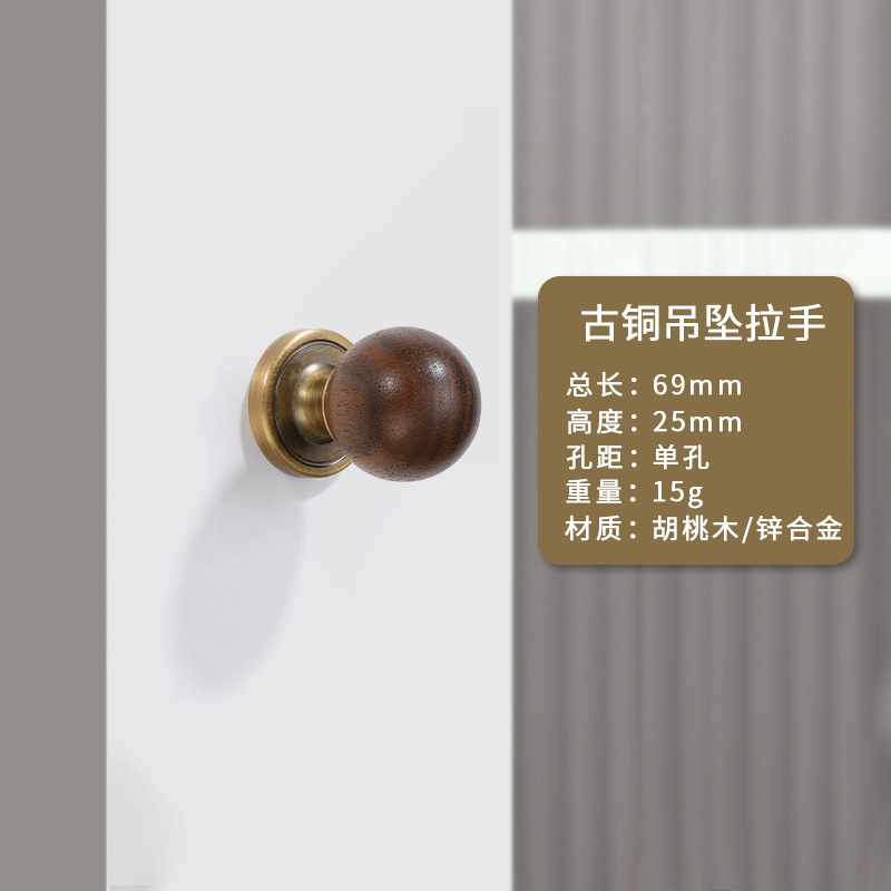 法式柜门黄铜把手衣柜门抽屉中古风胡桃木圆球新中式吊坠小拉手