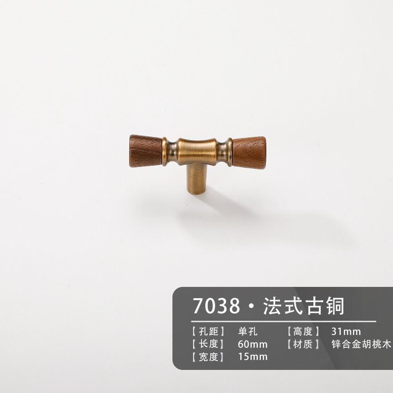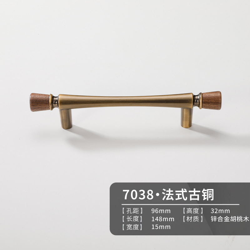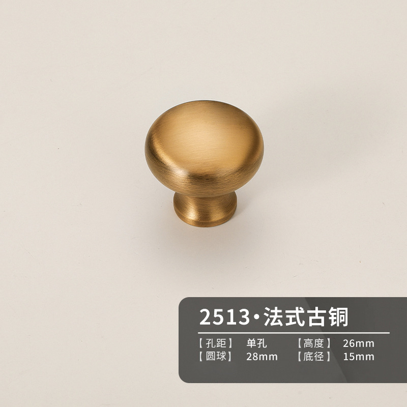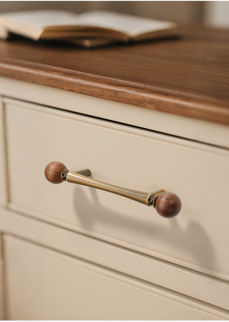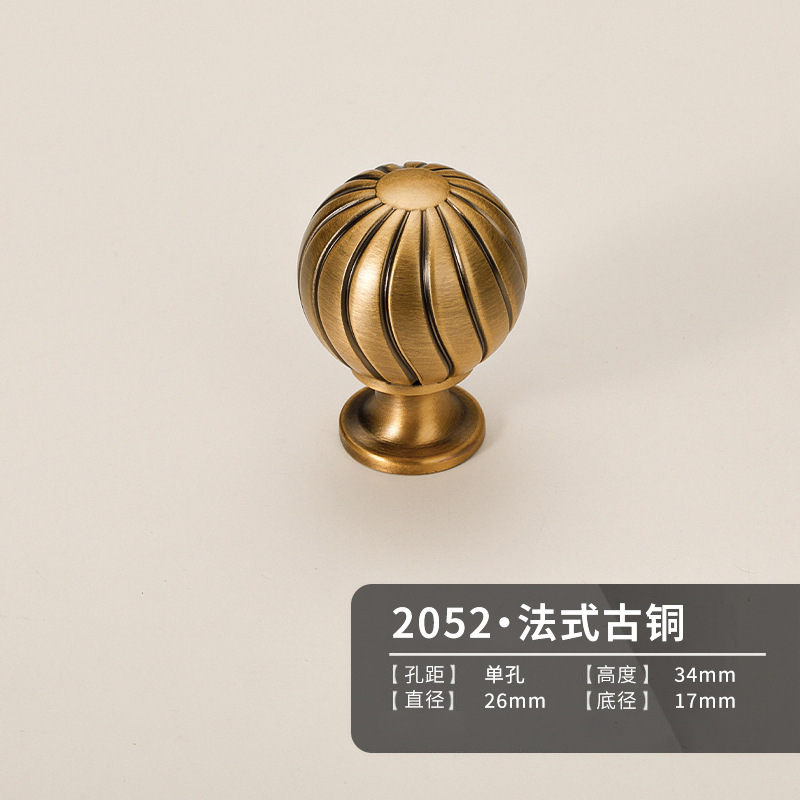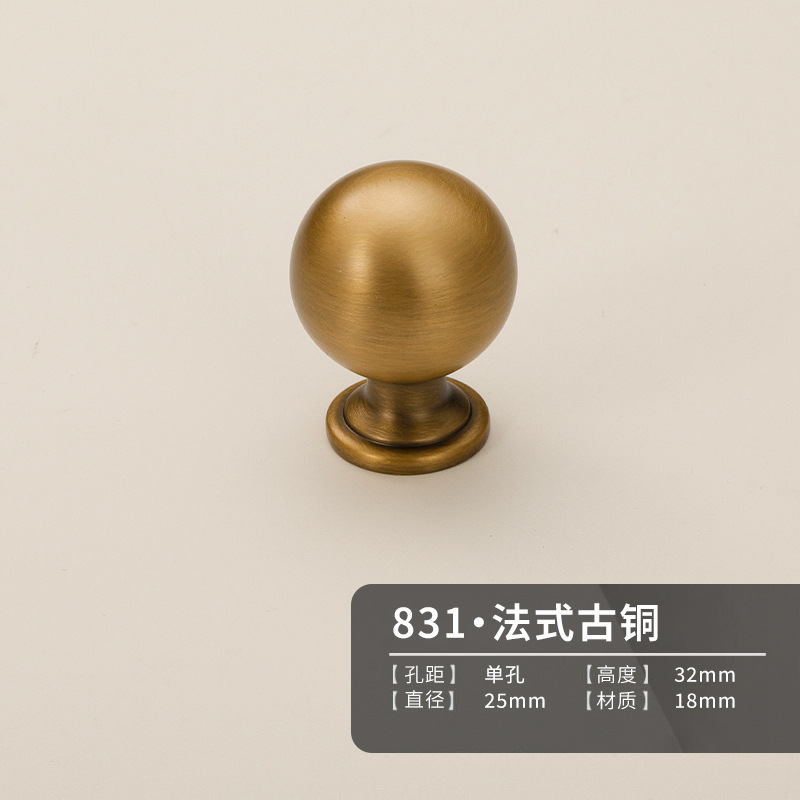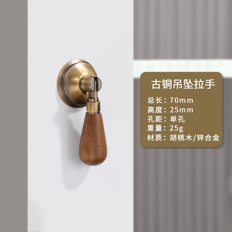 法式柜门黄铜把手衣柜门抽屉中古风胡桃木圆球新中式吊坠小拉手