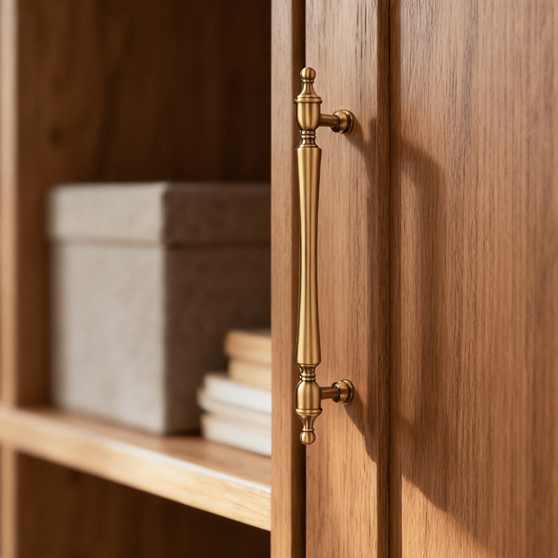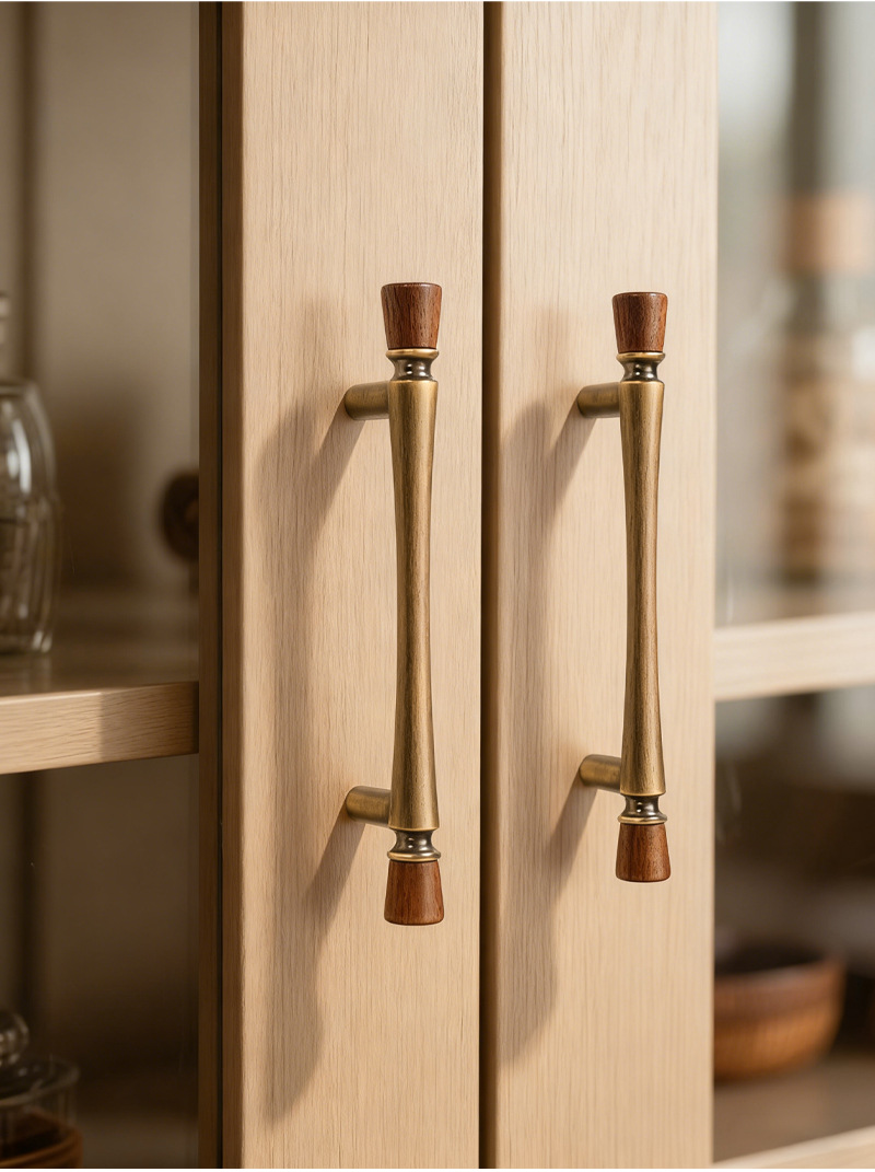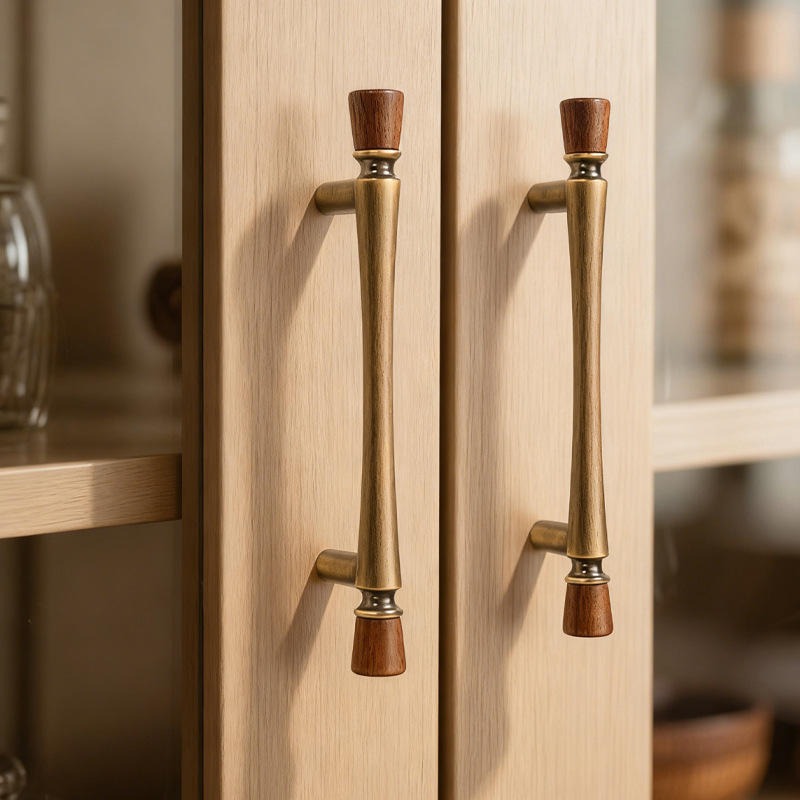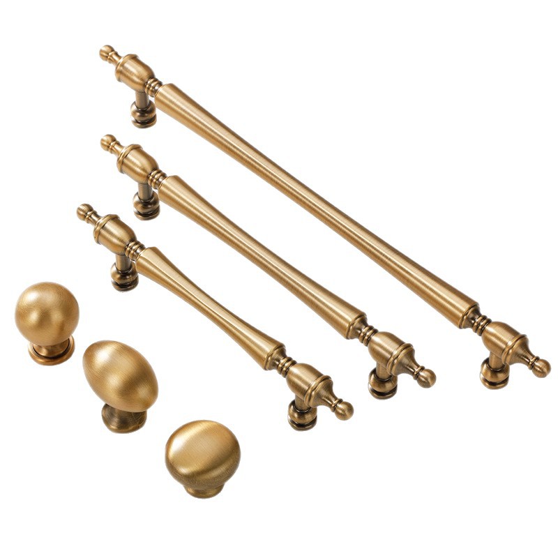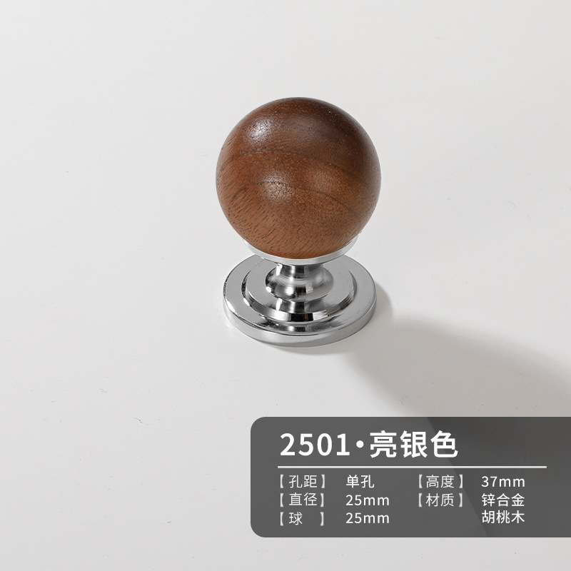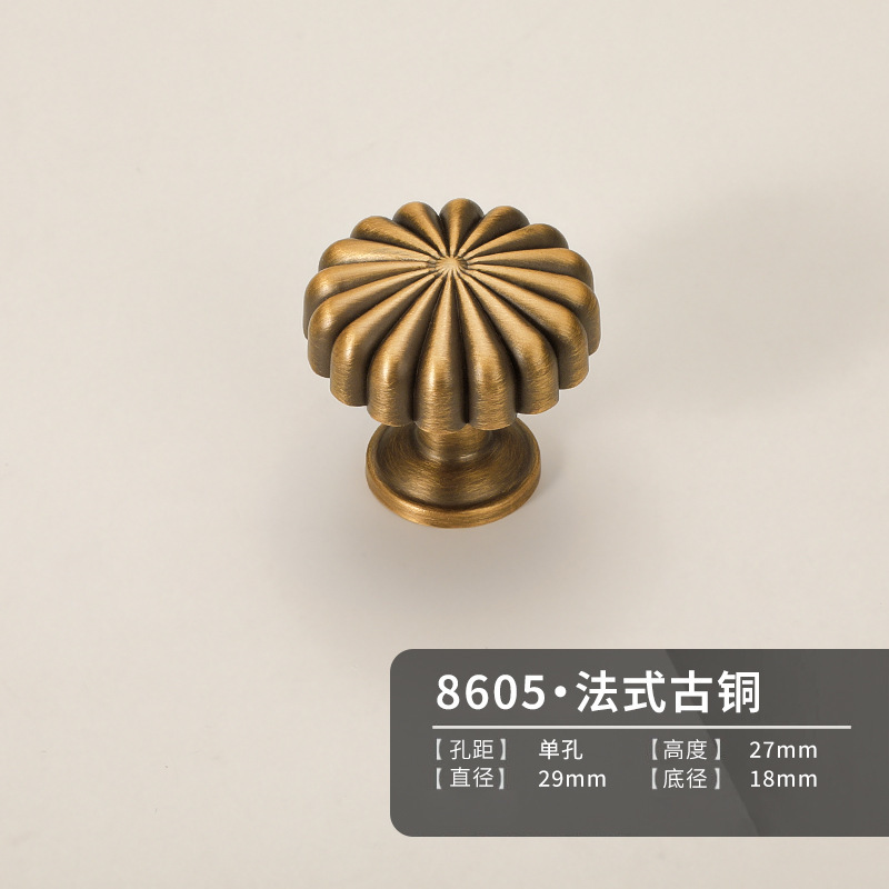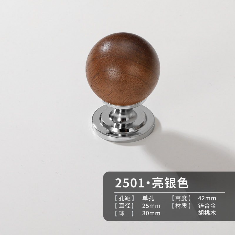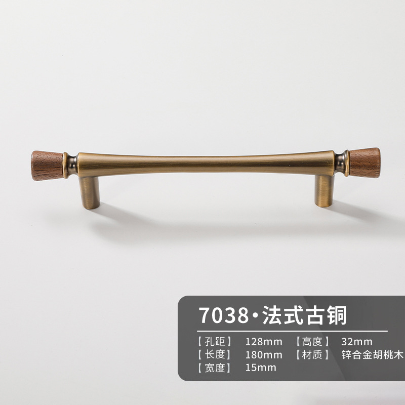 法式柜门黄铜把手衣柜门抽屉中古风胡桃木圆球新中式吊坠小拉手