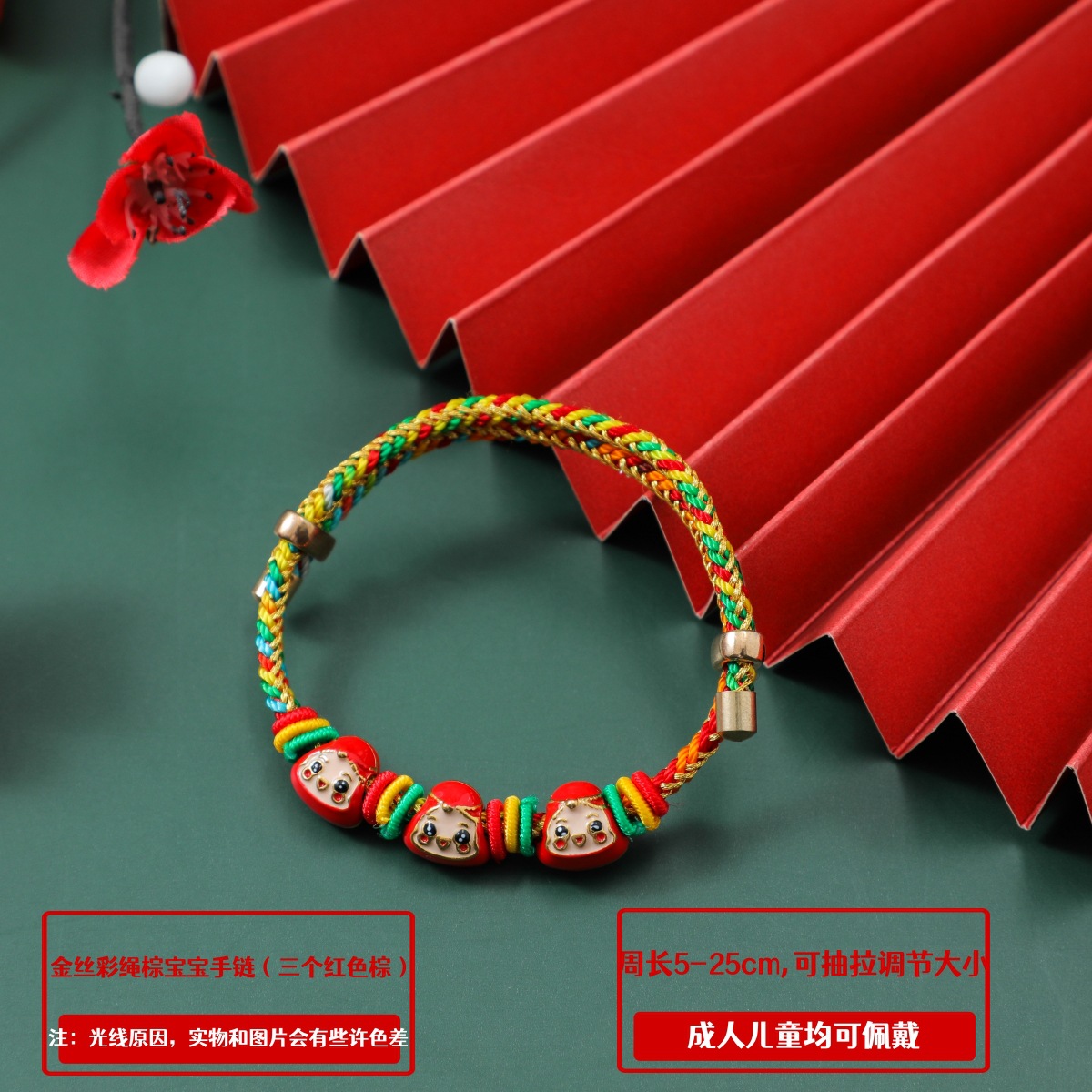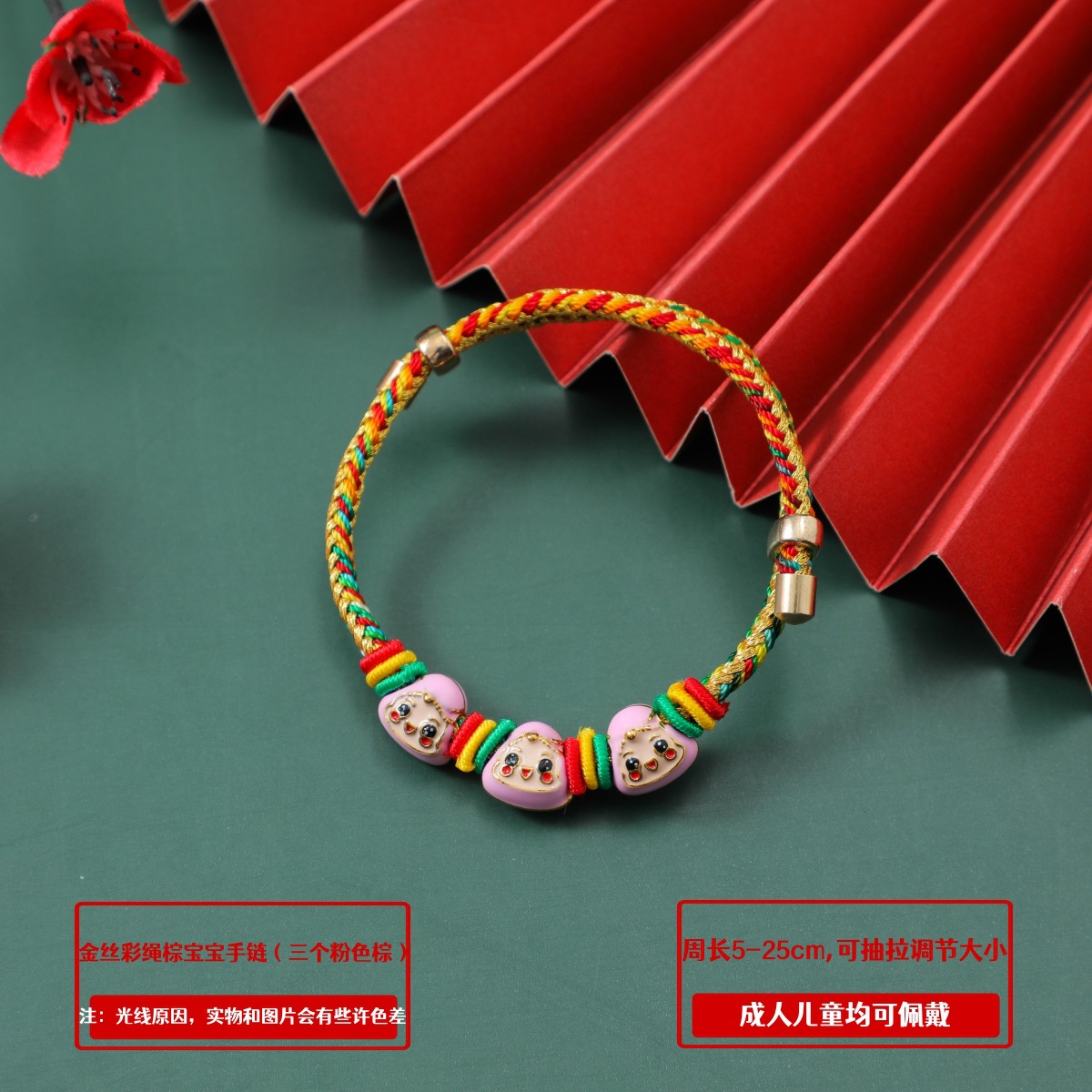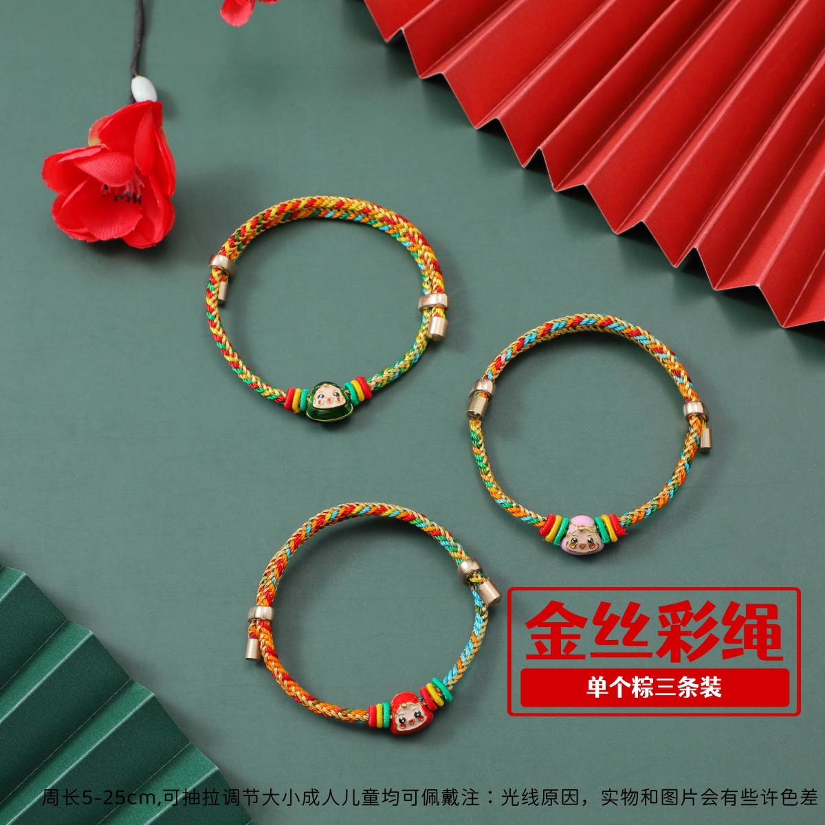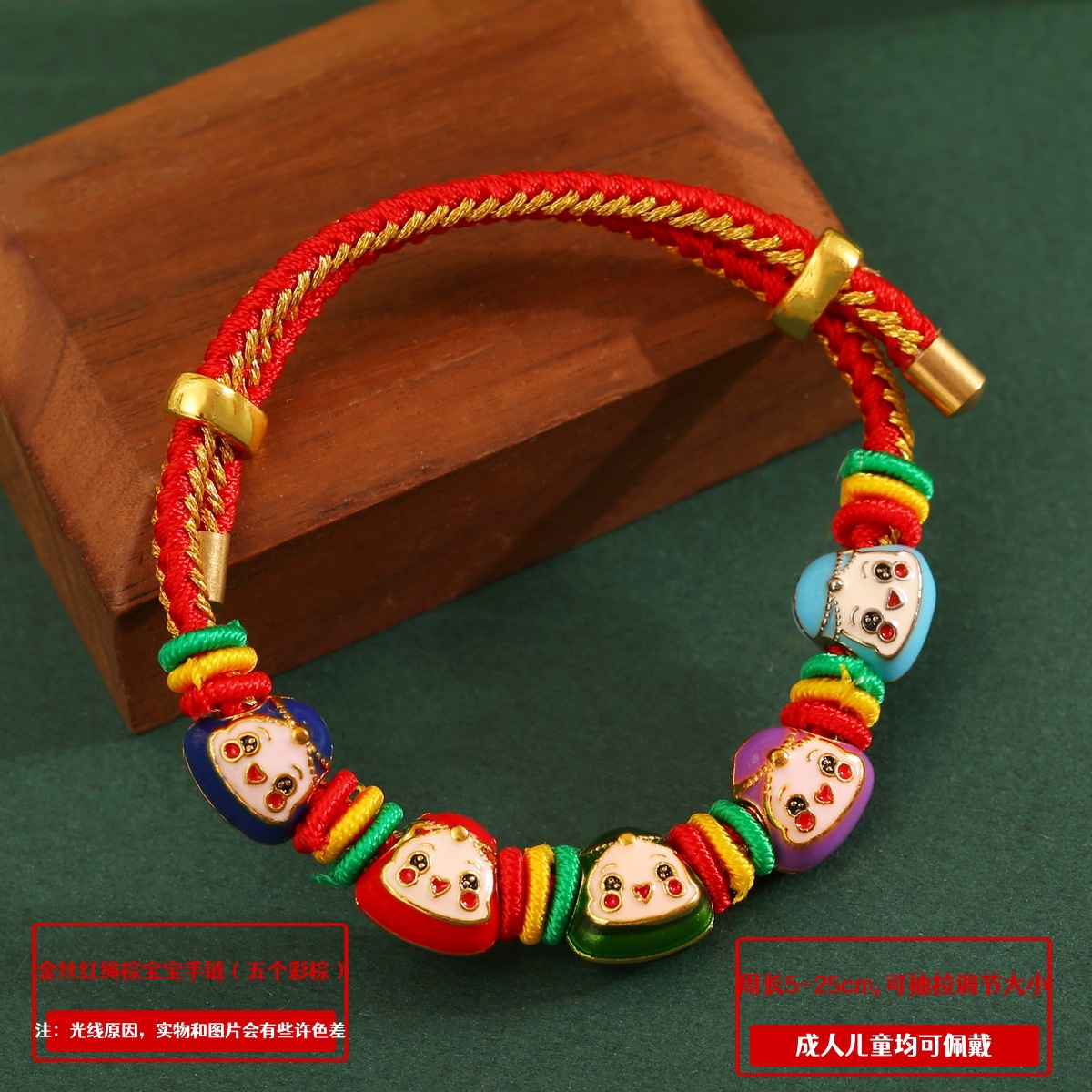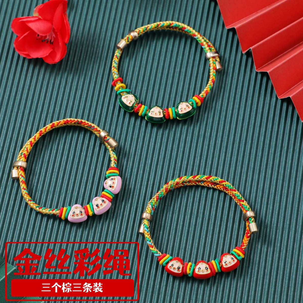 端午节五彩绳手工编织diy传统元素卡通粽宝宝手绳端午批货红绳