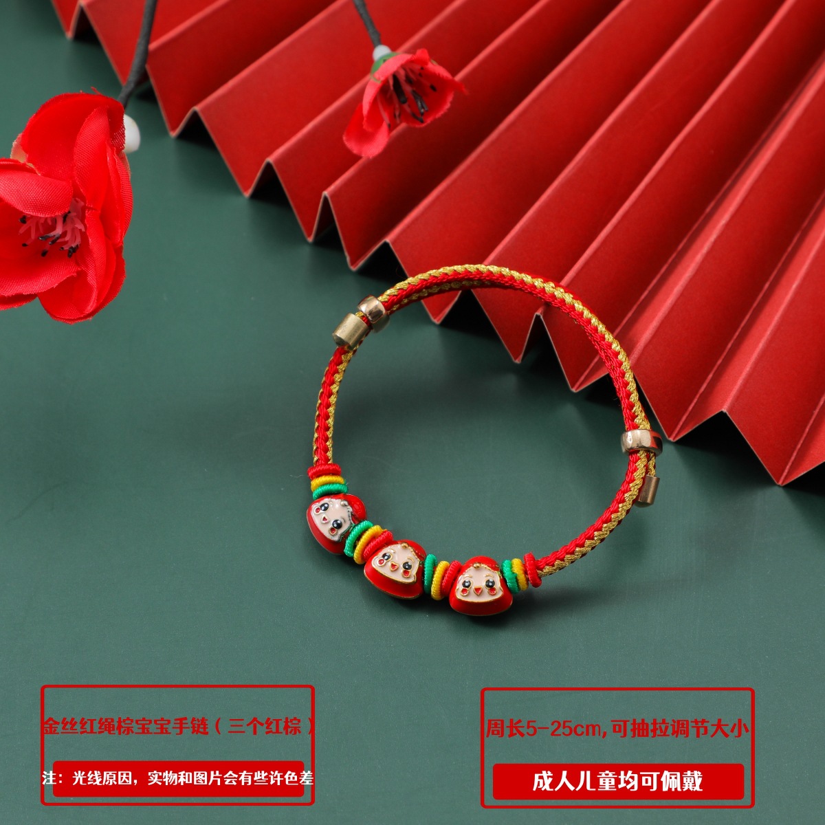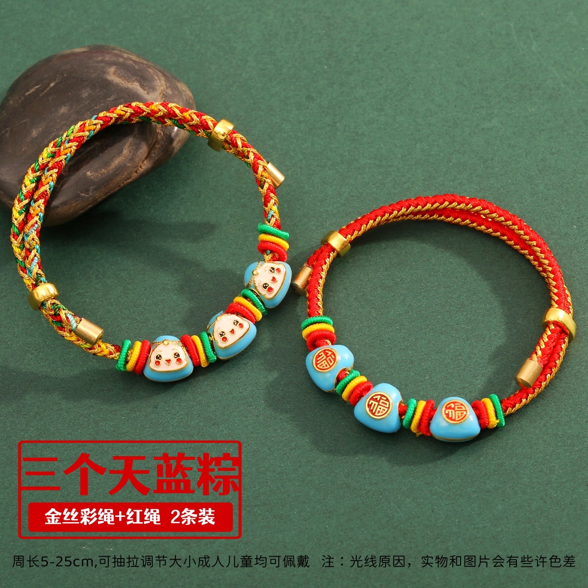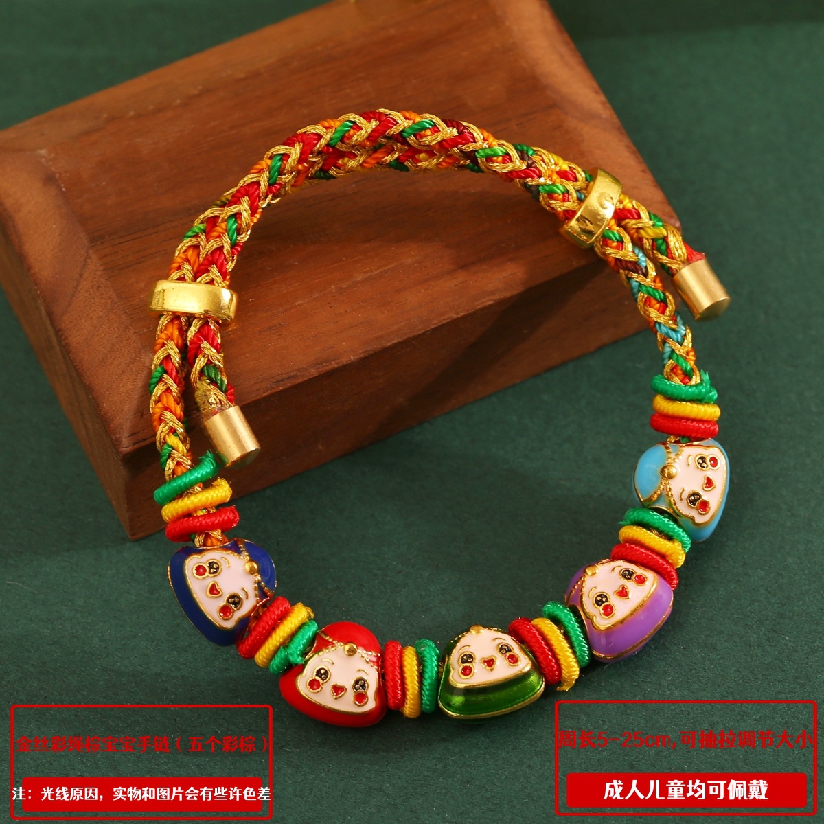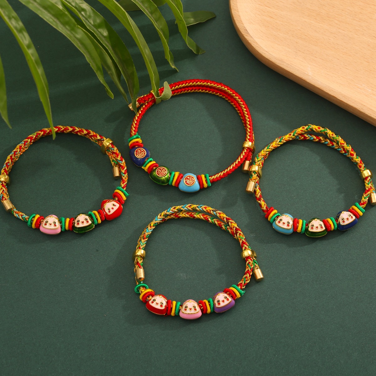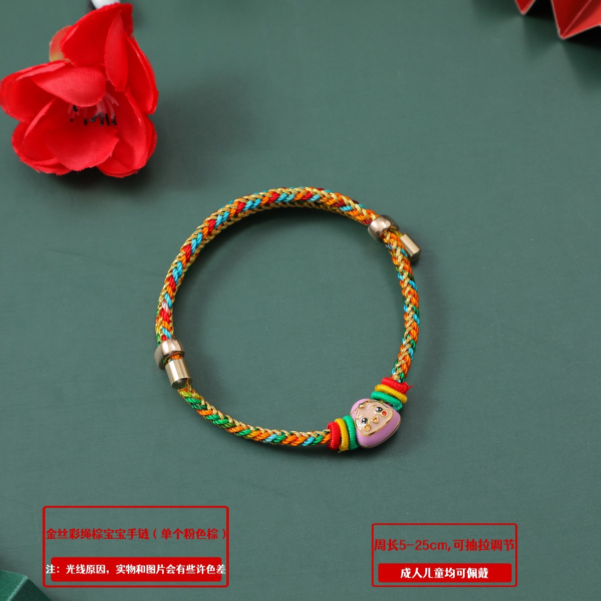 端午节五彩绳手工编织diy传统元素卡通粽宝宝手绳端午批货红绳