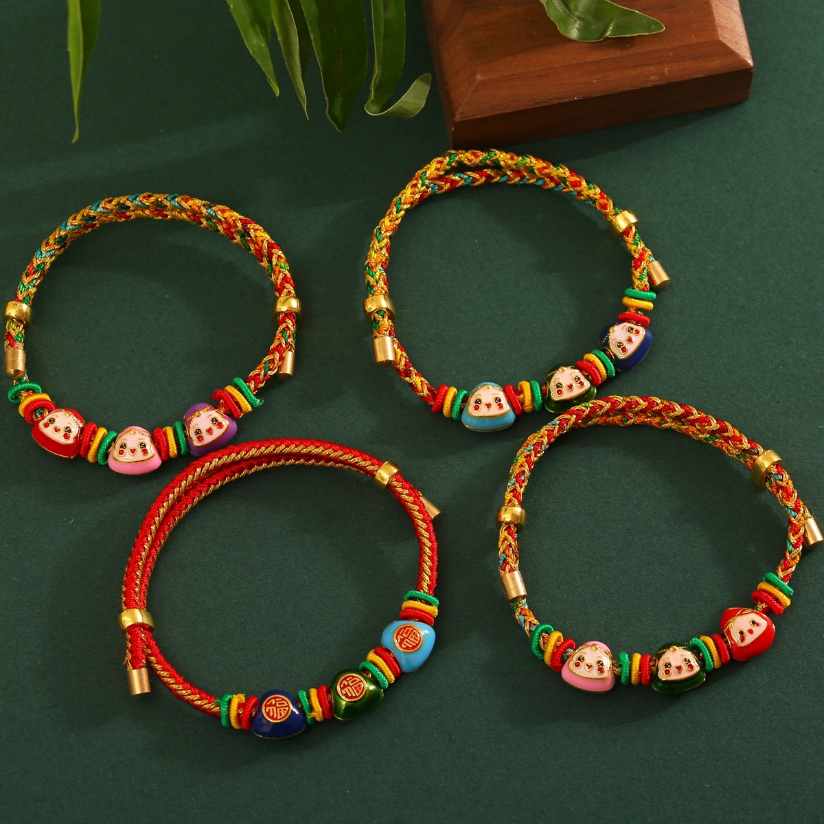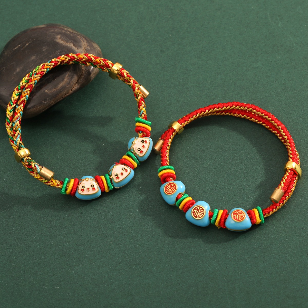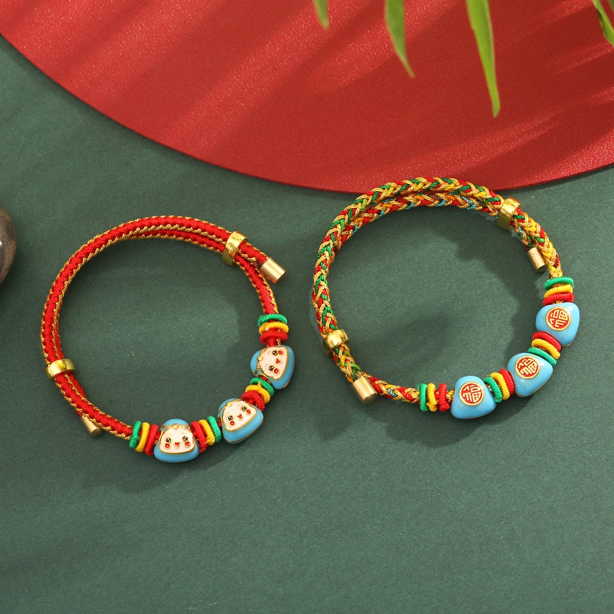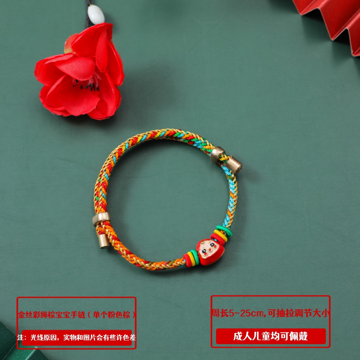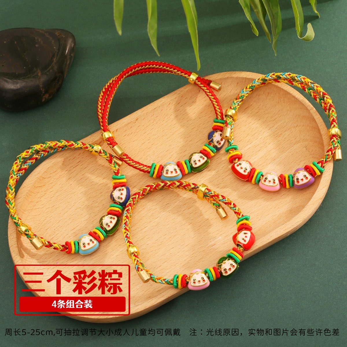 端午节五彩绳手工编织diy传统元素卡通粽宝宝手绳端午批货红绳