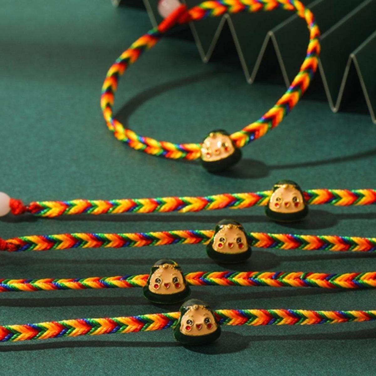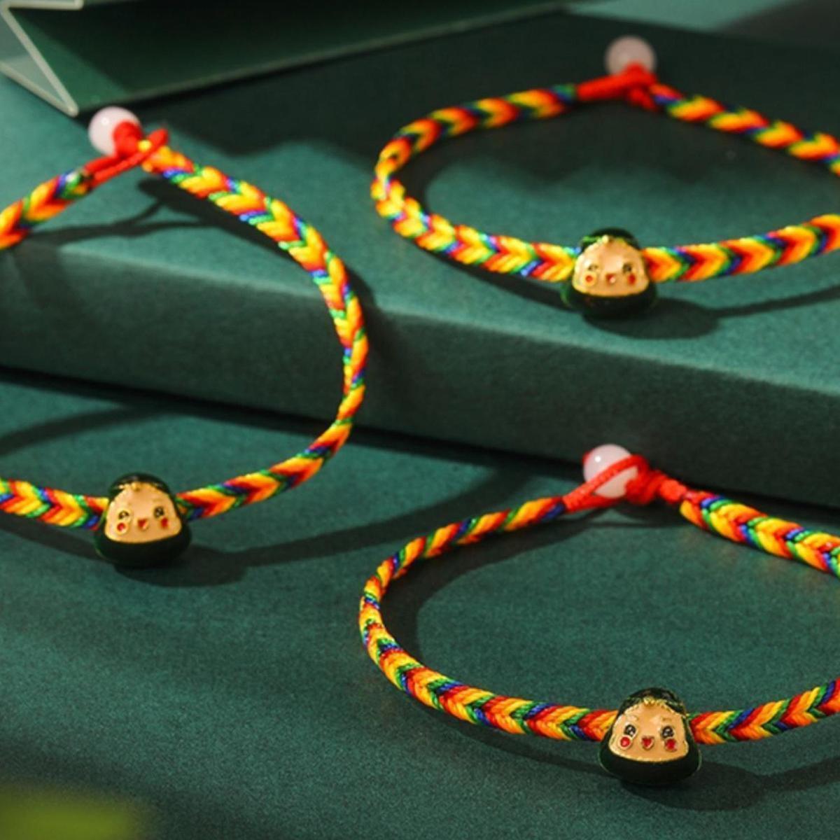 端午节五彩绳小粽子手链女婴儿宝宝五色线手绳男儿童编织红绳