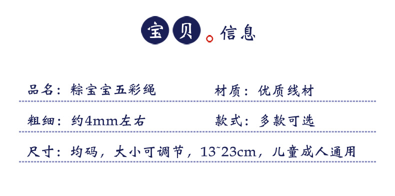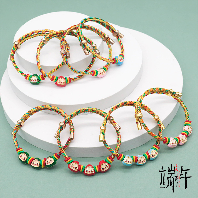 五彩手绳编织合金滴油粽宝宝儿童红绳五色线端午节五彩绳手链批发