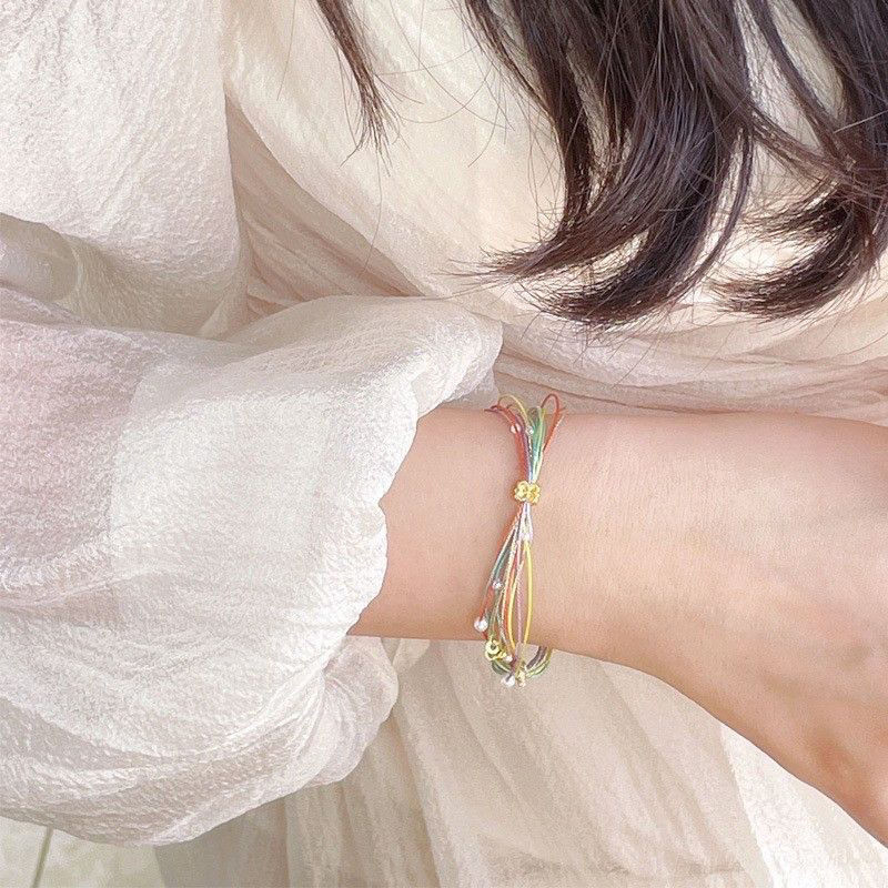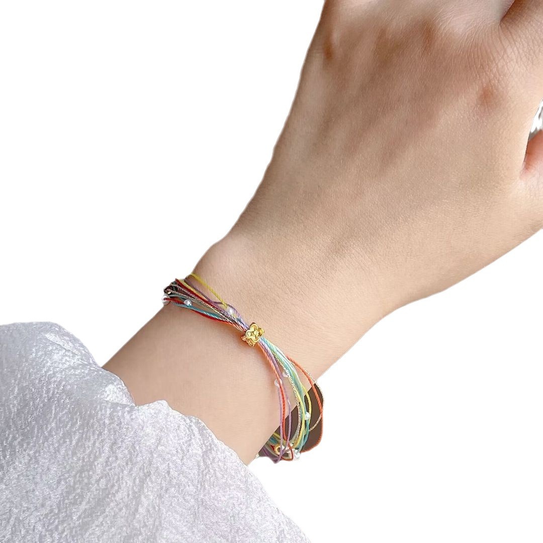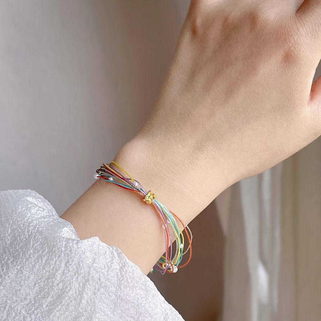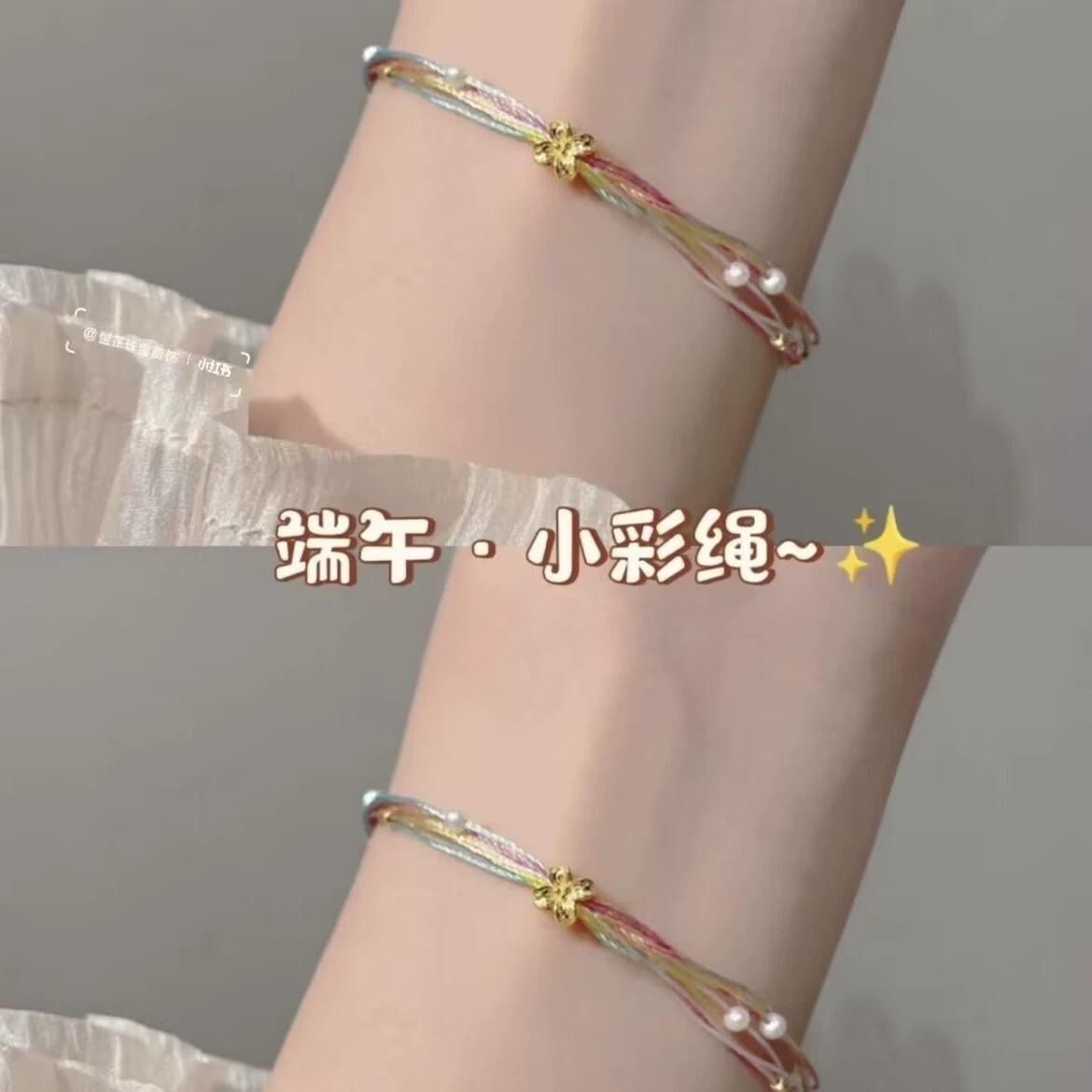 端午节平安喜乐五彩手链手工编织成品珍珠手绳礼物端午节五彩绳