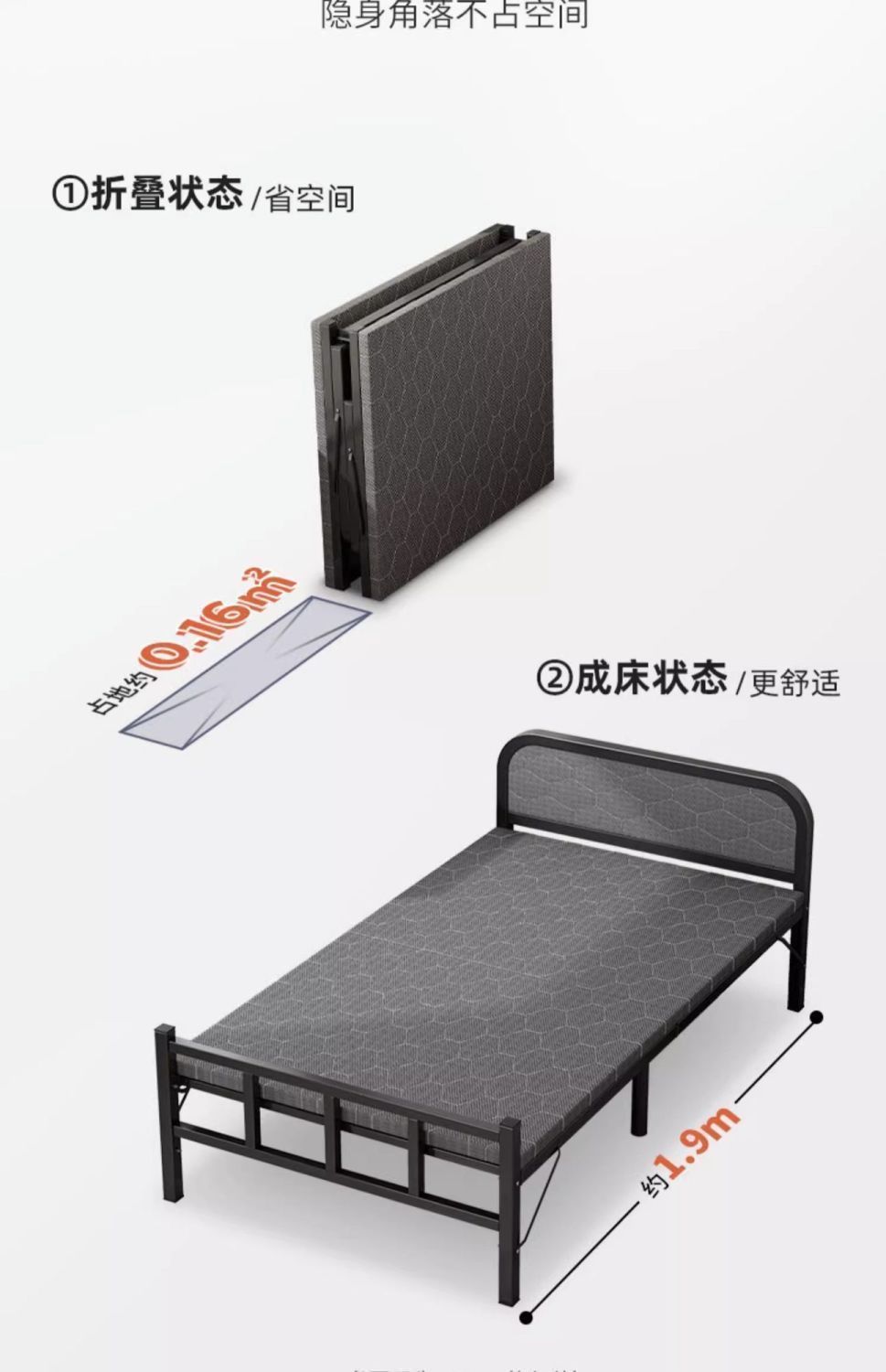 折叠床单人家用简易床陪护1.2米加固午休小床出租屋成人硬板铁床