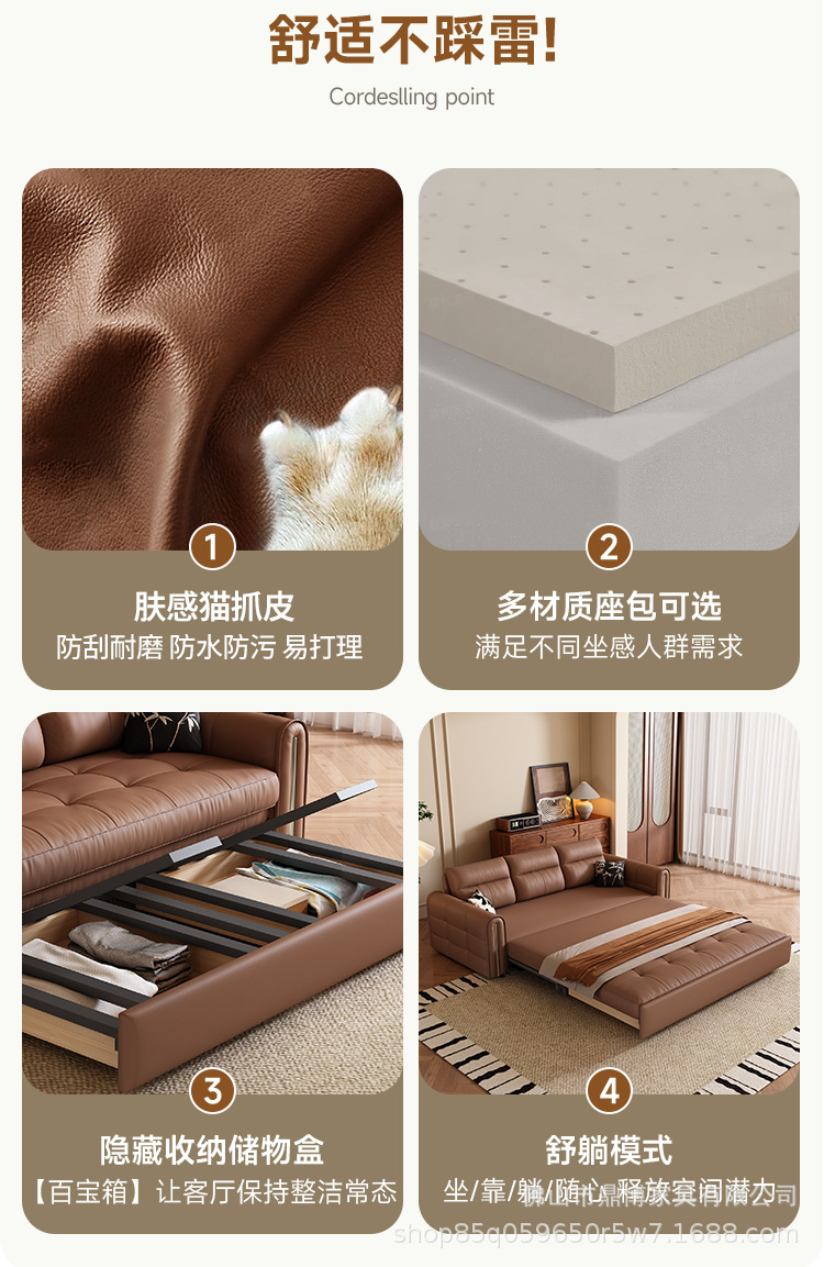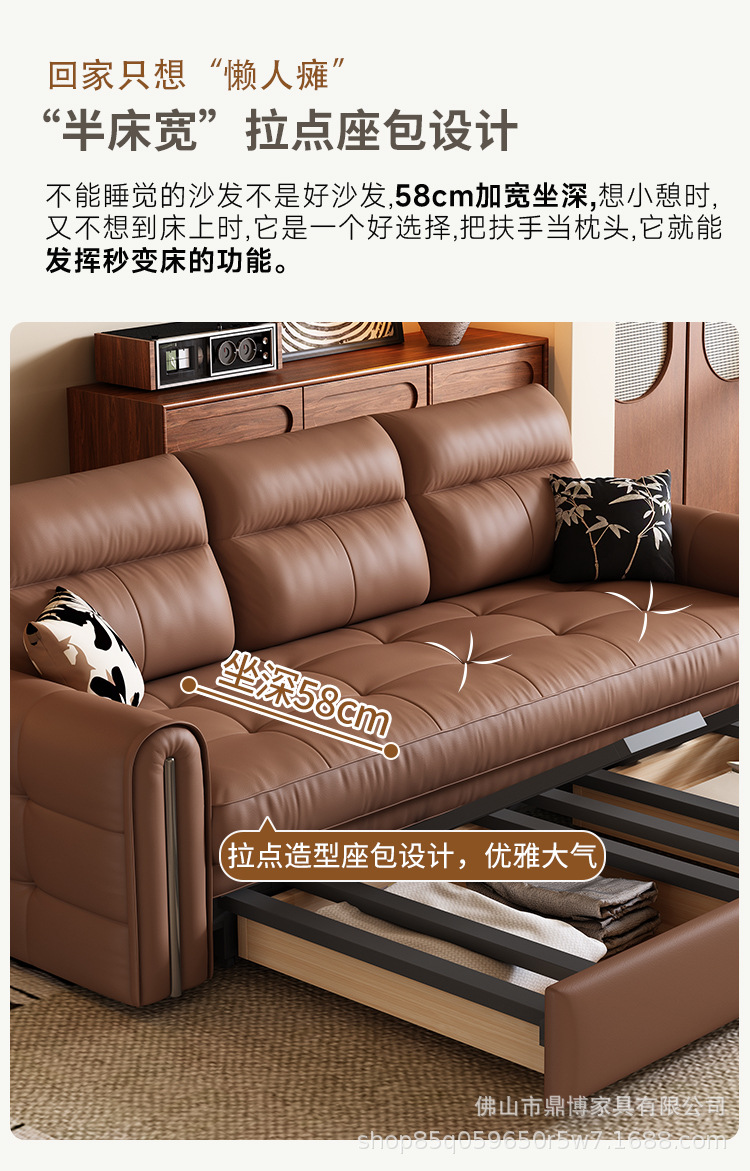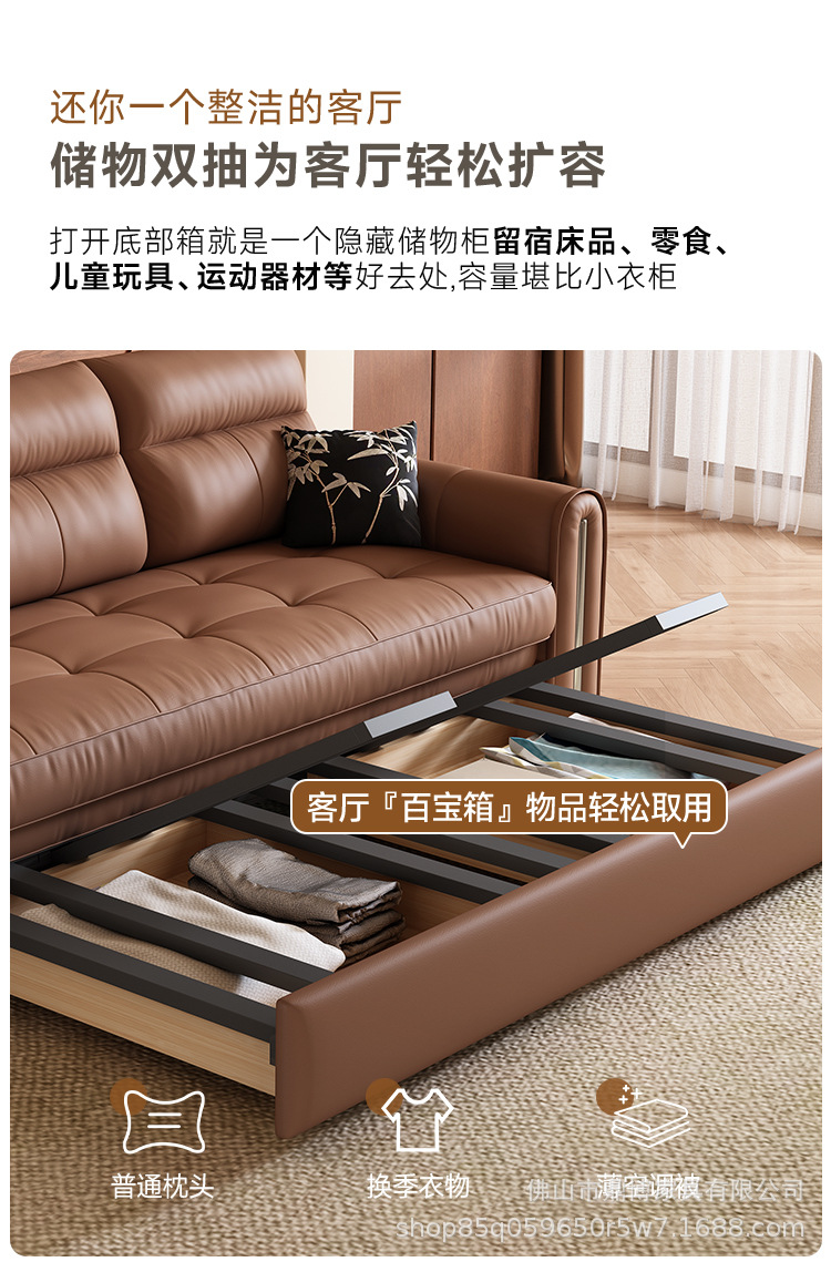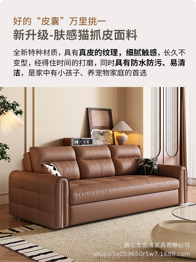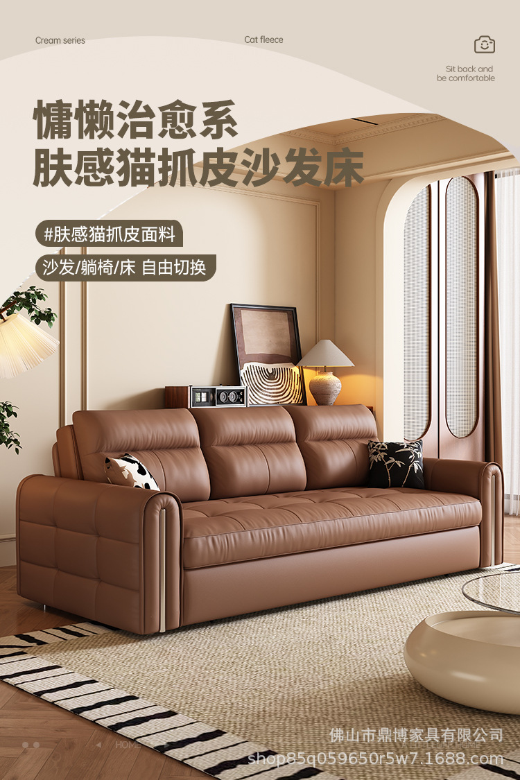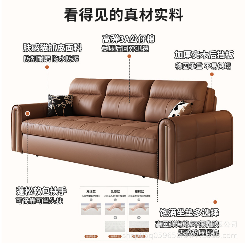 中古风沙发床多功能一体两用可储物折叠沙发小户型客厅猫抓皮家用