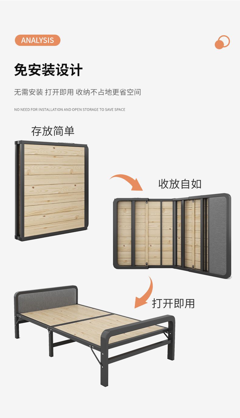 折叠床单人床实木简易床家用午休午睡成人午睡加固铁架双人床小床