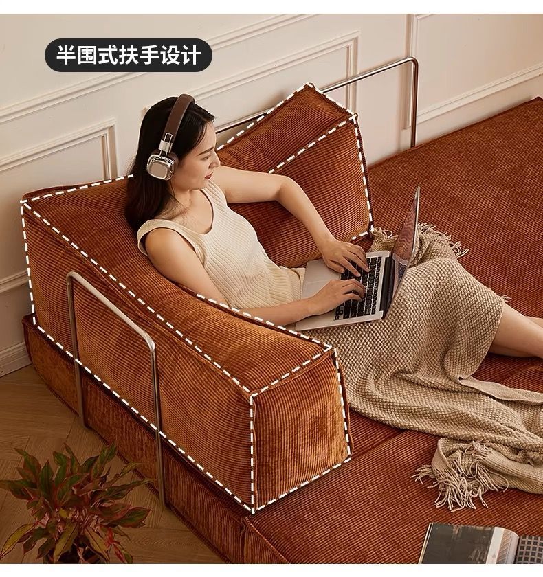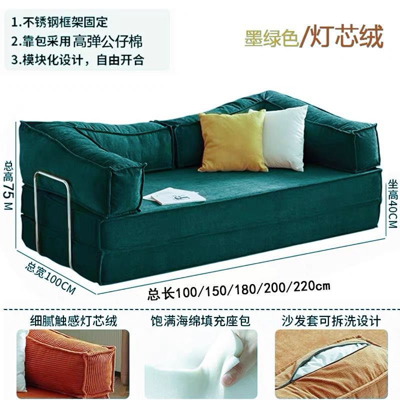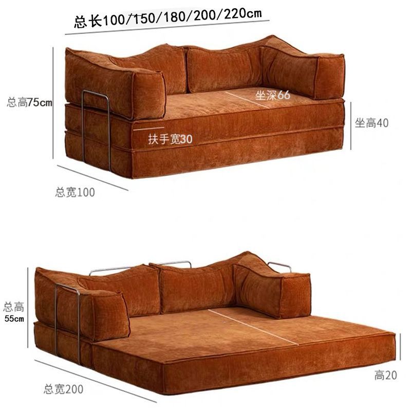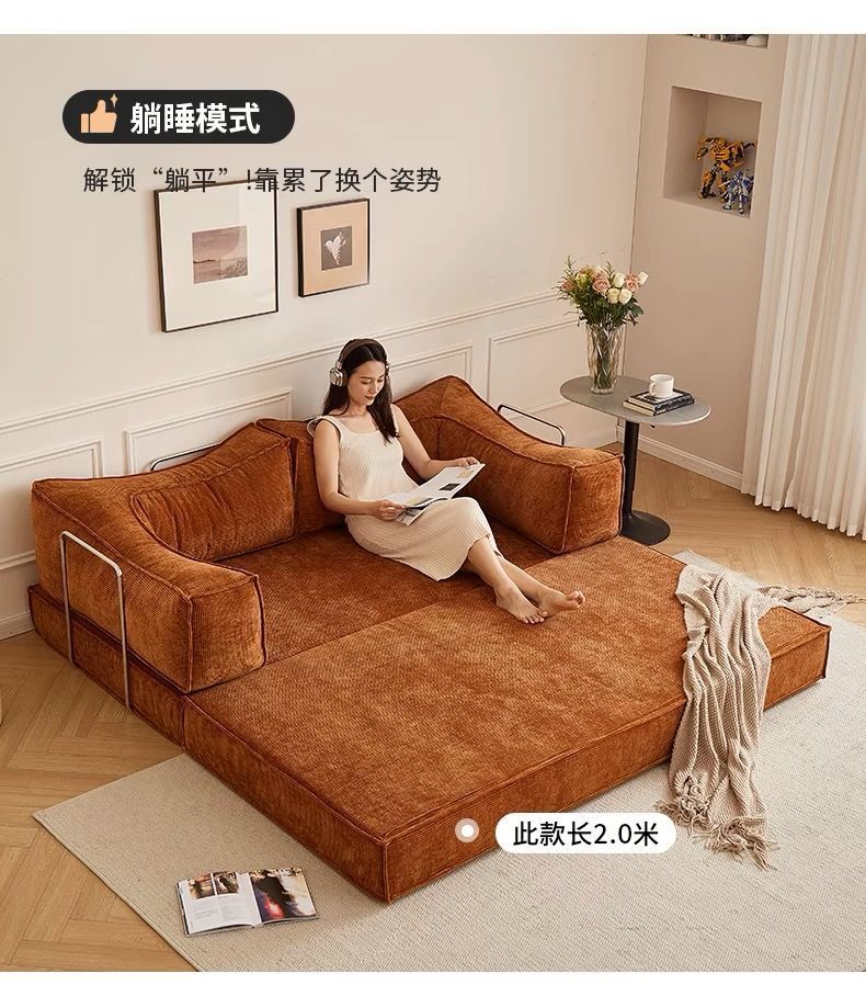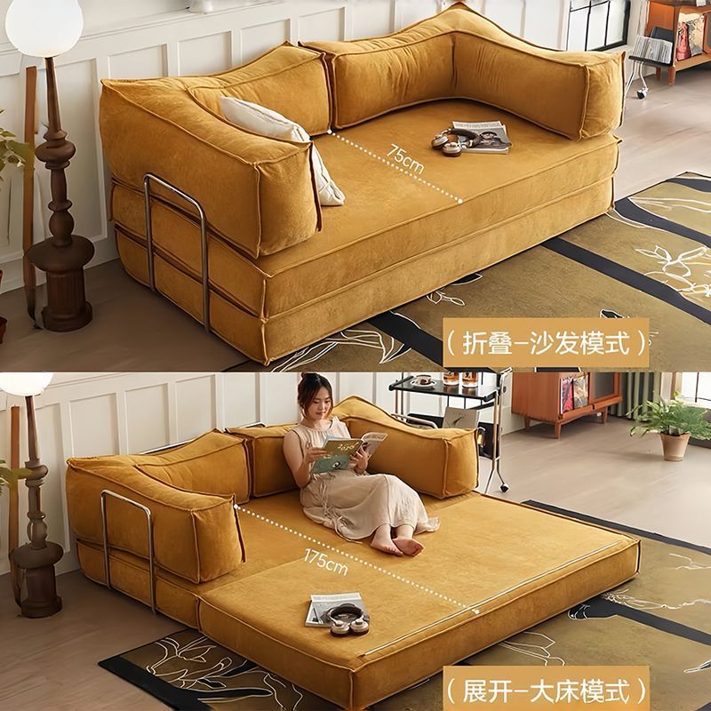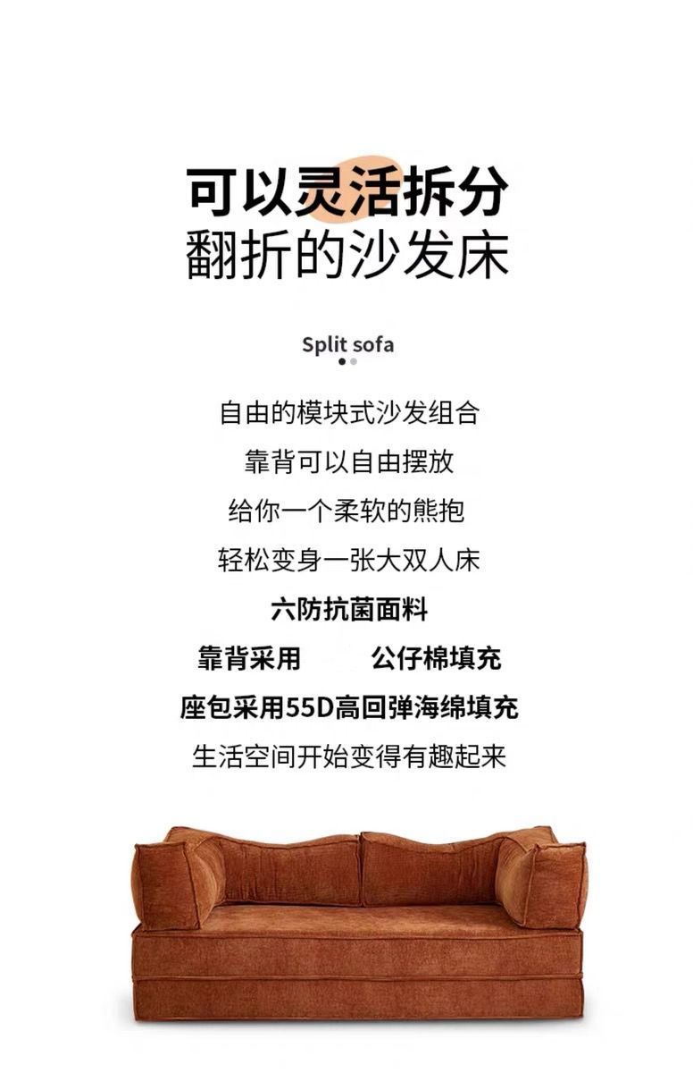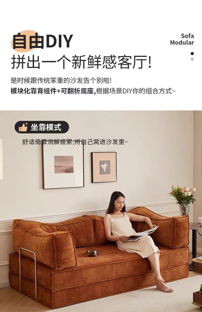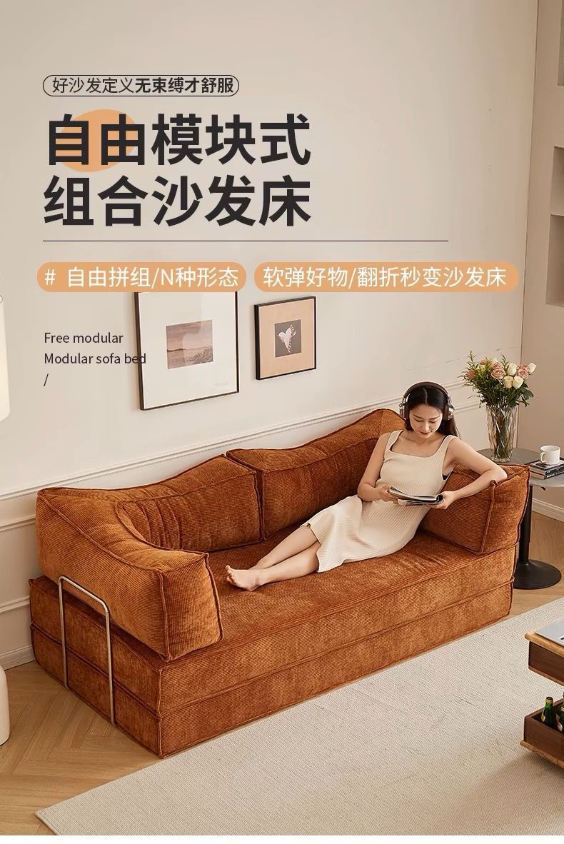 中古风布艺沙发两用小户型客厅双三人直排复古模块折叠布丁沙发床