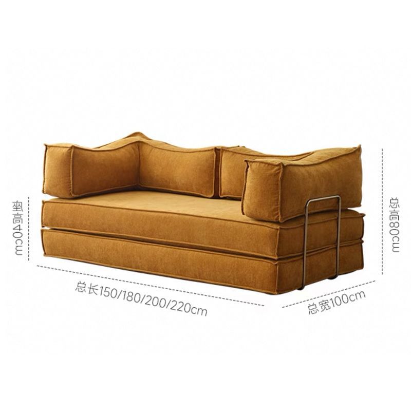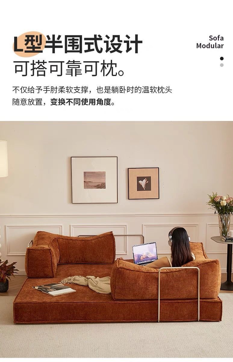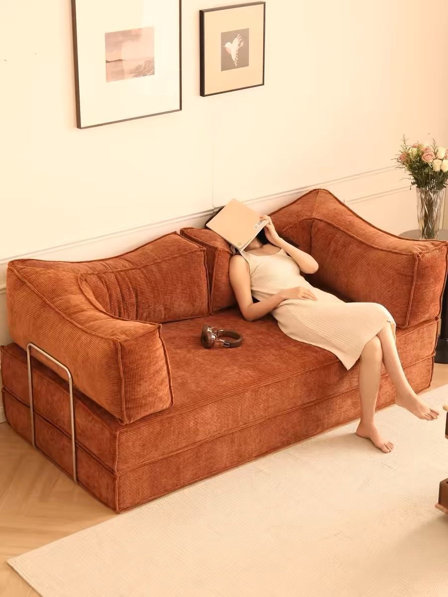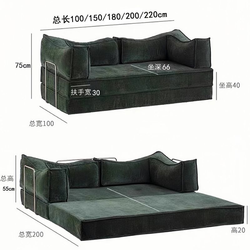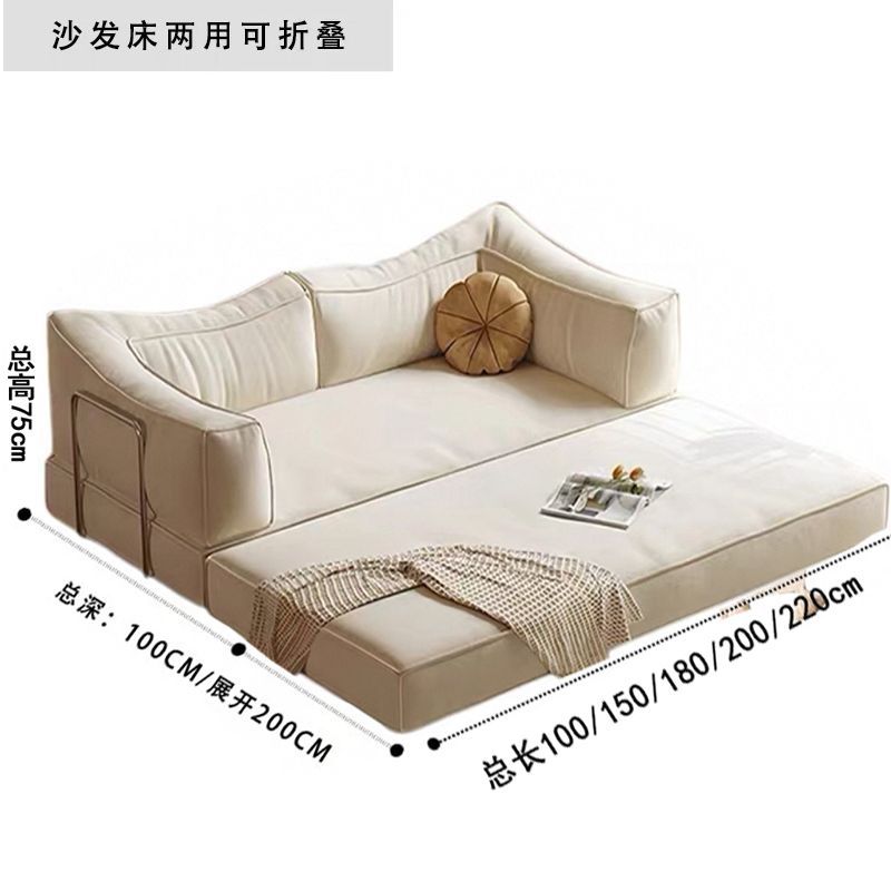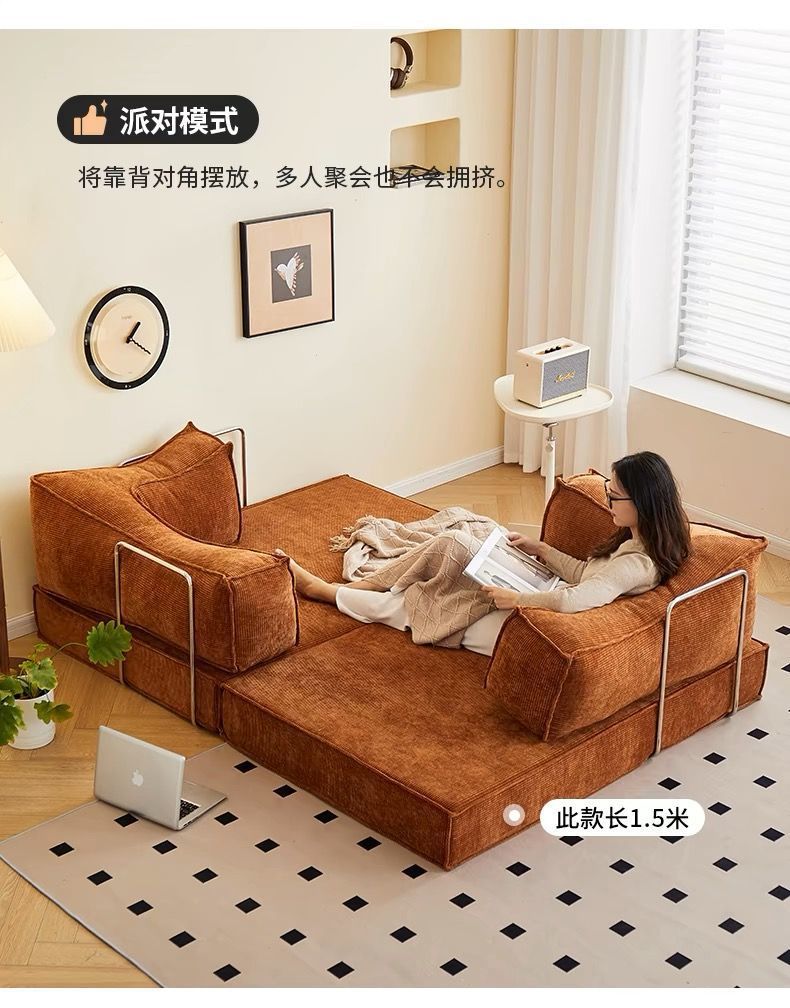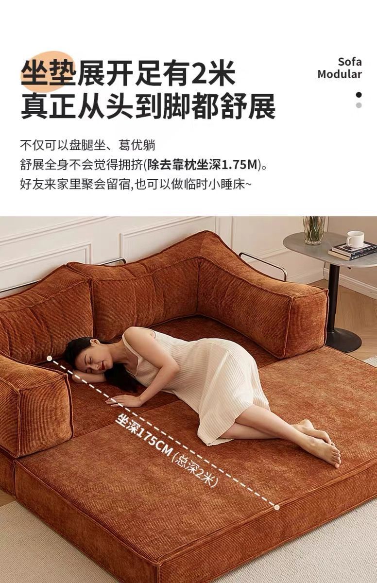 中古风布艺沙发两用小户型客厅双三人直排复古模块折叠布丁沙发床