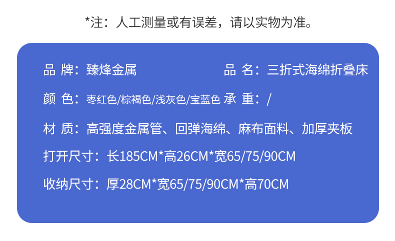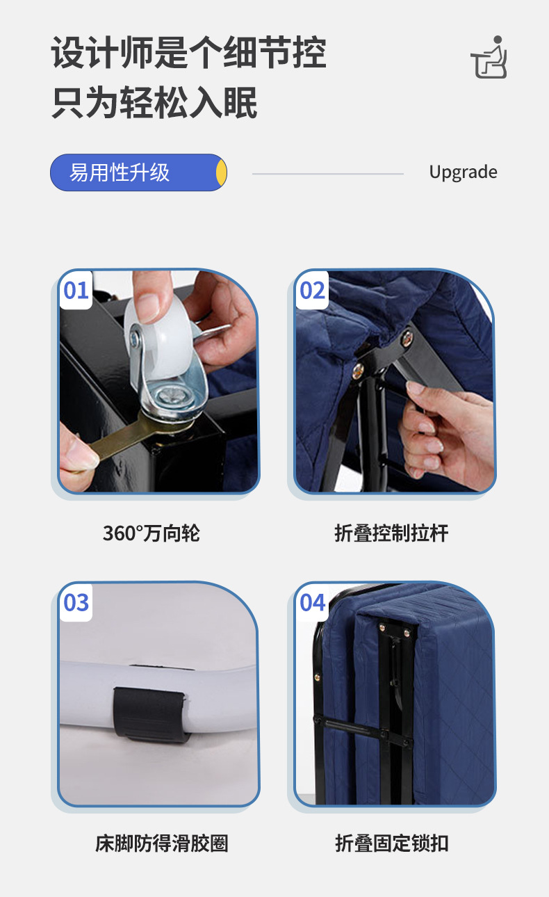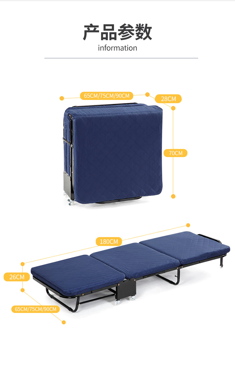 午休床办公室家用折叠床午睡床加厚海绵三折医院陪护床单人行军床