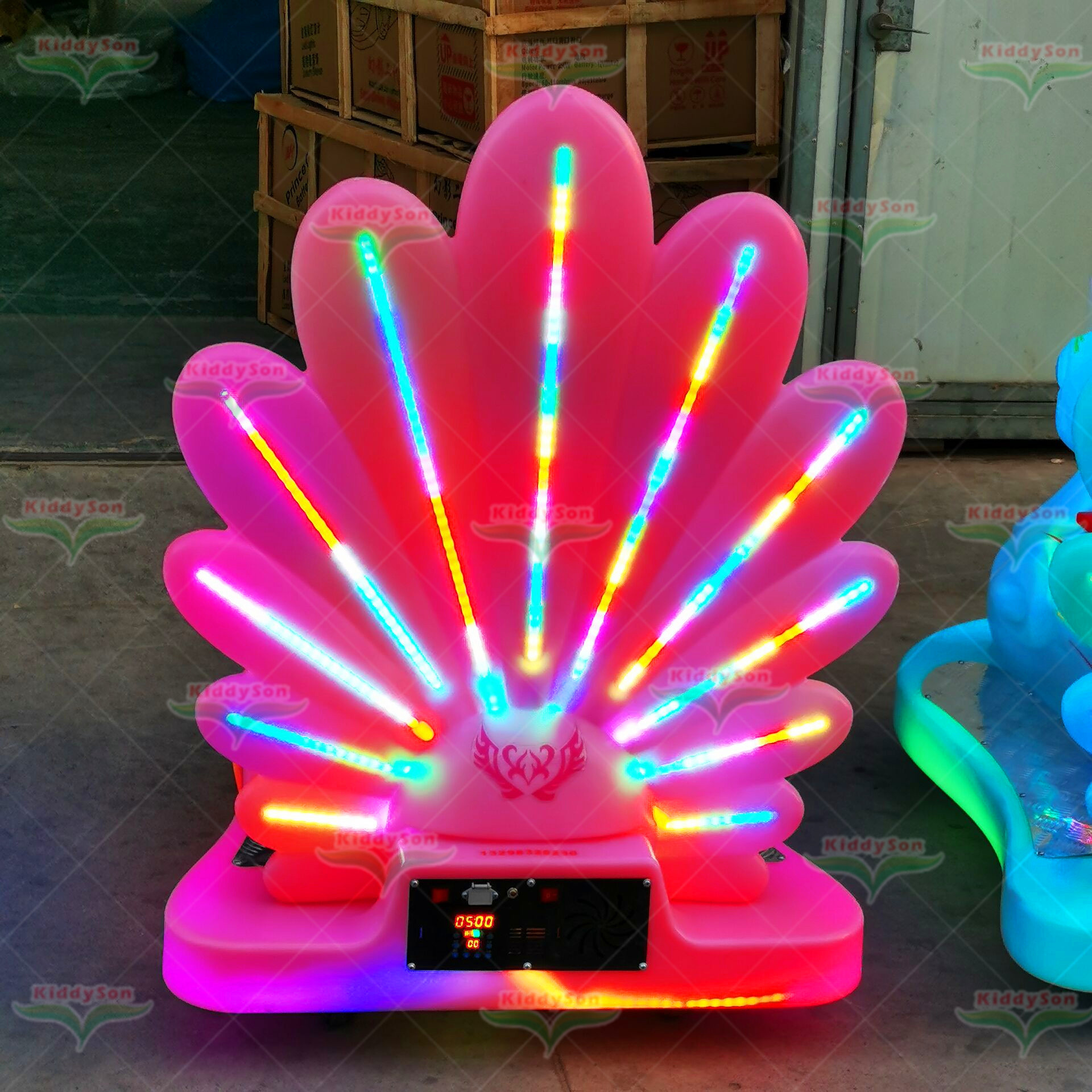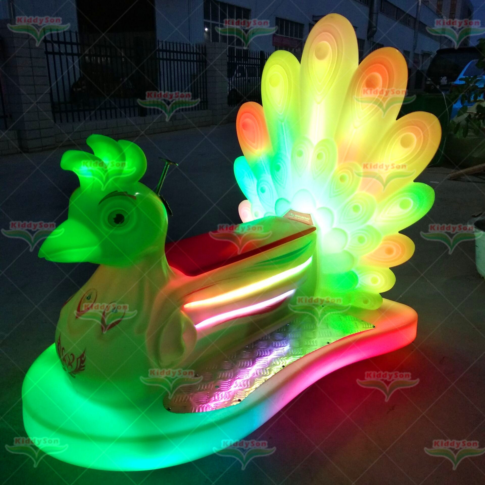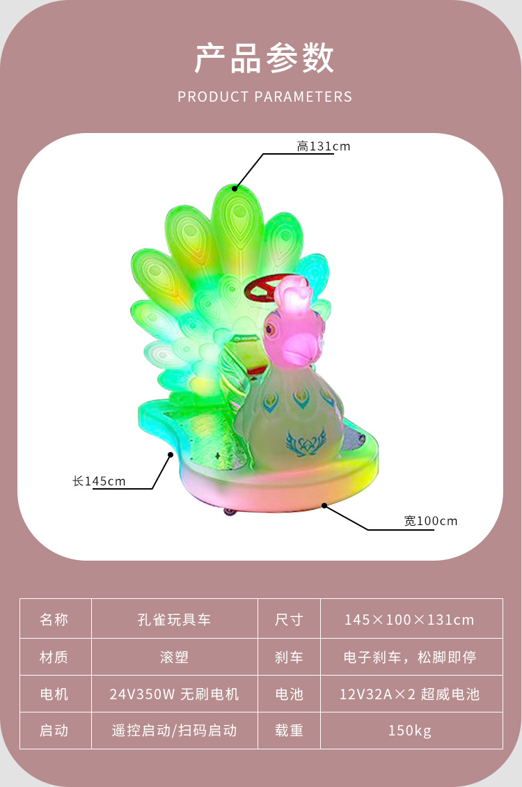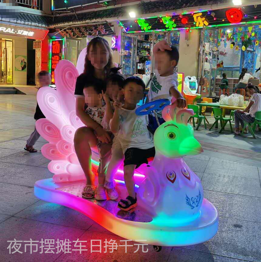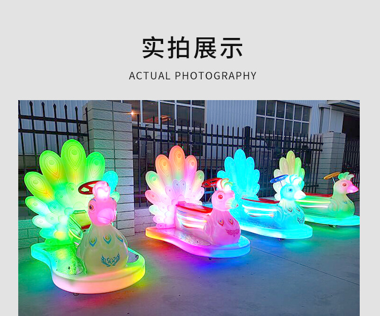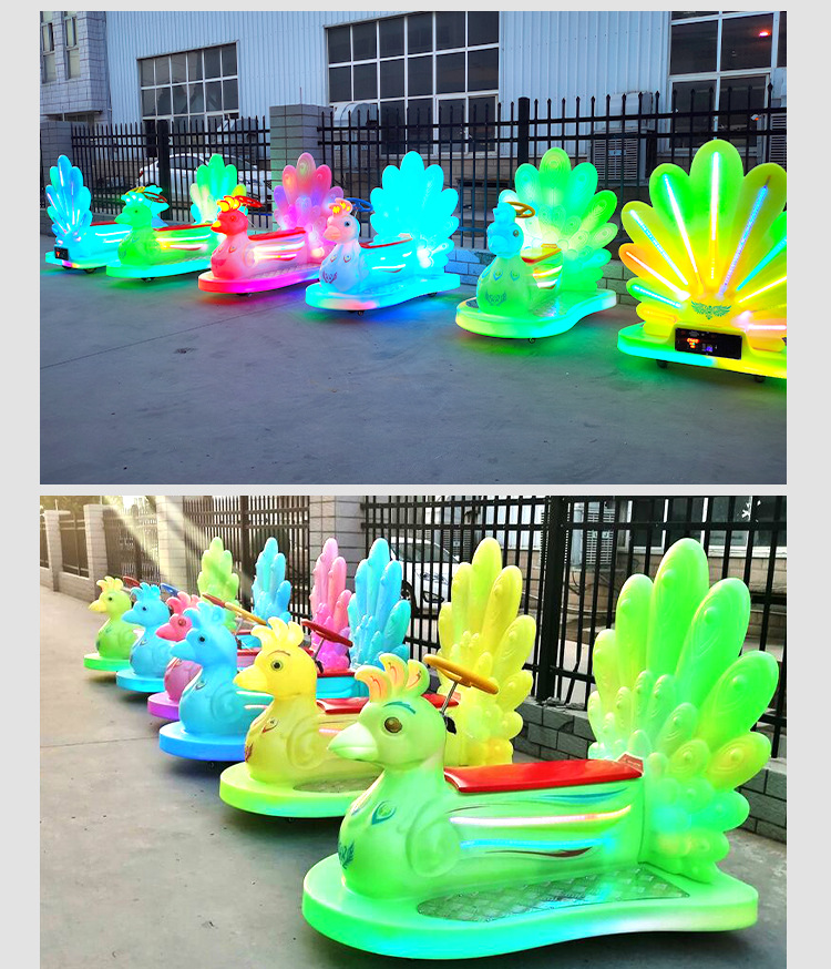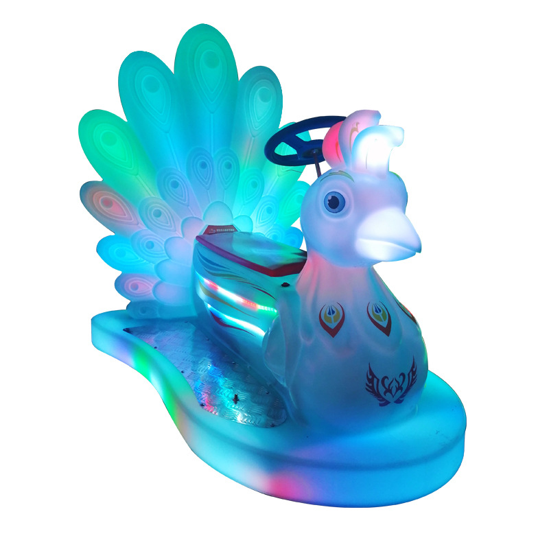 外贸专用游乐车广场摆摊亲子电瓶车夜市发光孔雀碰碰车商场儿童车