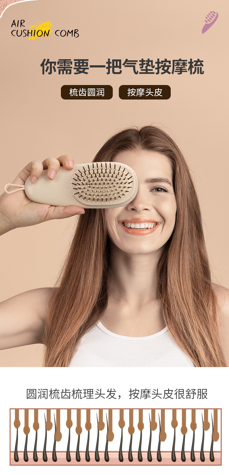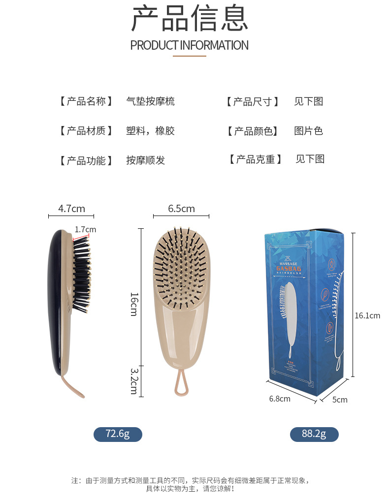 跨境便携气囊气垫梳子随身家用女生按摩梳头皮按摩气垫梳厂家批发