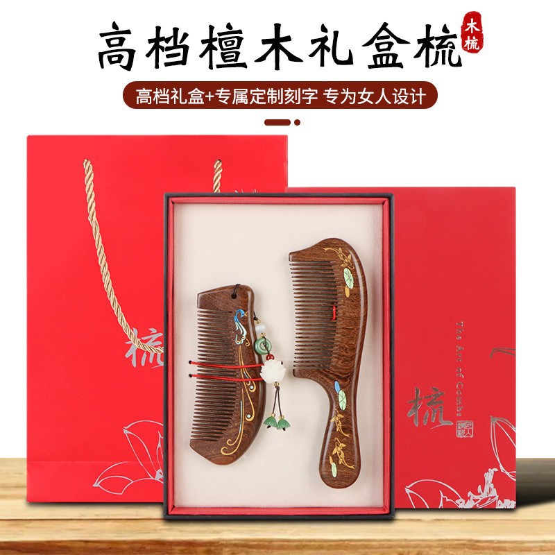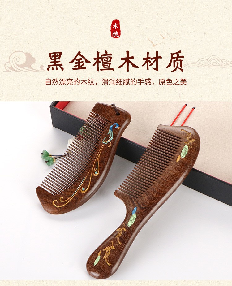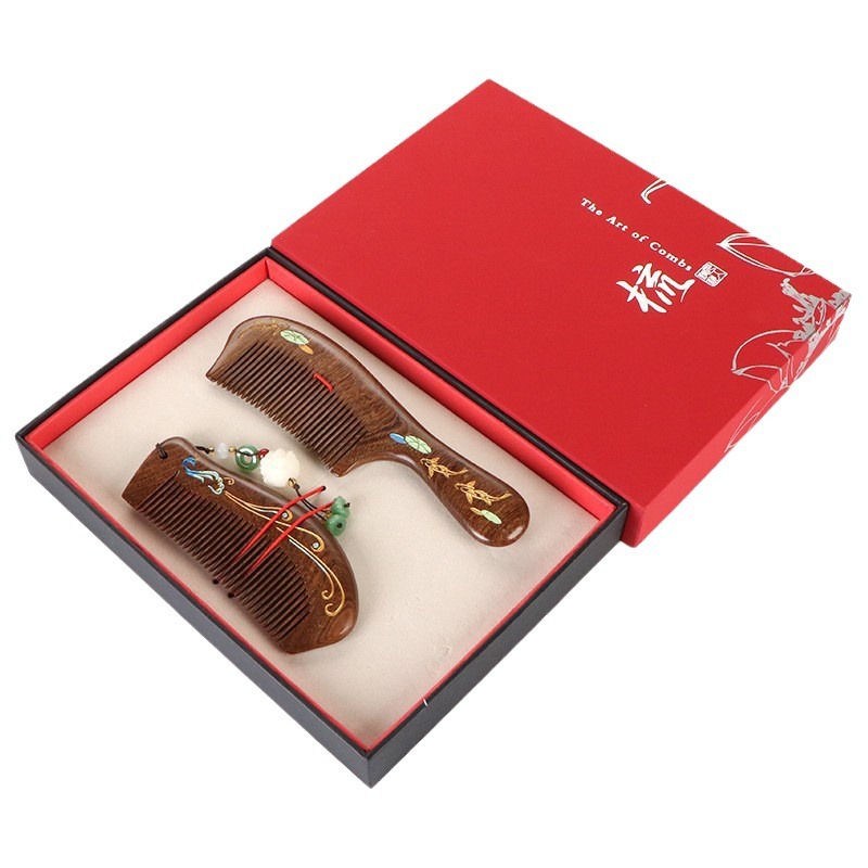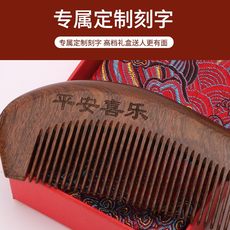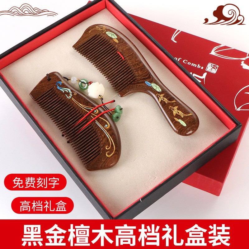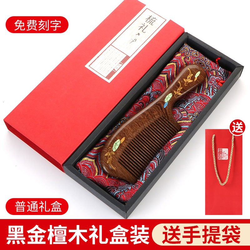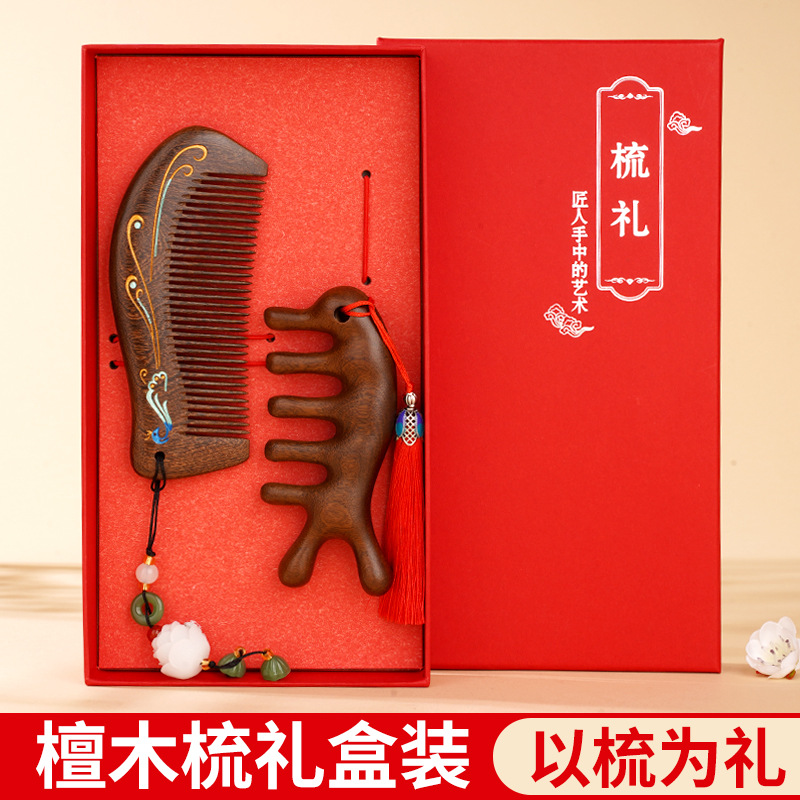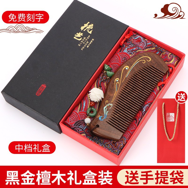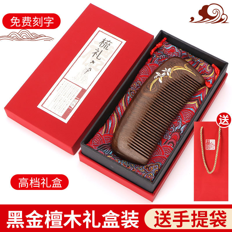 天然彩绘黑金檀木梳子礼盒高级感套装送老师教师节礼物免费刻字
