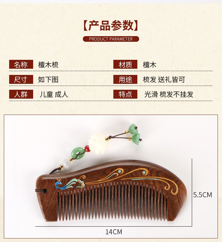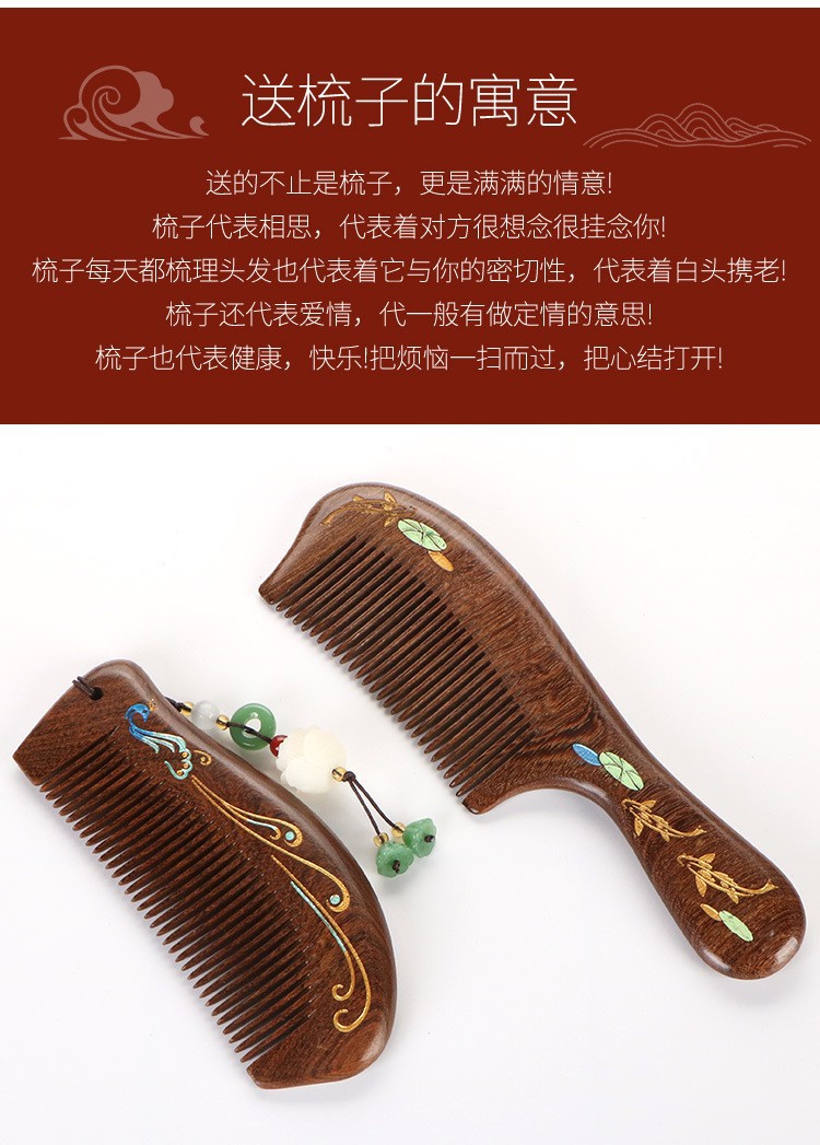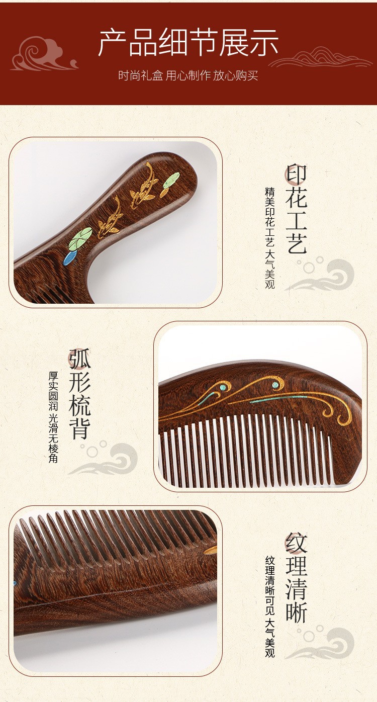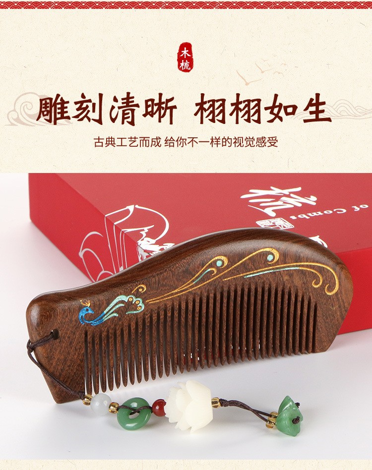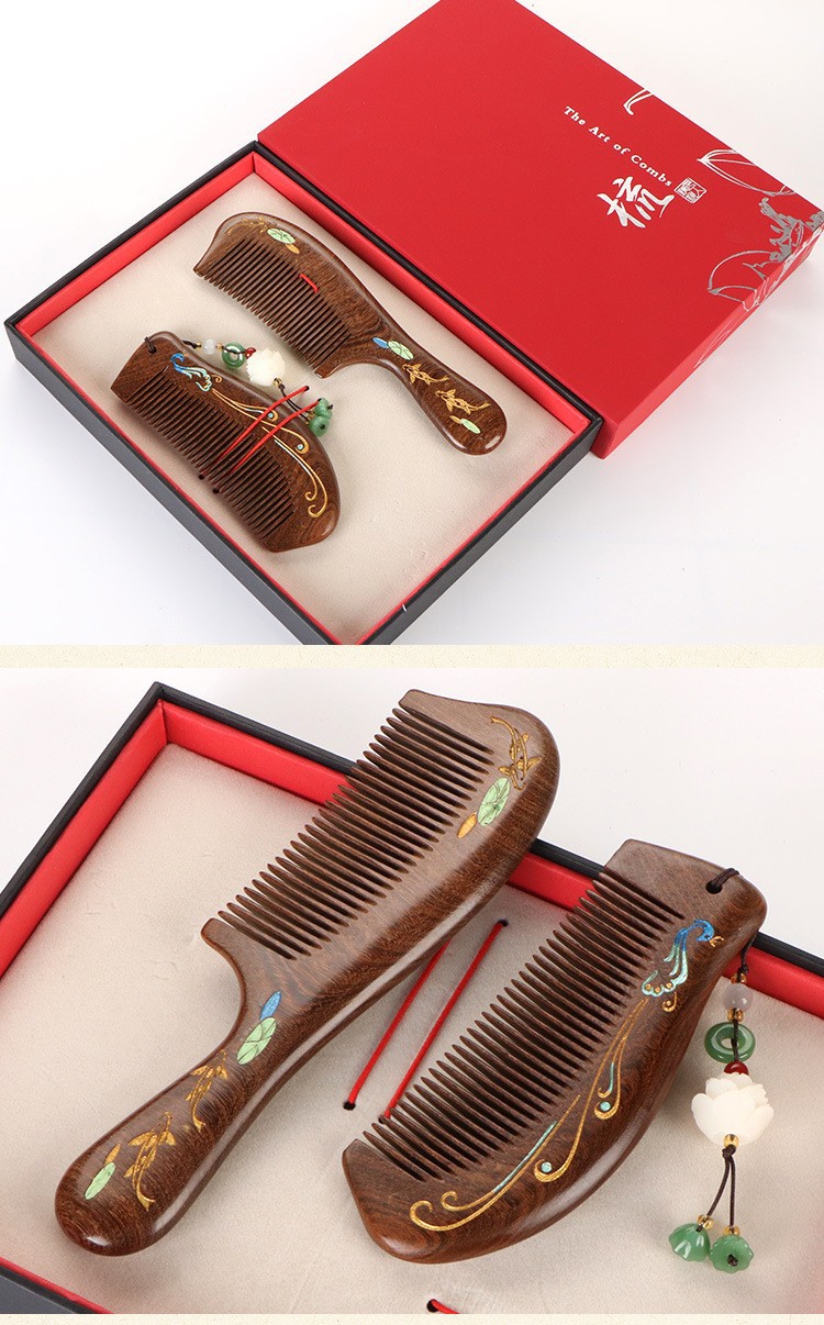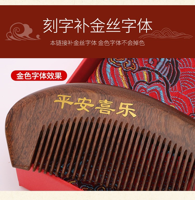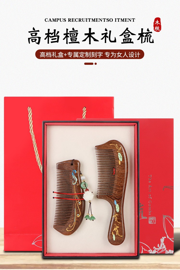 天然彩绘黑金檀木梳子礼盒高级感套装送老师教师节礼物免费刻字