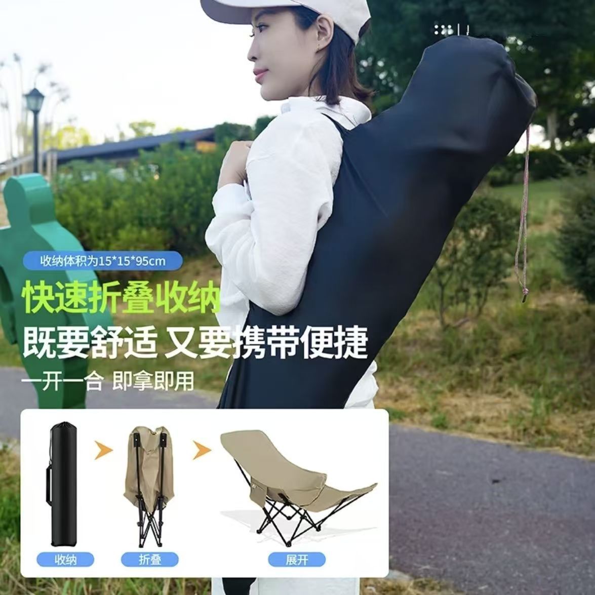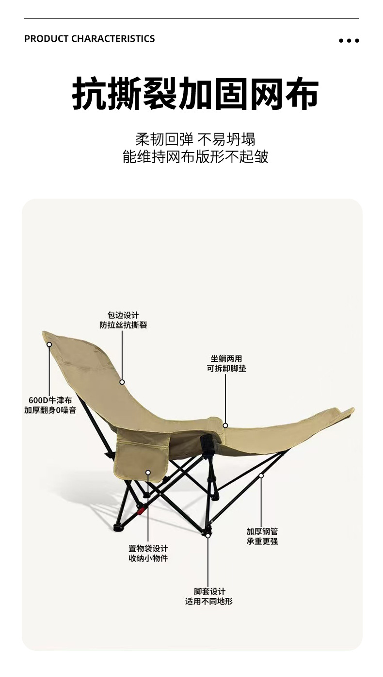 严选跨境躺椅坐睡两用便携式办公室躺椅午休折叠四档调节腿托躺椅