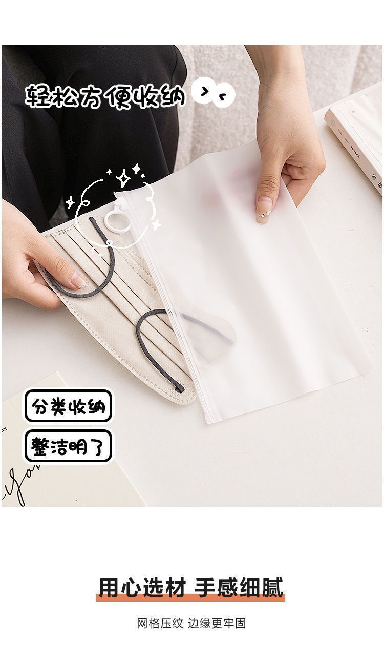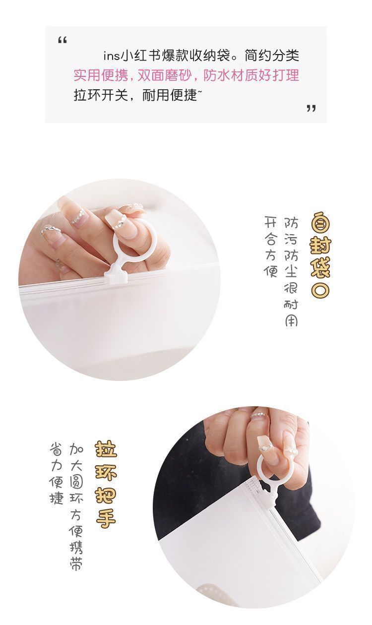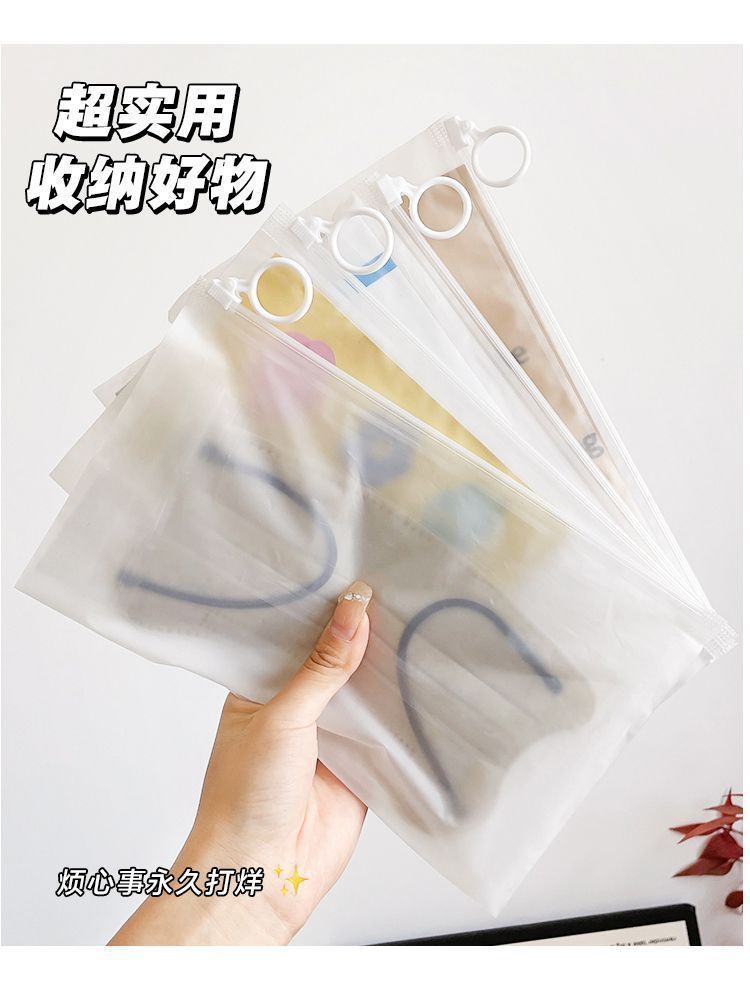 密封分类磨砂防水拉环收纳袋便携式透明拉链式旅行多功能分装袋子