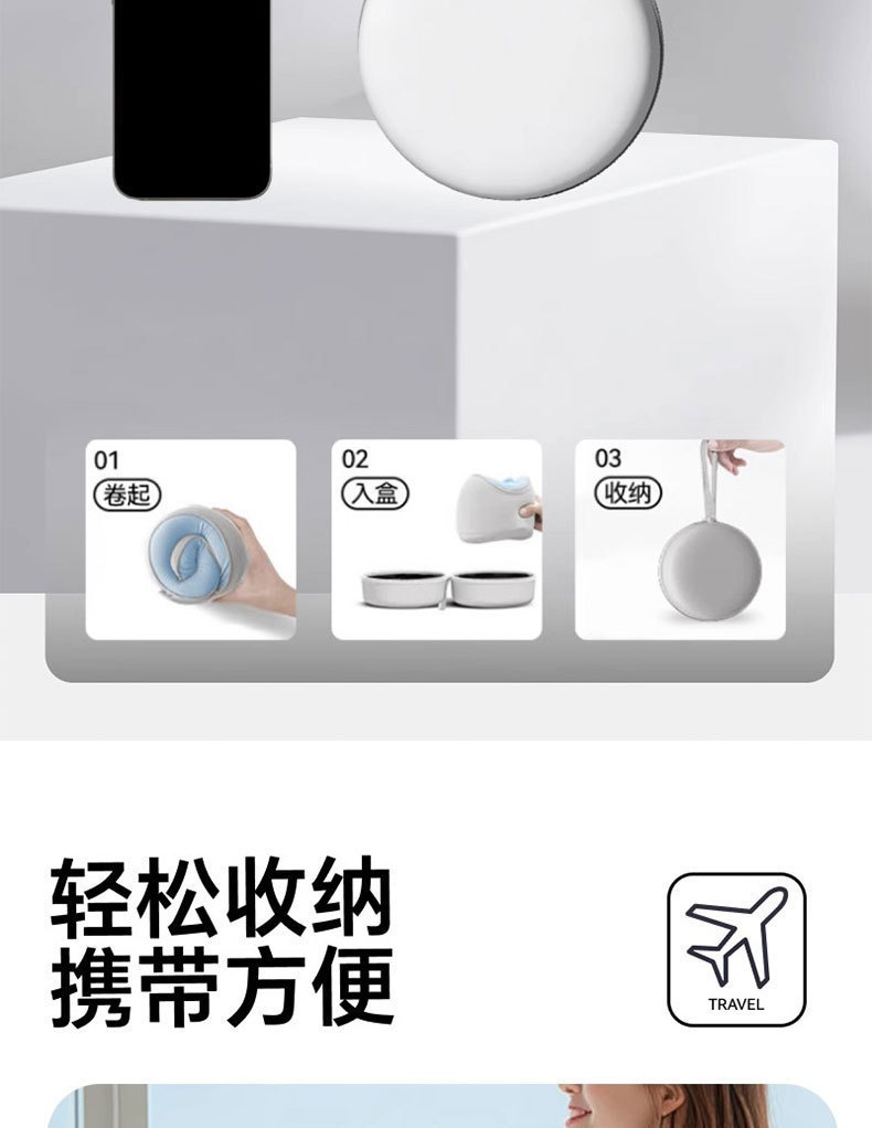 记忆棉U型枕护颈枕头办公室午睡出差颈枕带收纳盒便携收纳旅行用