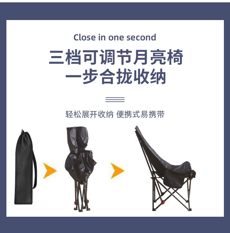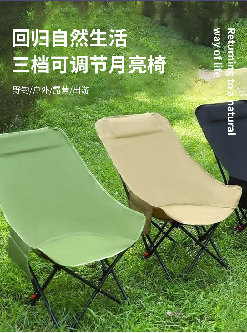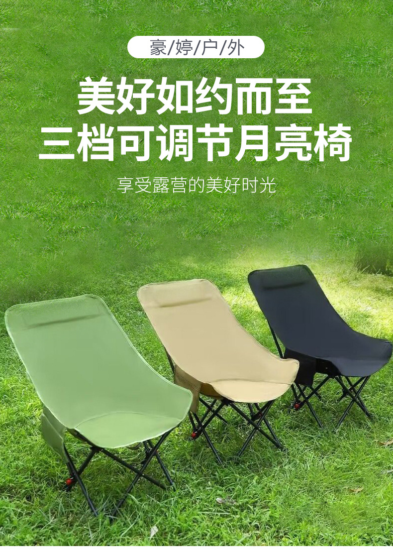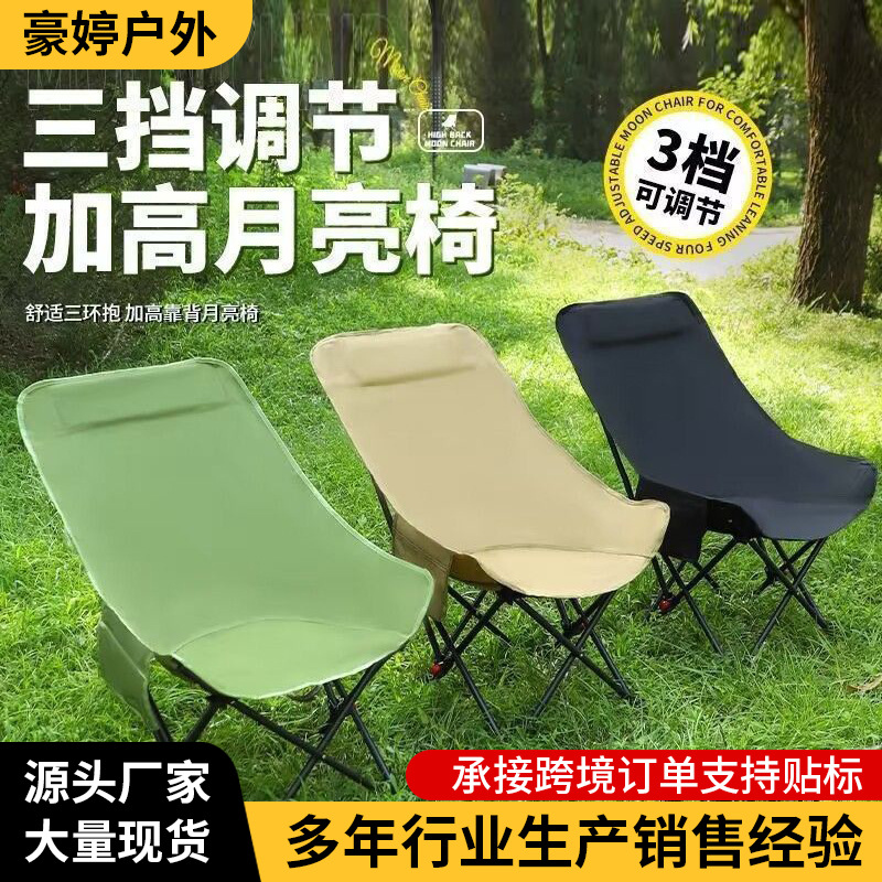 批发三档调节月亮椅高背便携折叠椅可坐可躺露营野餐摆摊折叠椅