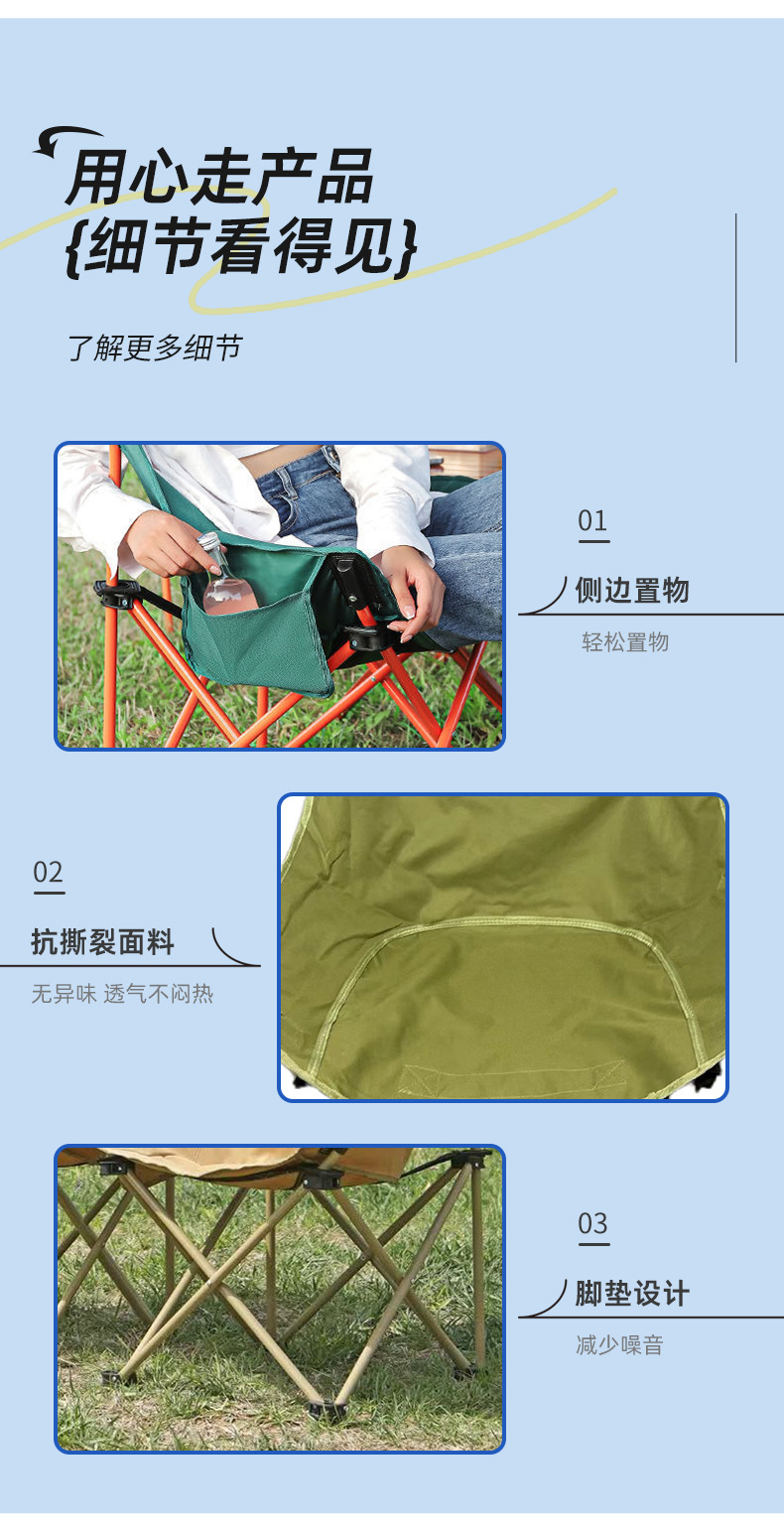 严选便携式月亮椅户外折叠椅露营野餐椅美术写生椅户外折叠椅子
