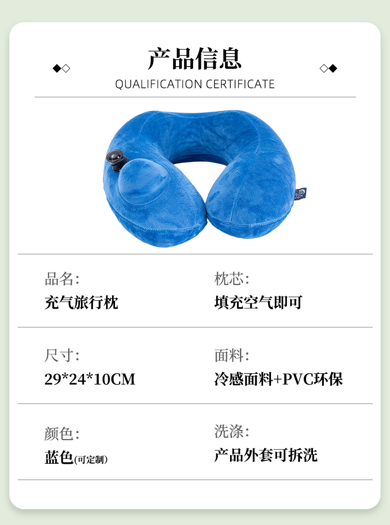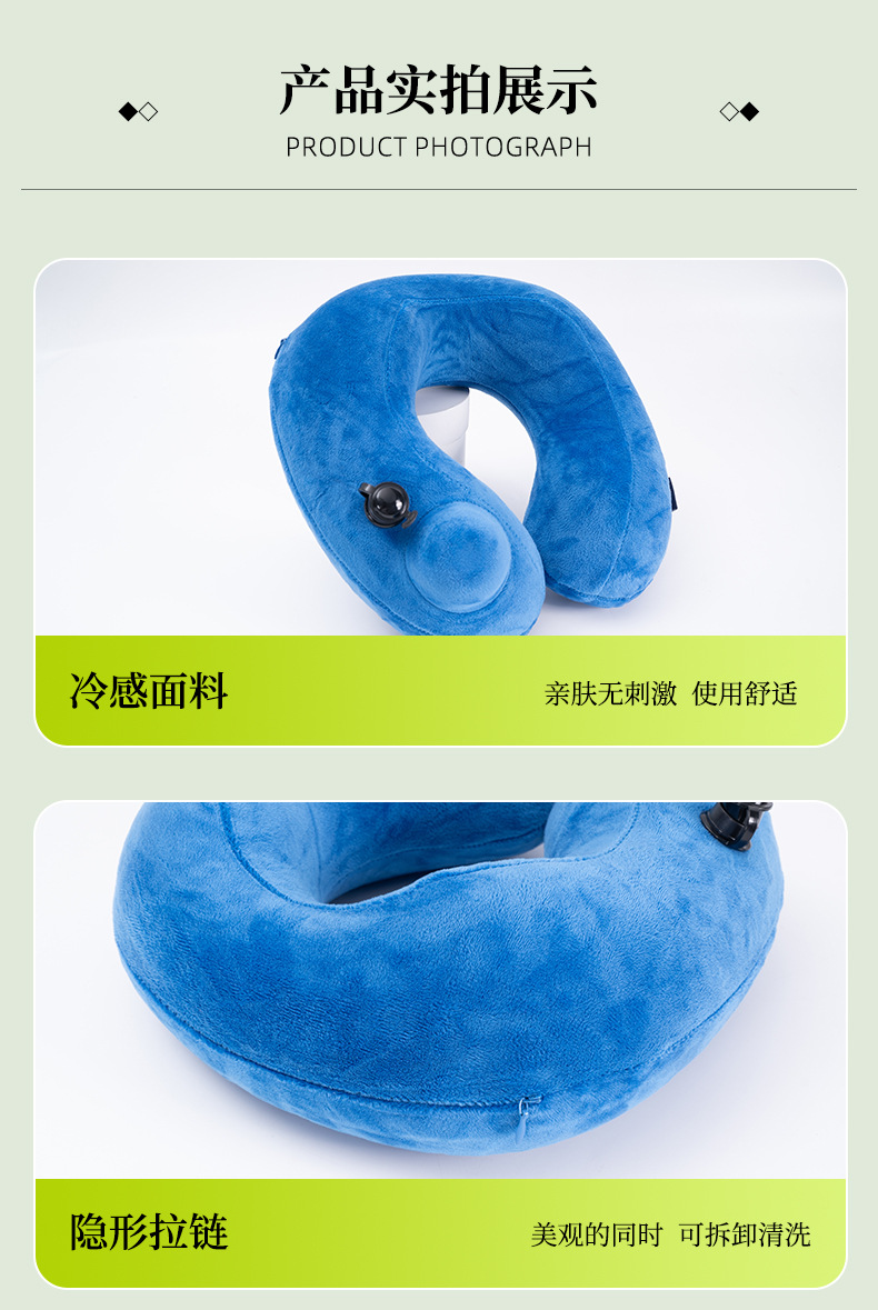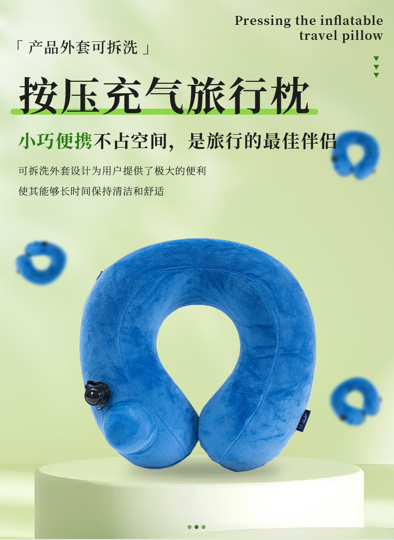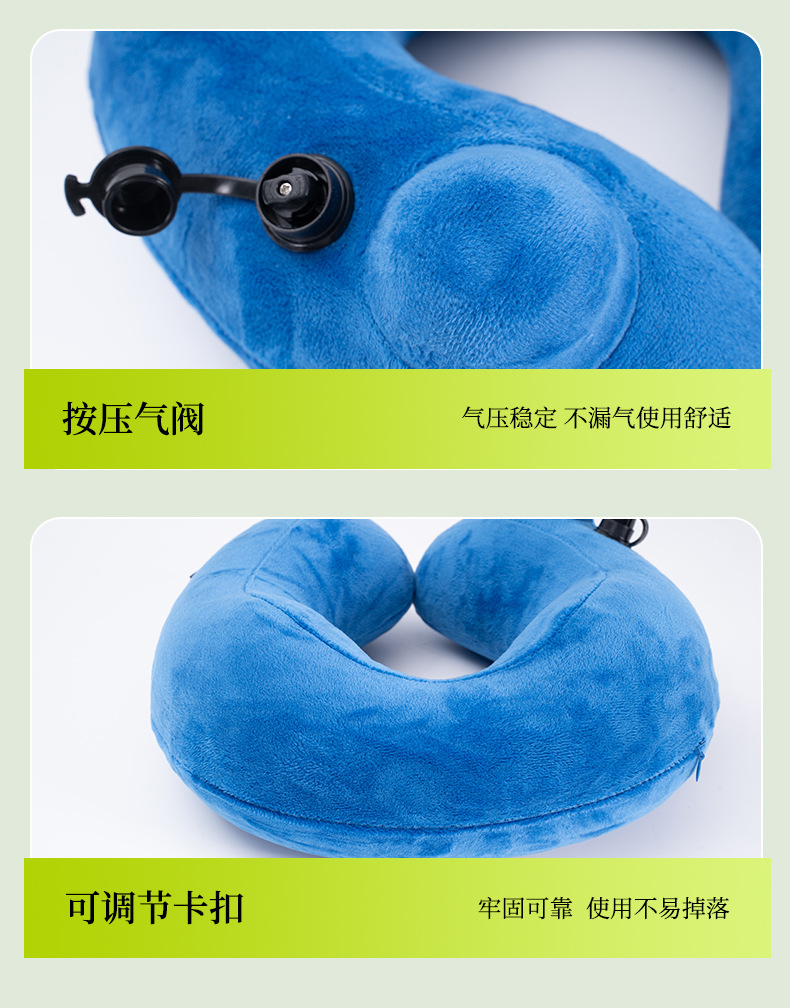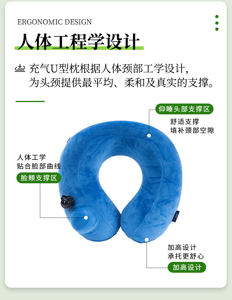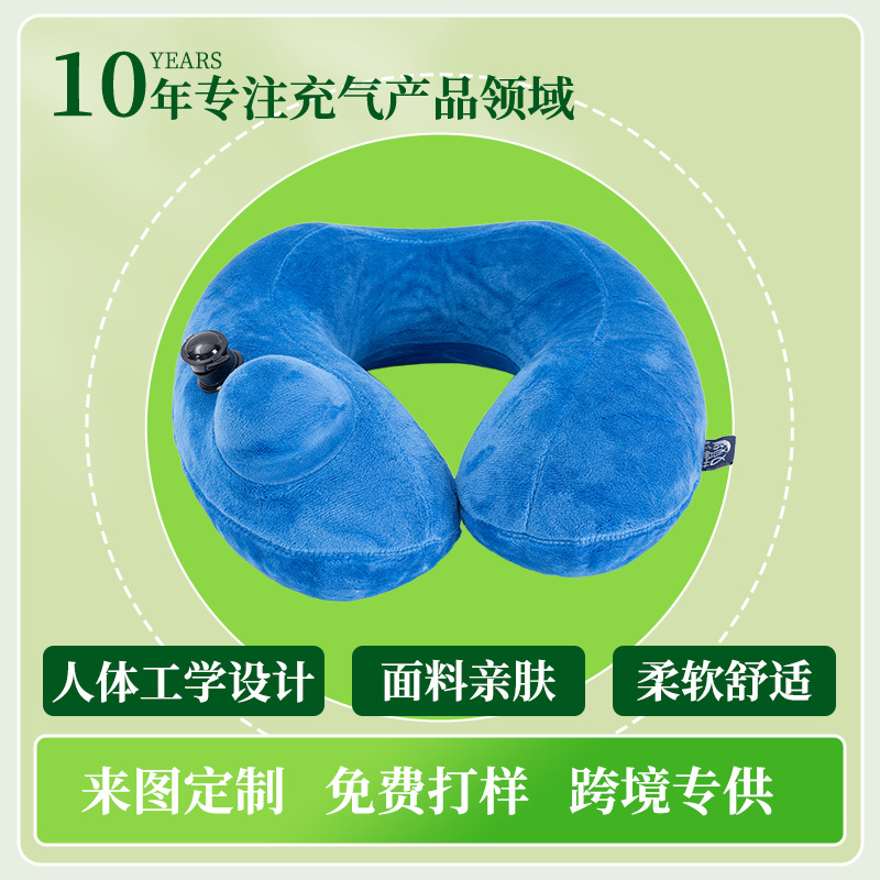 定 制logo充气枕舒适便携旅行充气枕人体工程学护颈U型枕贴 牌