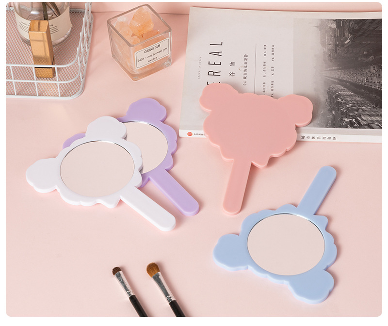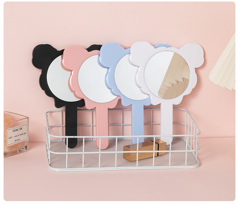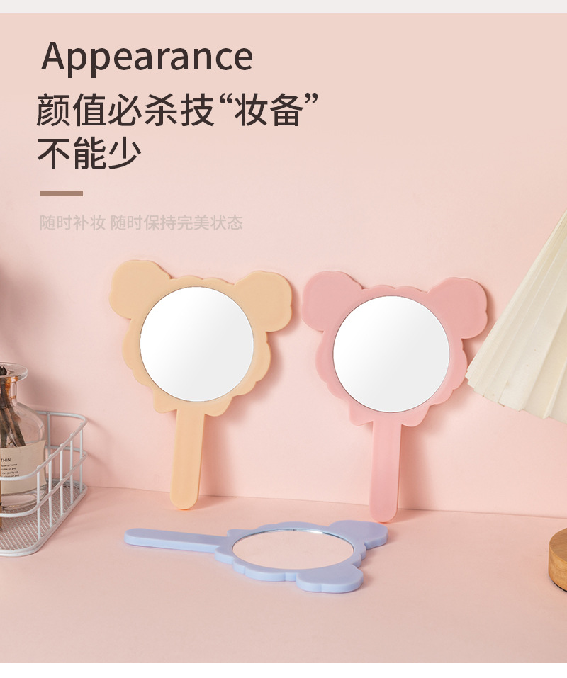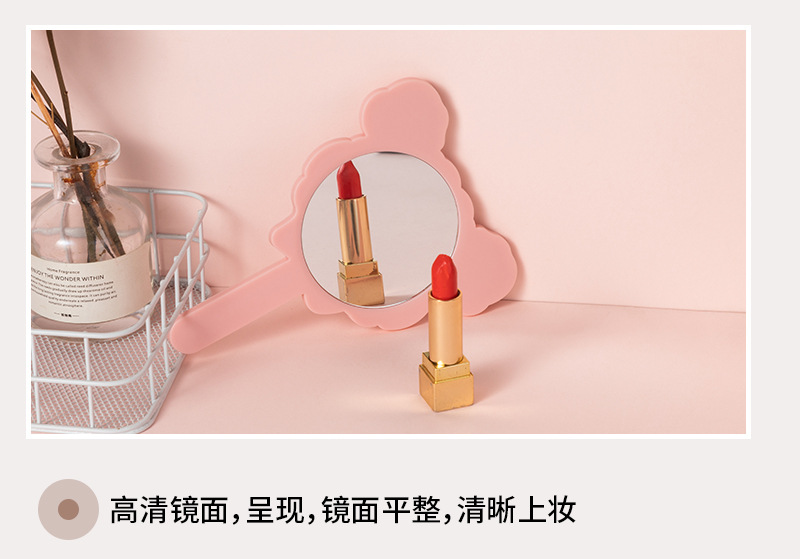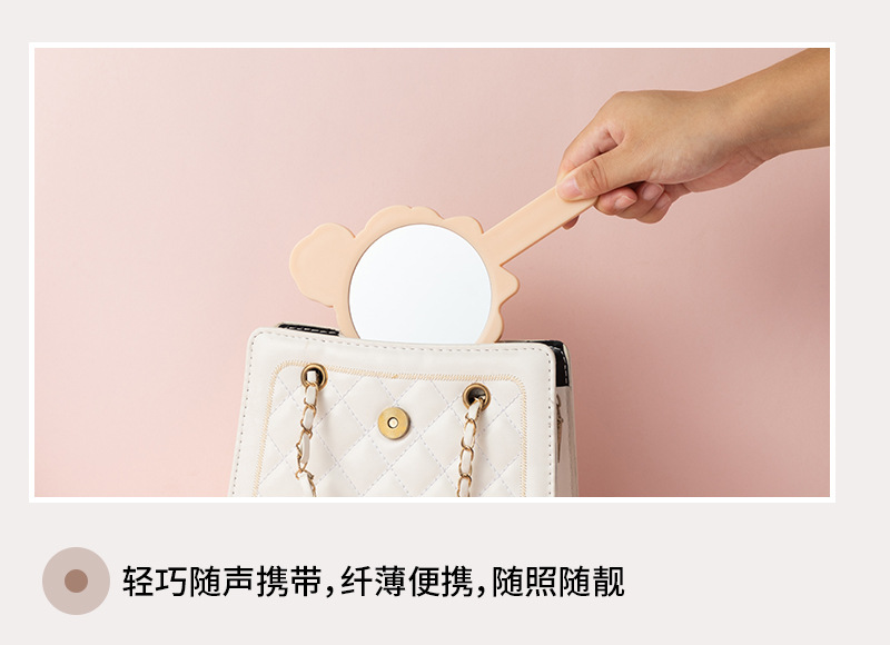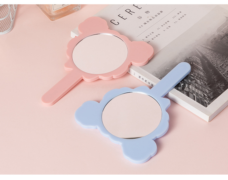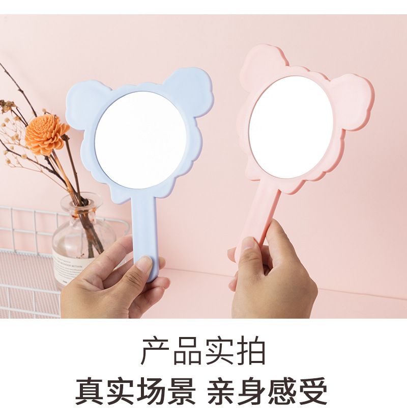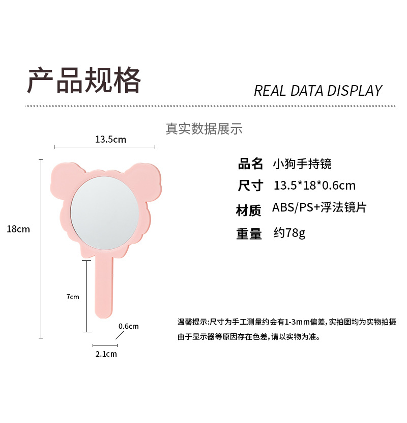 可爱少女心线条小狗手柄镜韩版女学生宿舍卧室便携美妆手持小镜子